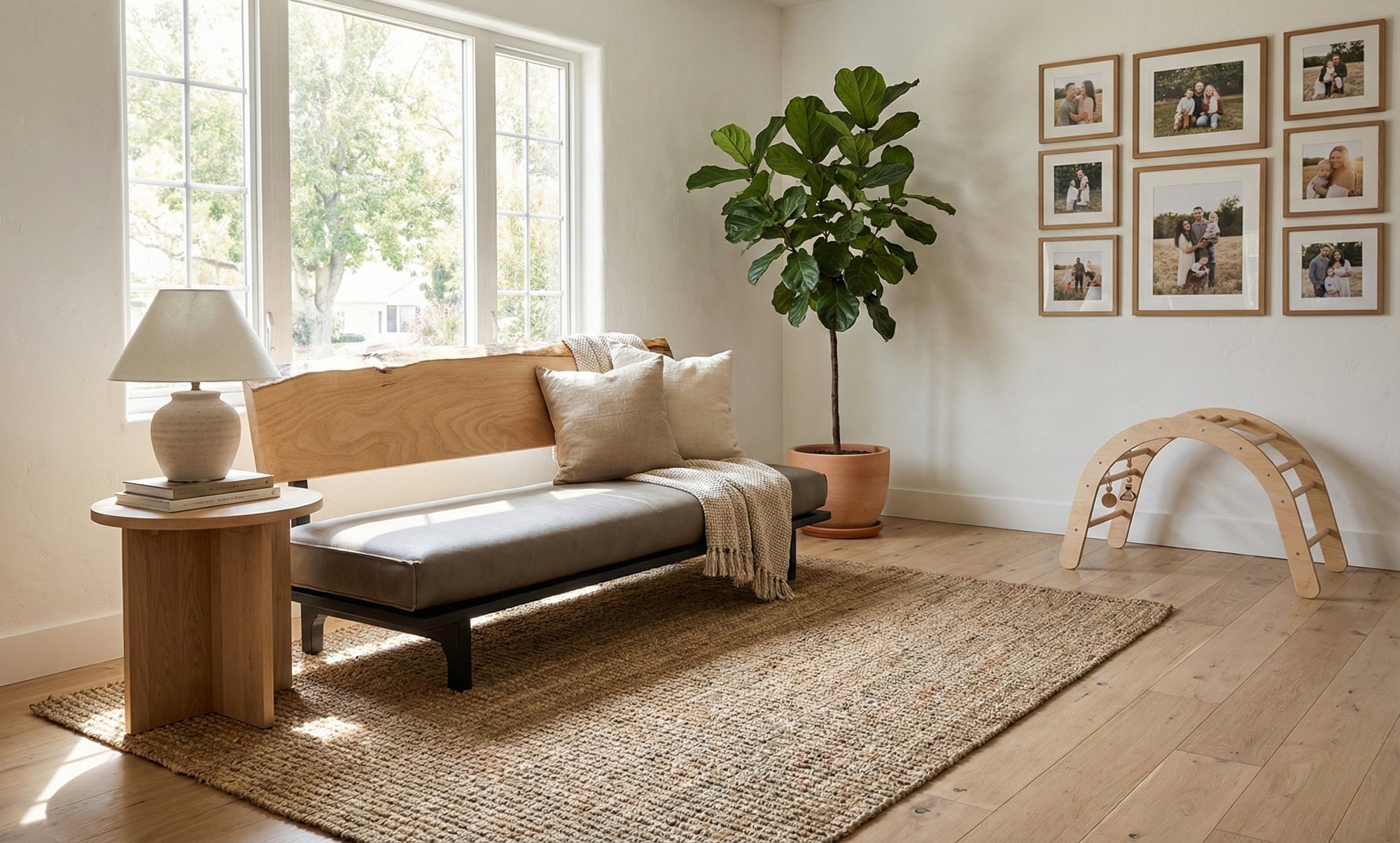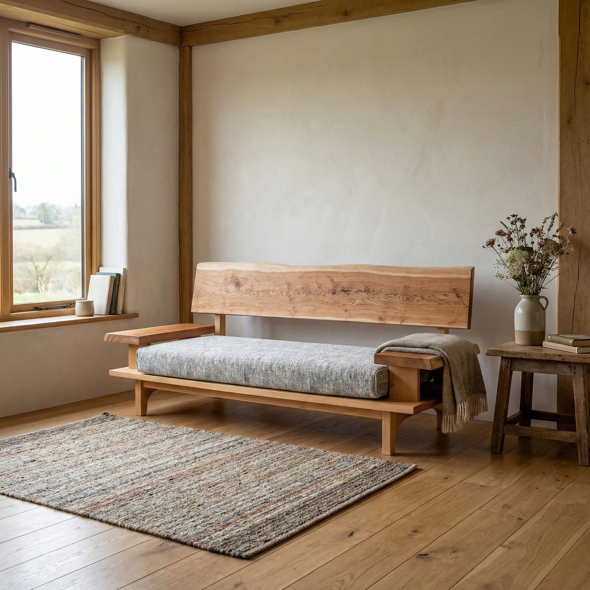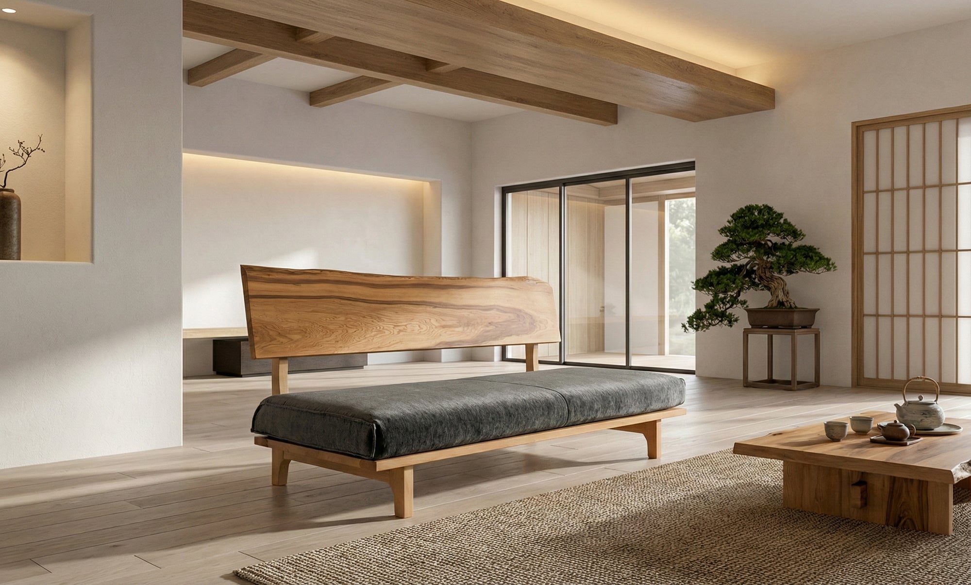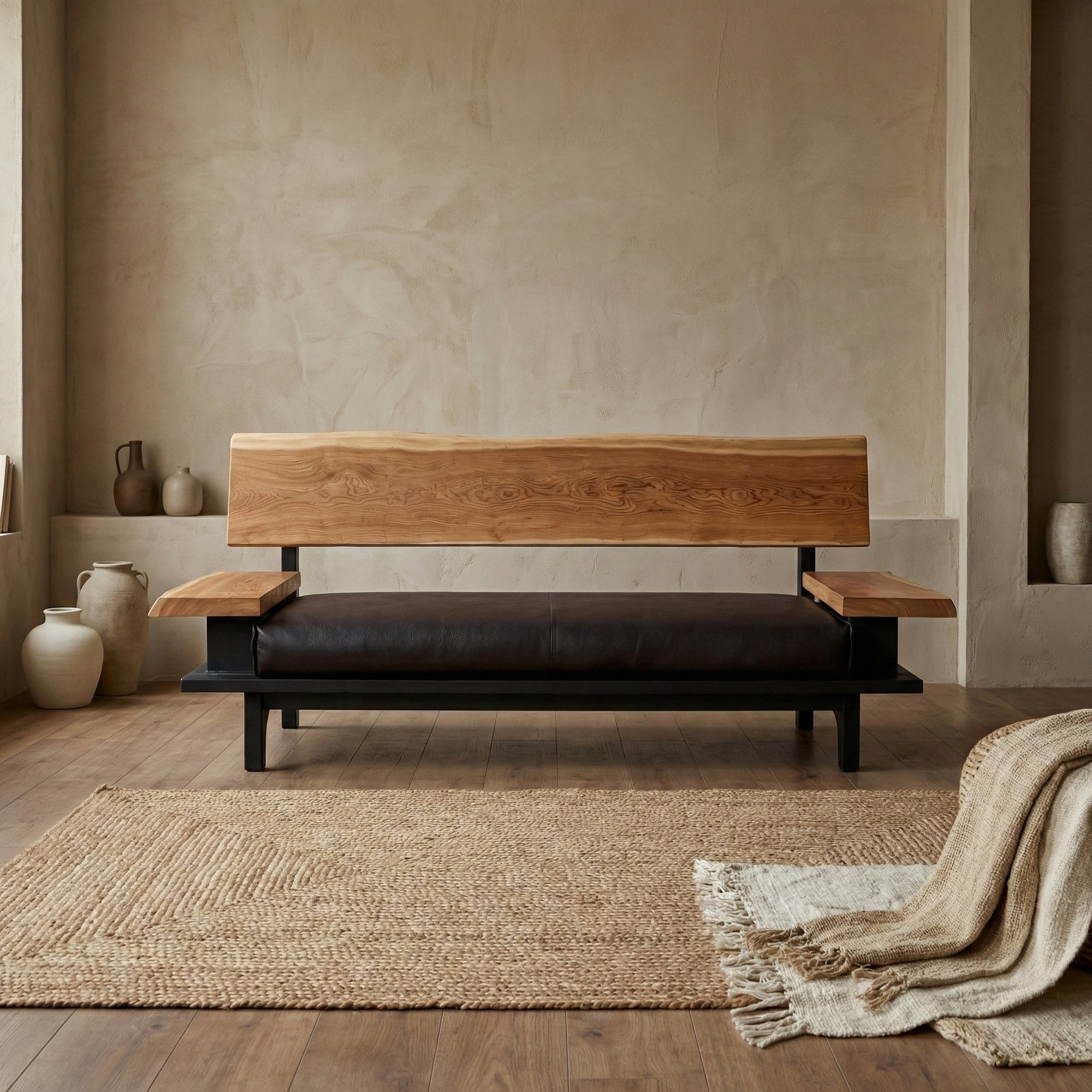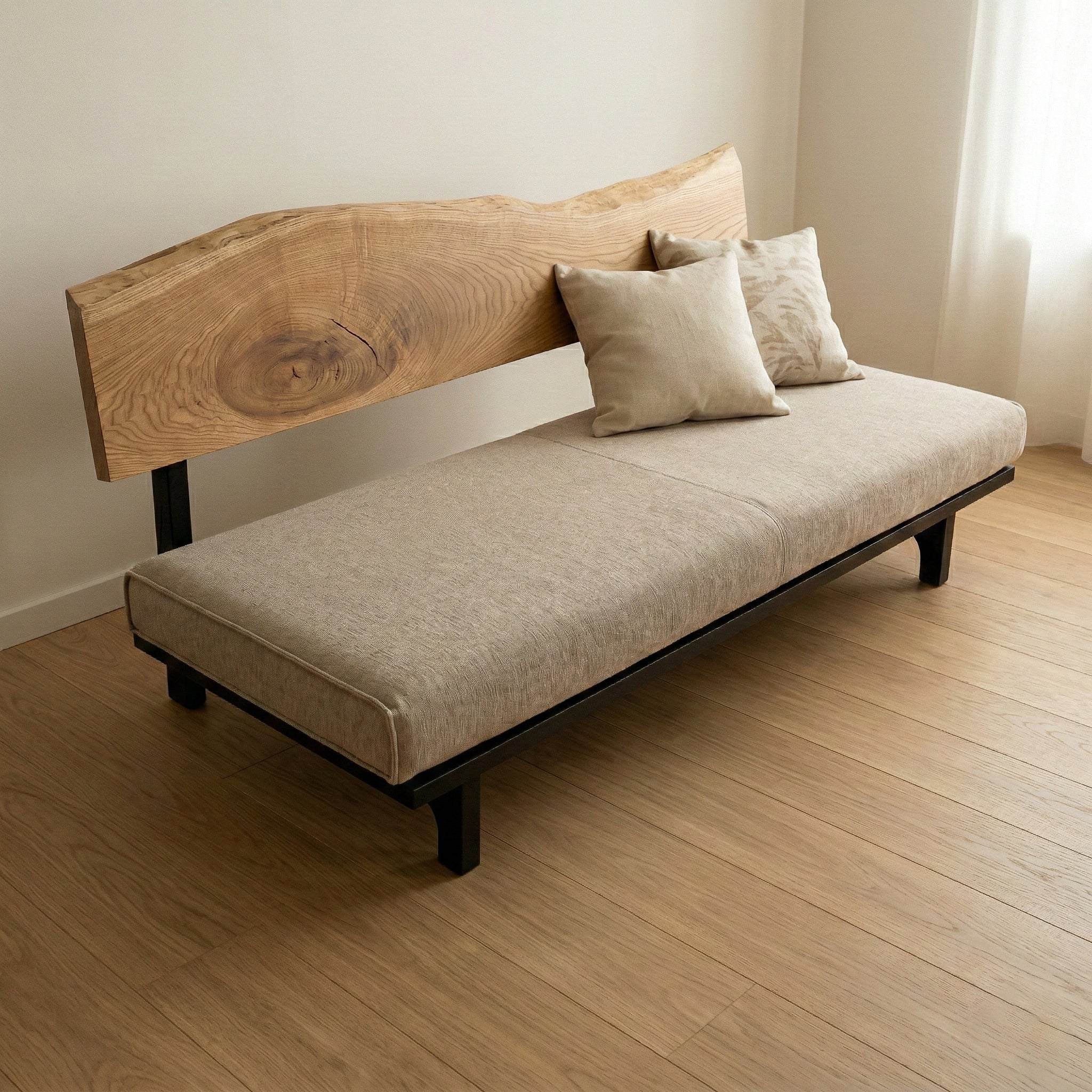 リビング空間の重心となる一枚板を、ソファやラグ、照明と組み合わせたコーディネート事例をご紹介します。天板の存在感を受け止める脚の形状や、ソファとの高さ・奥行きの関係が、くつろぎの質を大きく左右します。掲載しているのはすべて一点ものの一枚板による実例で、写真内のテーブルや周辺アイテムは実際にお選びいただけます。木の表情が空間に溶け込み、暮らしに静かな豊かさをもたらす様子をご覧ください。