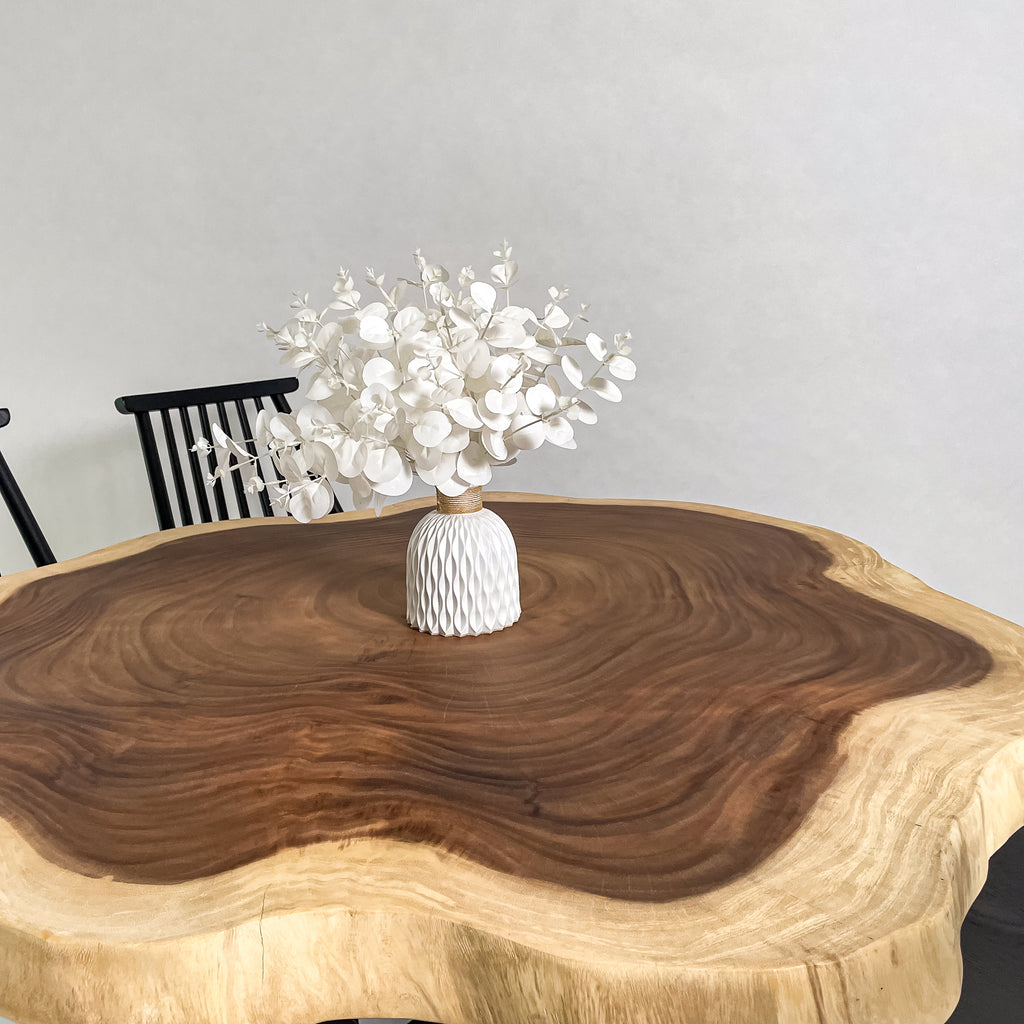 複数の板をつなぎ合わせたものとは異なり、途切れることなく続く杢目は自然の美しさをそのまま映し出します。