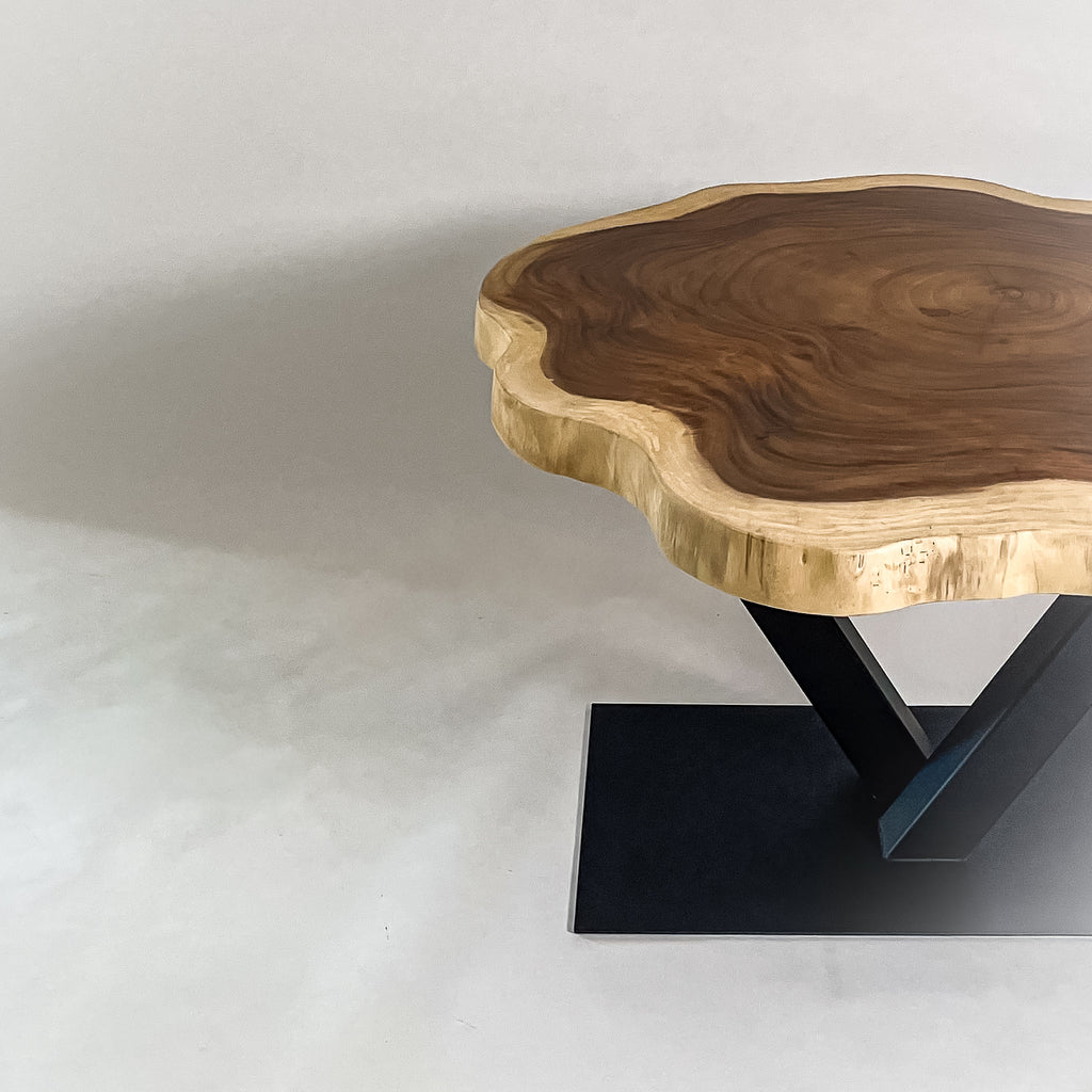 時代を超えて受け継がれる機能性と、現代の暮らしに寄り添うデザイン性を兼ね備えた一枚板家具の製作を手がける。 | 現代の空間に映えるモダンなデザイン性を取り入れながら、一枚板の持つ素材感と存在感を活かした加工・製作を行う。 | |