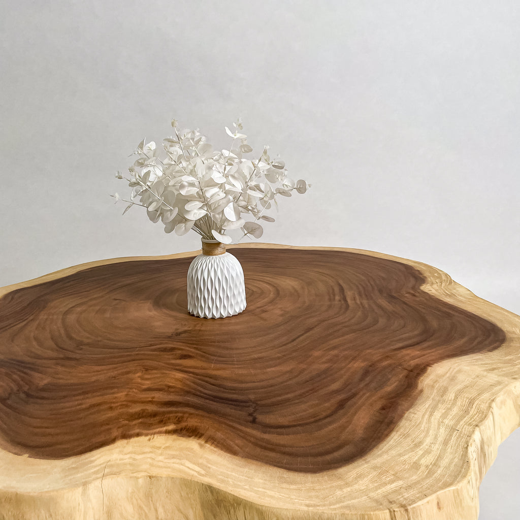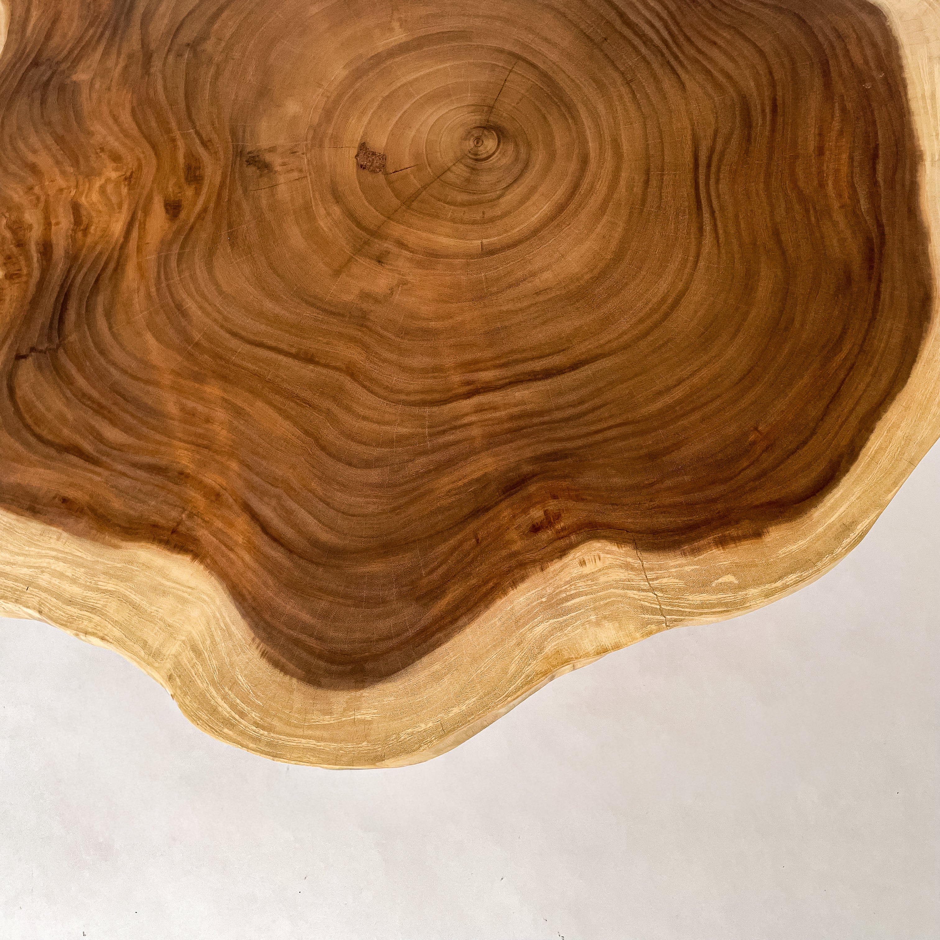 複数の板をつなぎ合わせたものとは異なり、途切れることなく続く杢目は自然の美しさをそのまま映し出します。