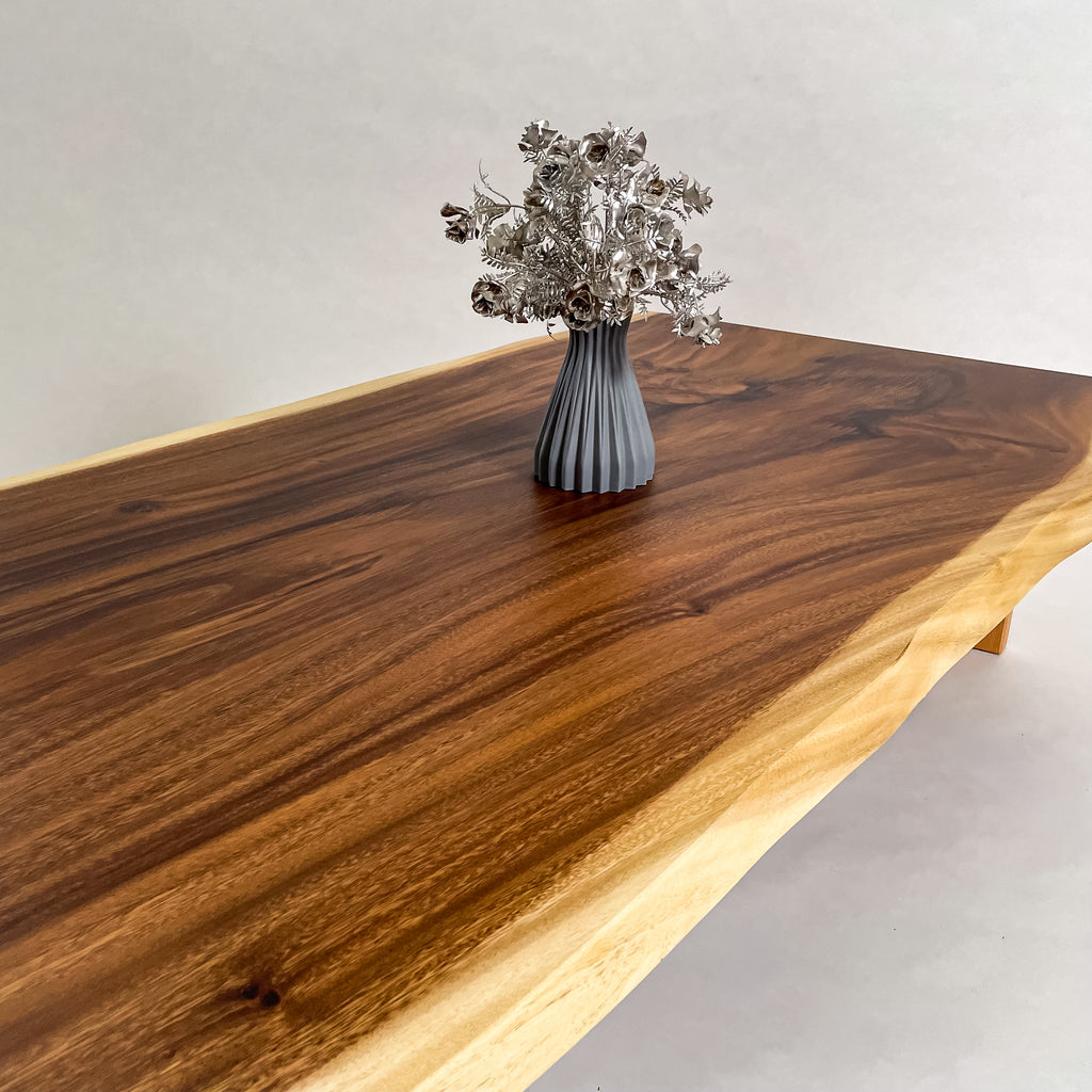 時代を超えて受け継がれる機能性と、現代の暮らしに寄り添うデザイン性を兼ね備えた一枚板家具の製作を手がける。 | 現代の空間に映えるモダンなデザイン性を取り入れながら、一枚板の持つ素材感と存在感を活かした加工・製作を行う。 | |