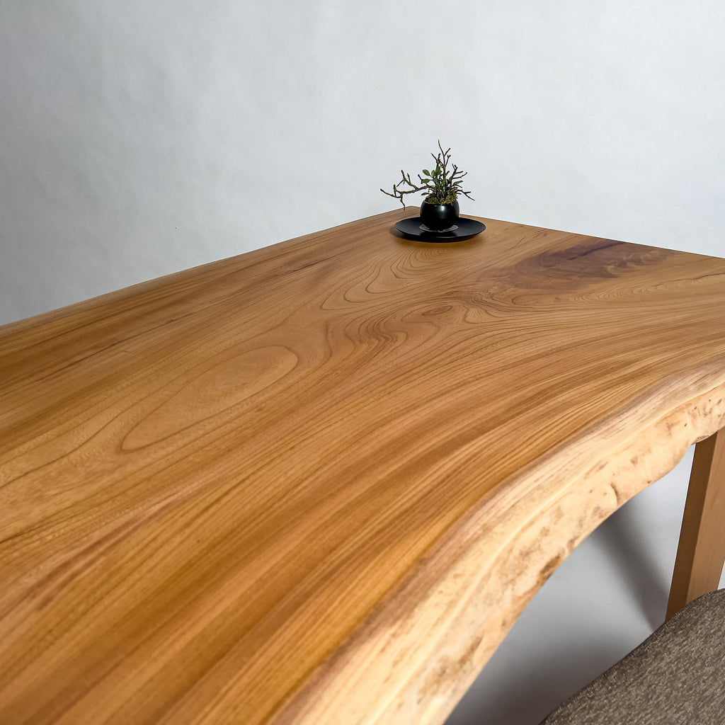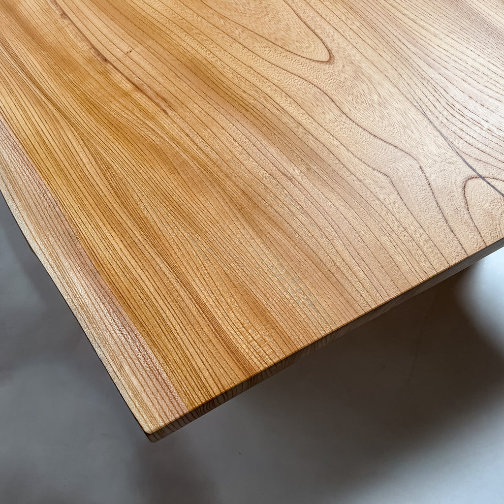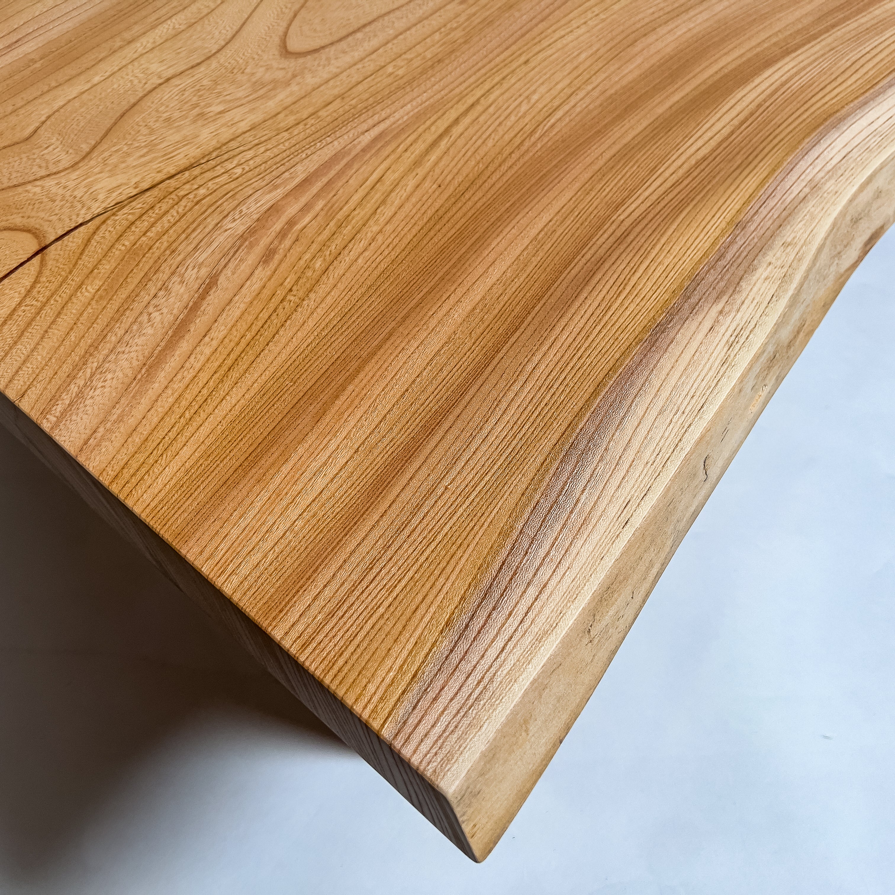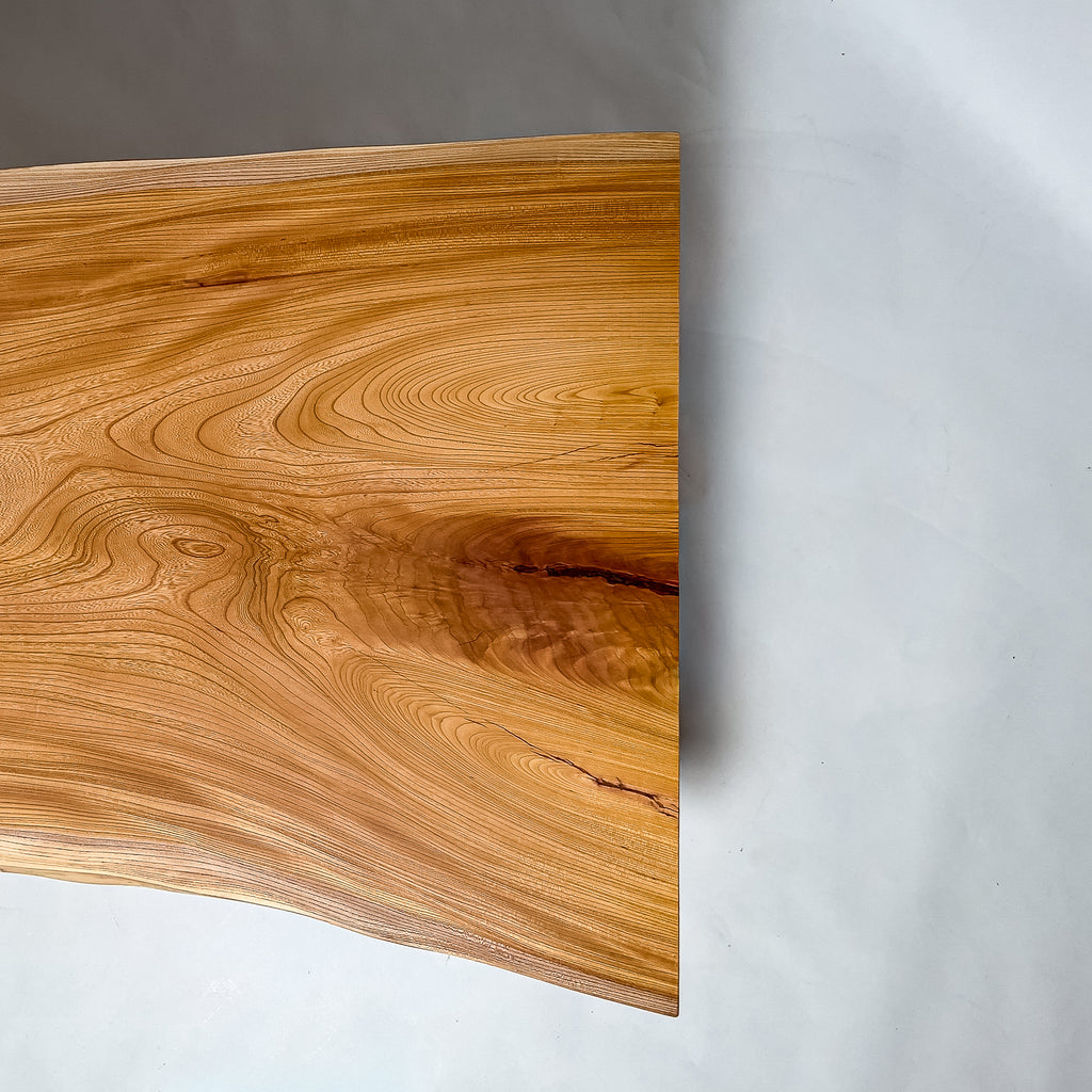 自然が生み出した不均一な表情を 読み解き、素材の持つ品格や奥行きが際立つよう、細部まで配慮した加工で完成度を高める。 一枚板単体の美しさだけでなく、置かれる空間や光の入り方までを思い描き、その場に自然と溶け込む佇まいへと仕上げる。
