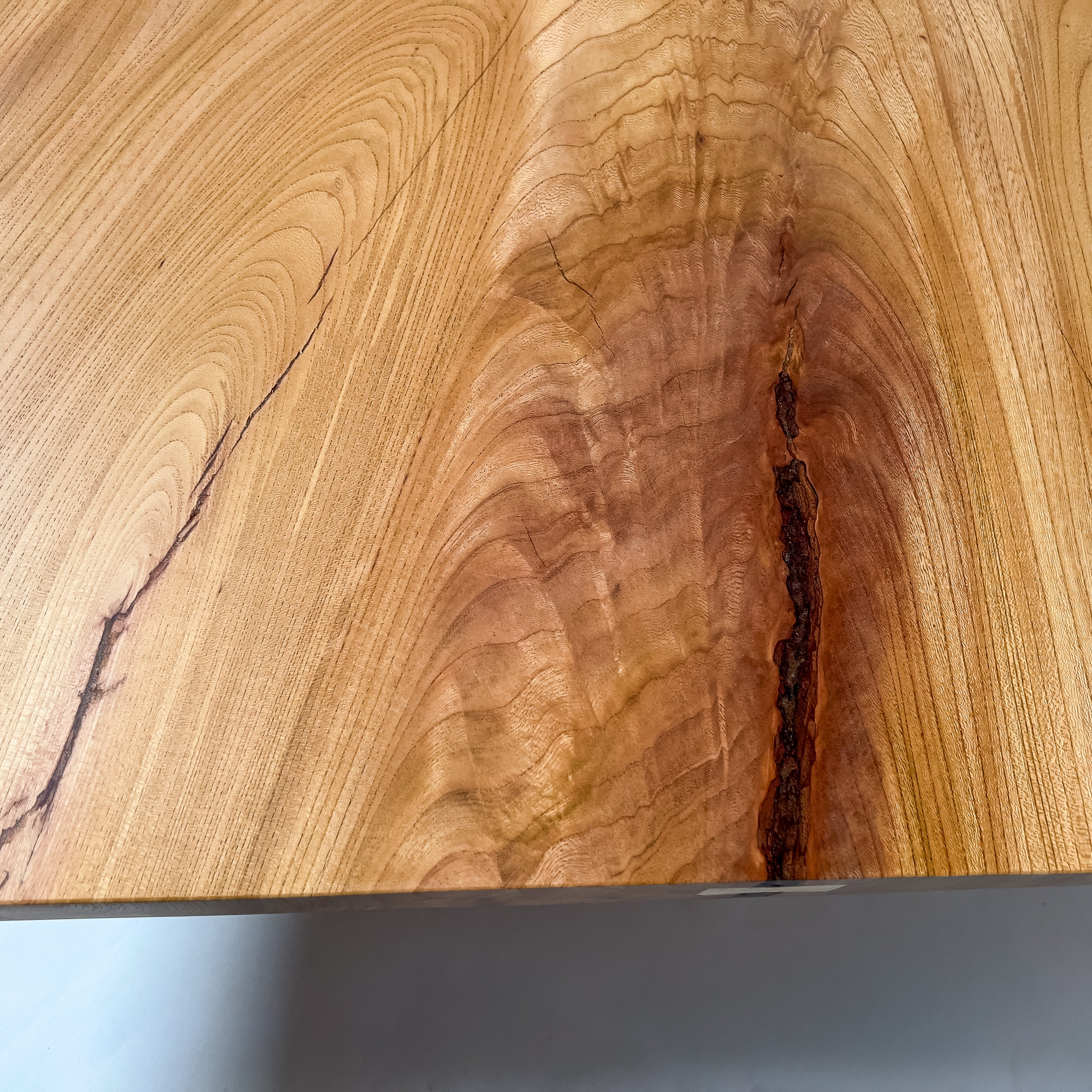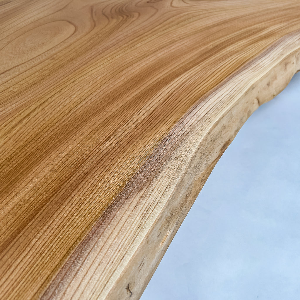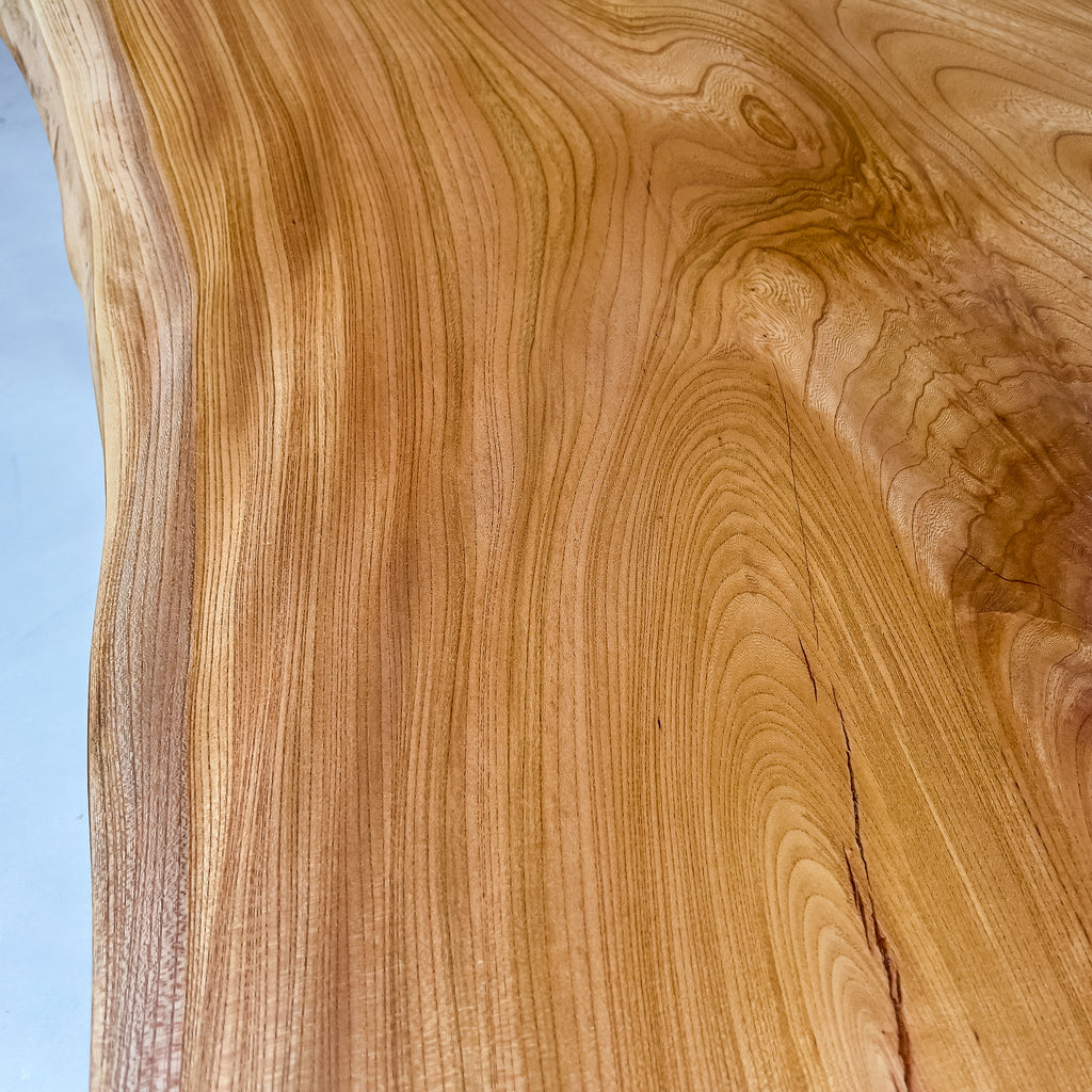 複数の板をつなぎ合わせたものとは異なり、途切れることなく続く杢目は自然の美しさをそのまま映し出します。