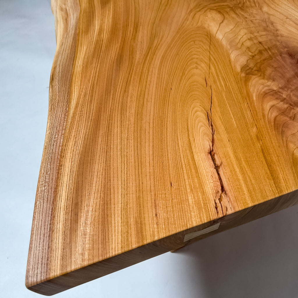 天然木の一枚板は、湿気を吸ったり吐いたりと呼吸を続けることで、冬の乾燥期などにまれにひび割れが生じることがあります。