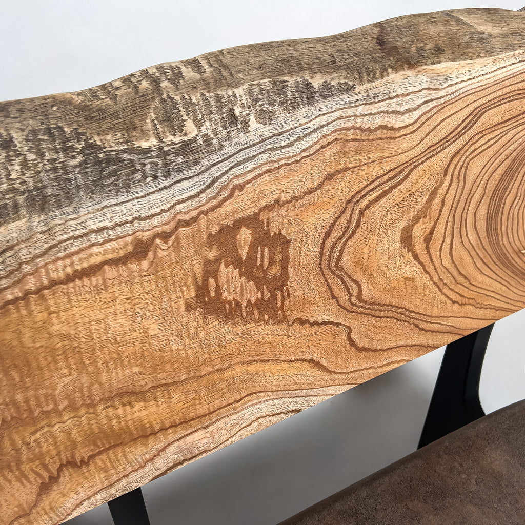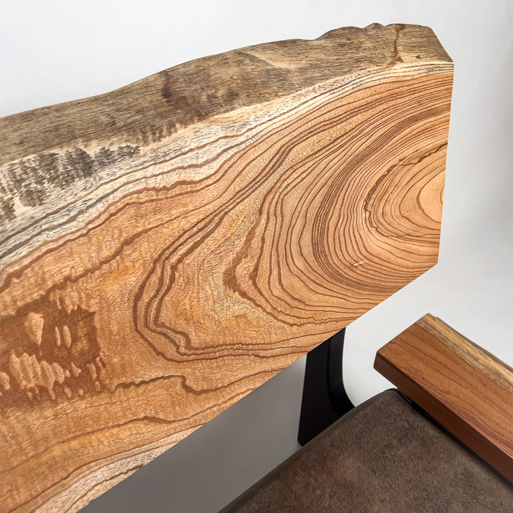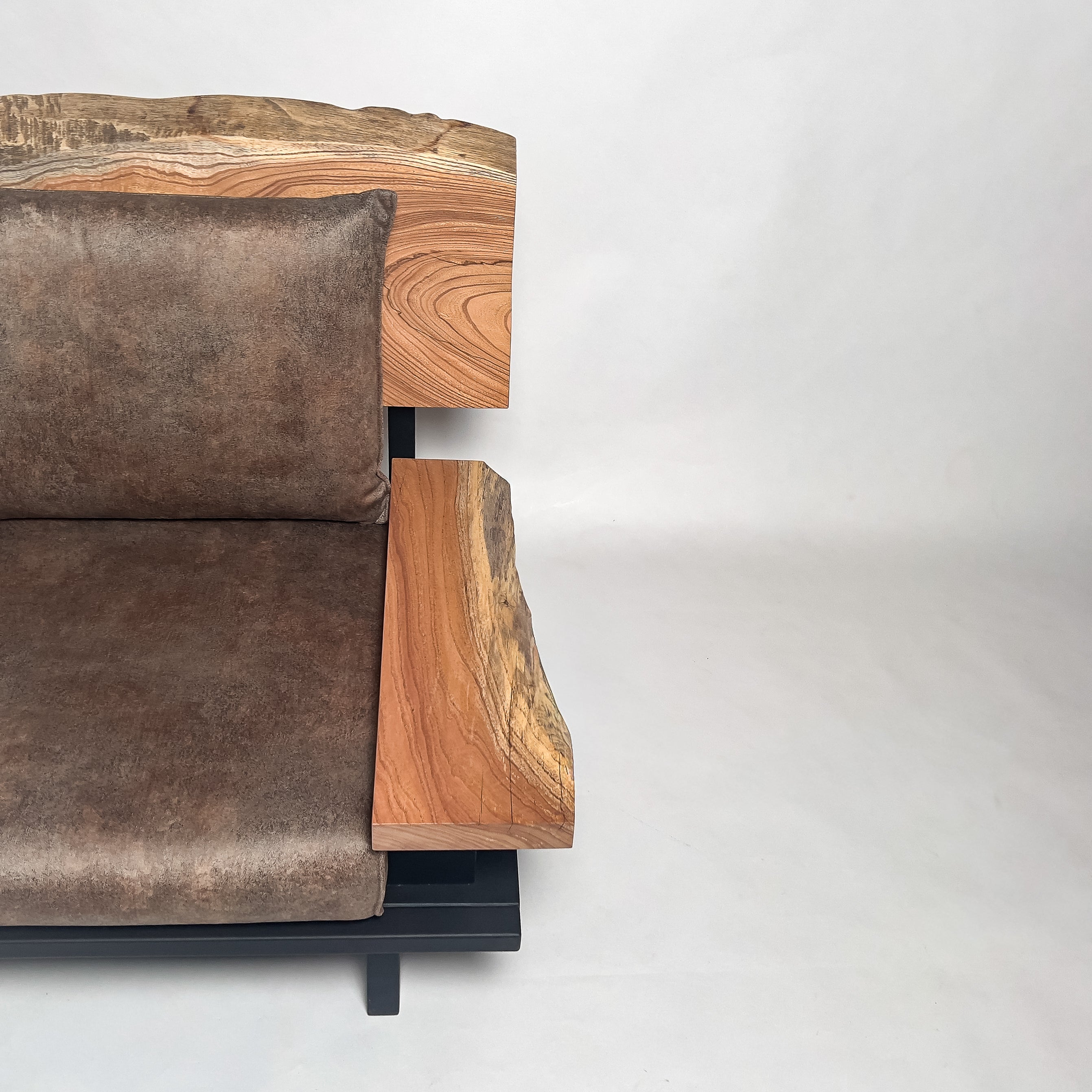 背もたれと肘置きにセンダンの一枚板を贅沢に用いた無垢ソファです。自然の曲線をそのまま残した加工が、木の力強さと温もりを伝えます。落ち着いた佇まいが日常を穏やかに彩り、心地よい時間をもたらします。