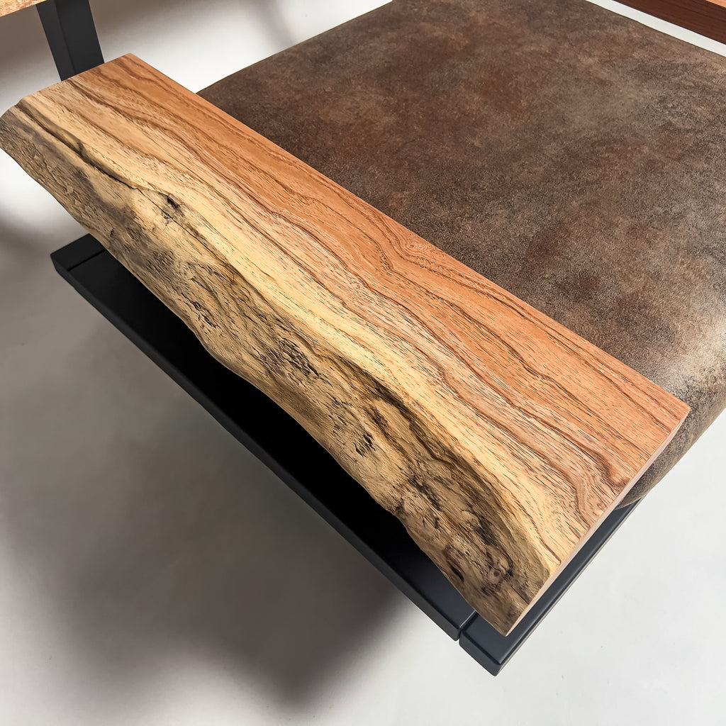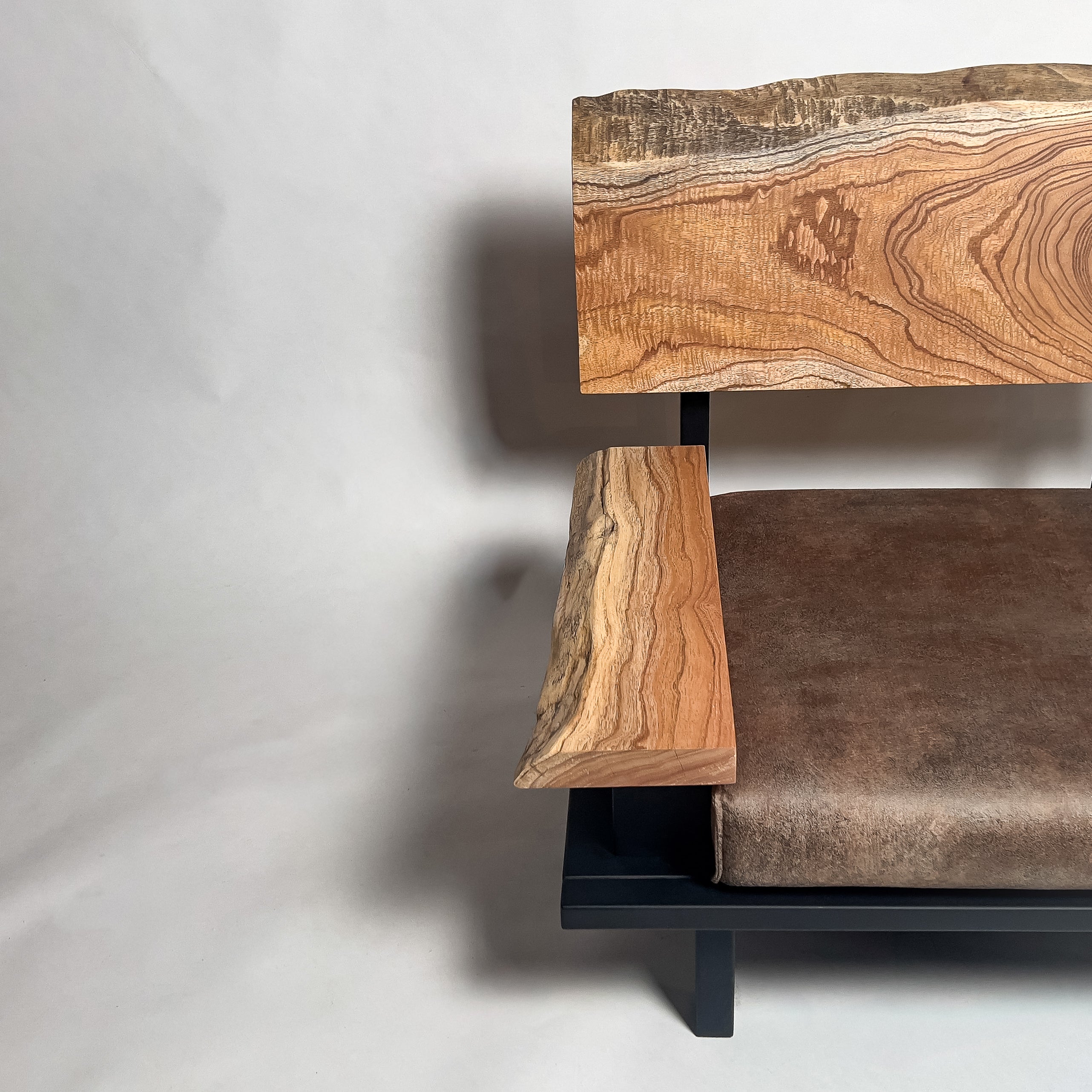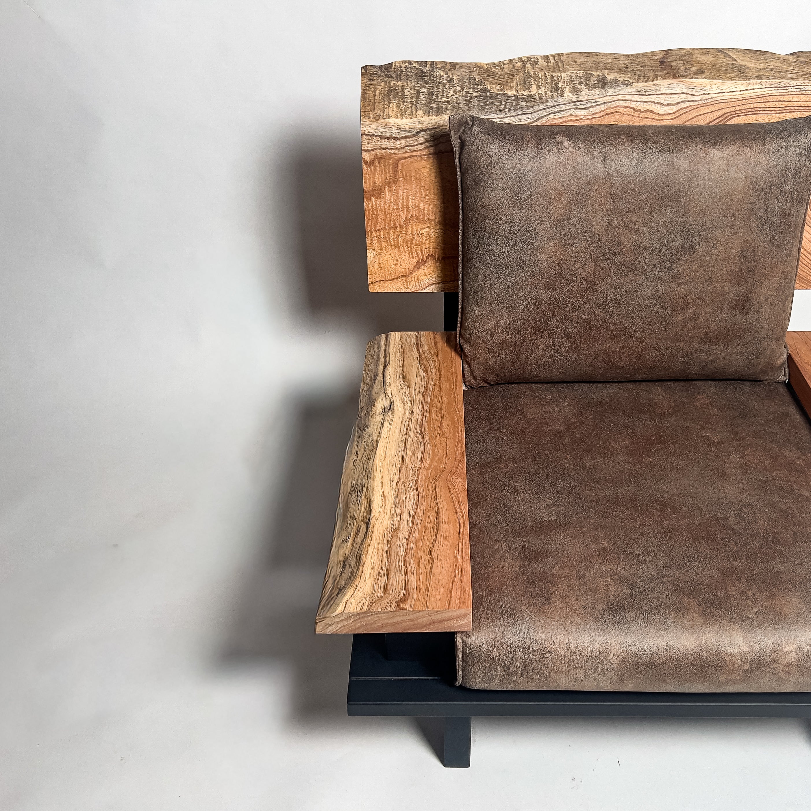 背もたれと肘置きにセンダンの一枚板を贅沢に用いた無垢ソファです。自然の曲線をそのまま残した加工が、木の力強さと温もりを伝えます。落ち着いた佇まいが日常を穏やかに彩り、心地よい時間をもたらします。
