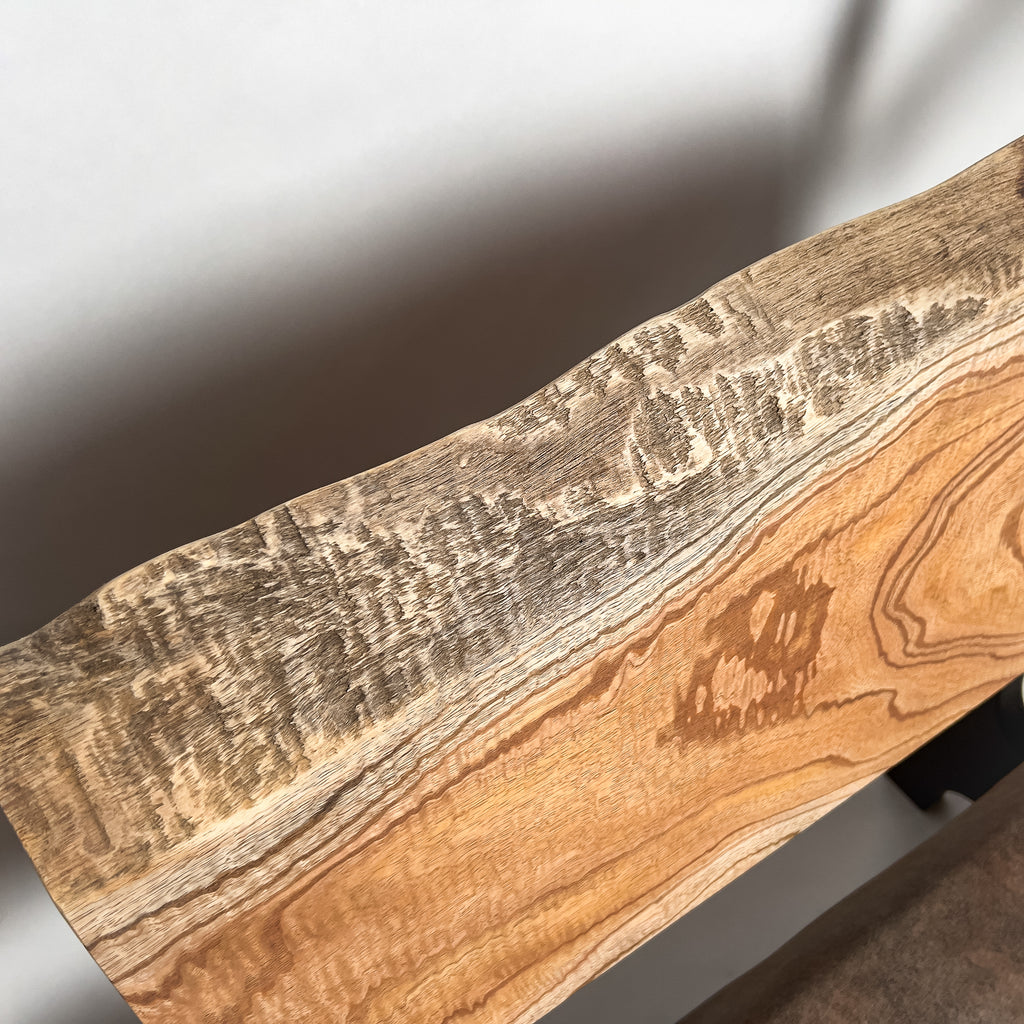 複数の板をつなぎ合わせたものとは異なり、途切れることなく続く杢目は自然の美しさをそのまま映し出します。
