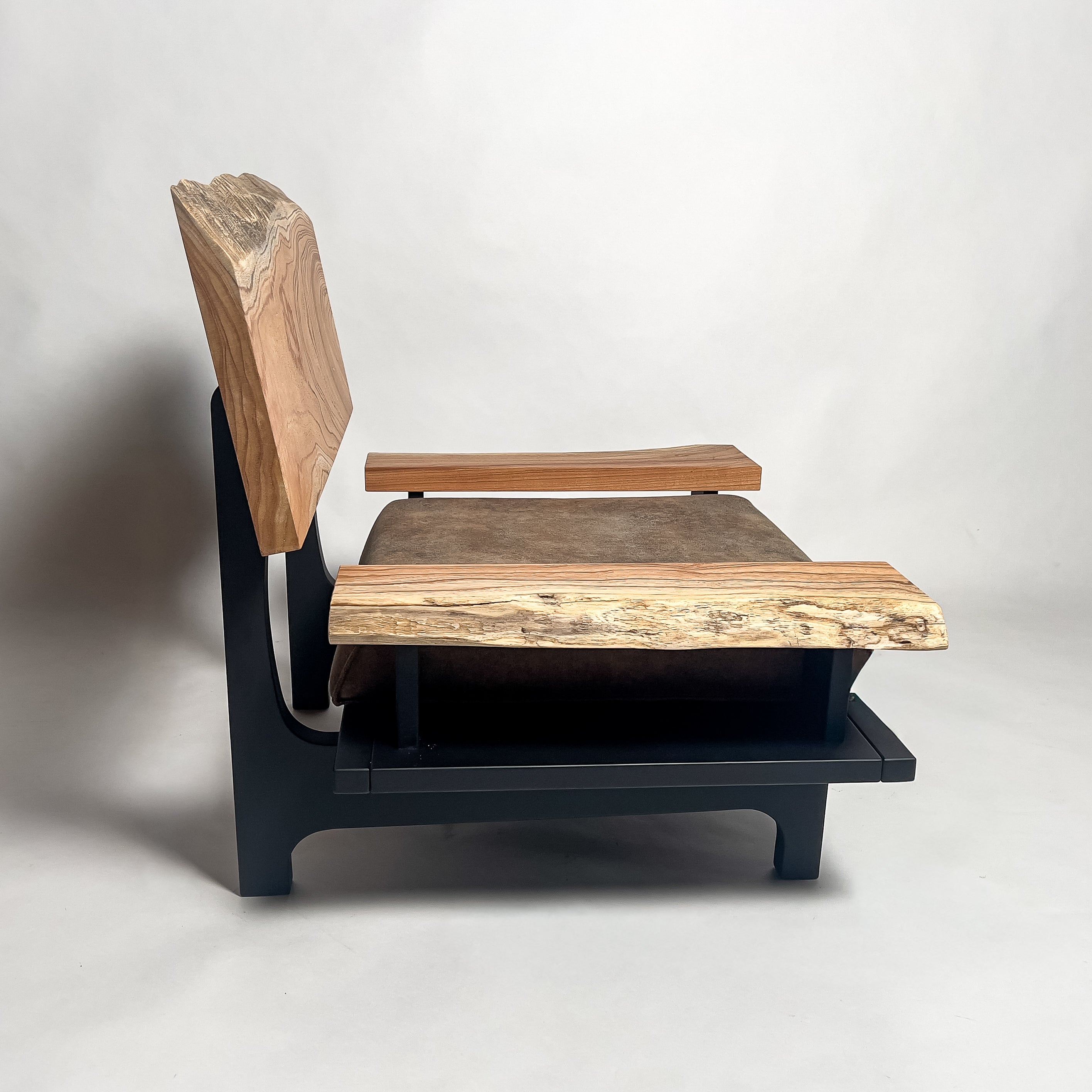 肘置き・背もたれに一枚板をあしらい、職人の手で丁寧に仕立てられた1人掛けソファ。置くだけで空間は格を増し、本物だけが持つ存在感に包まれます。こだわりのクッションは身体をやさしく支え、深い寛ぎをもたらします。自分だけの贅沢な時間を、上質な佇まいとともに過ごせる一脚です。