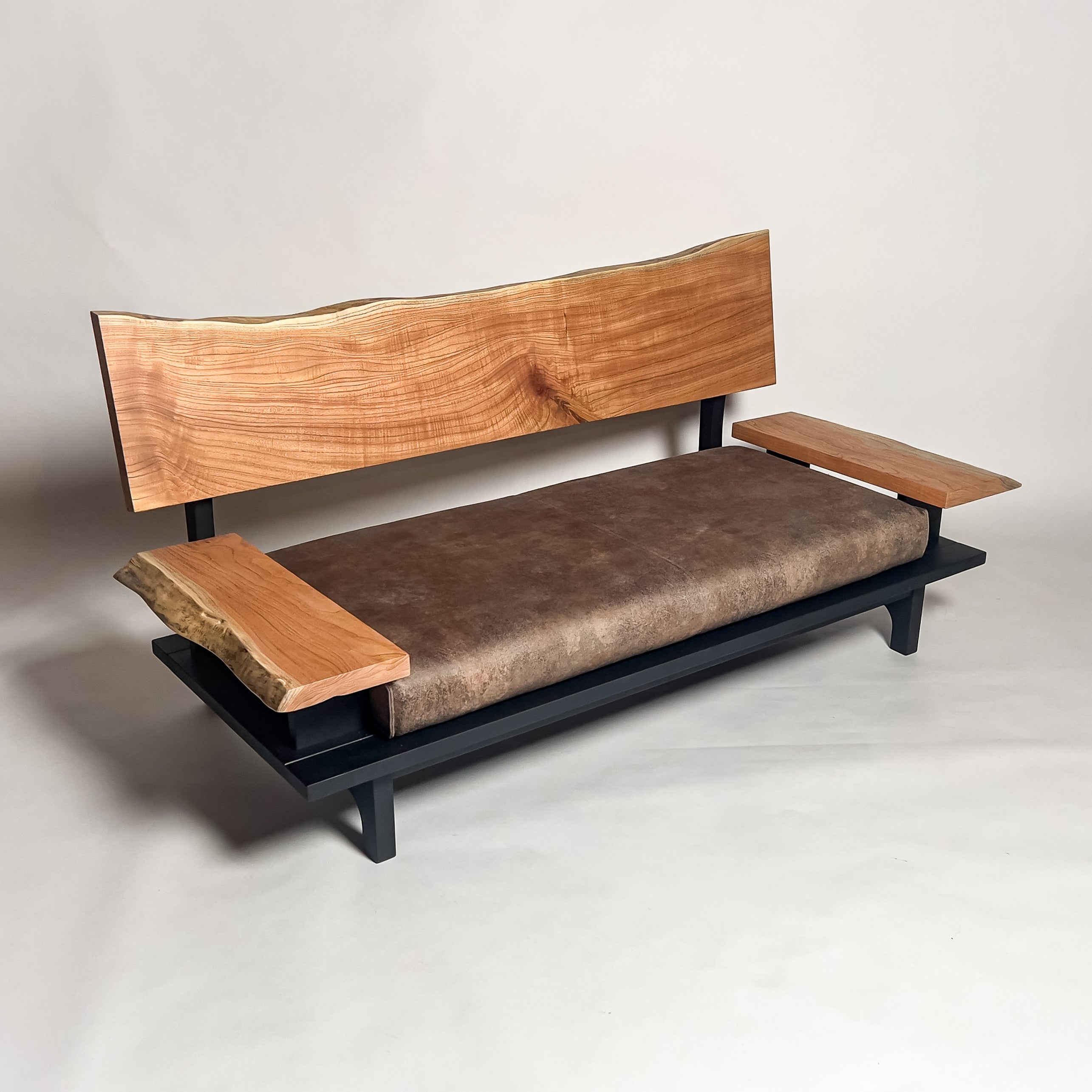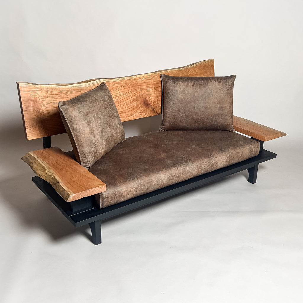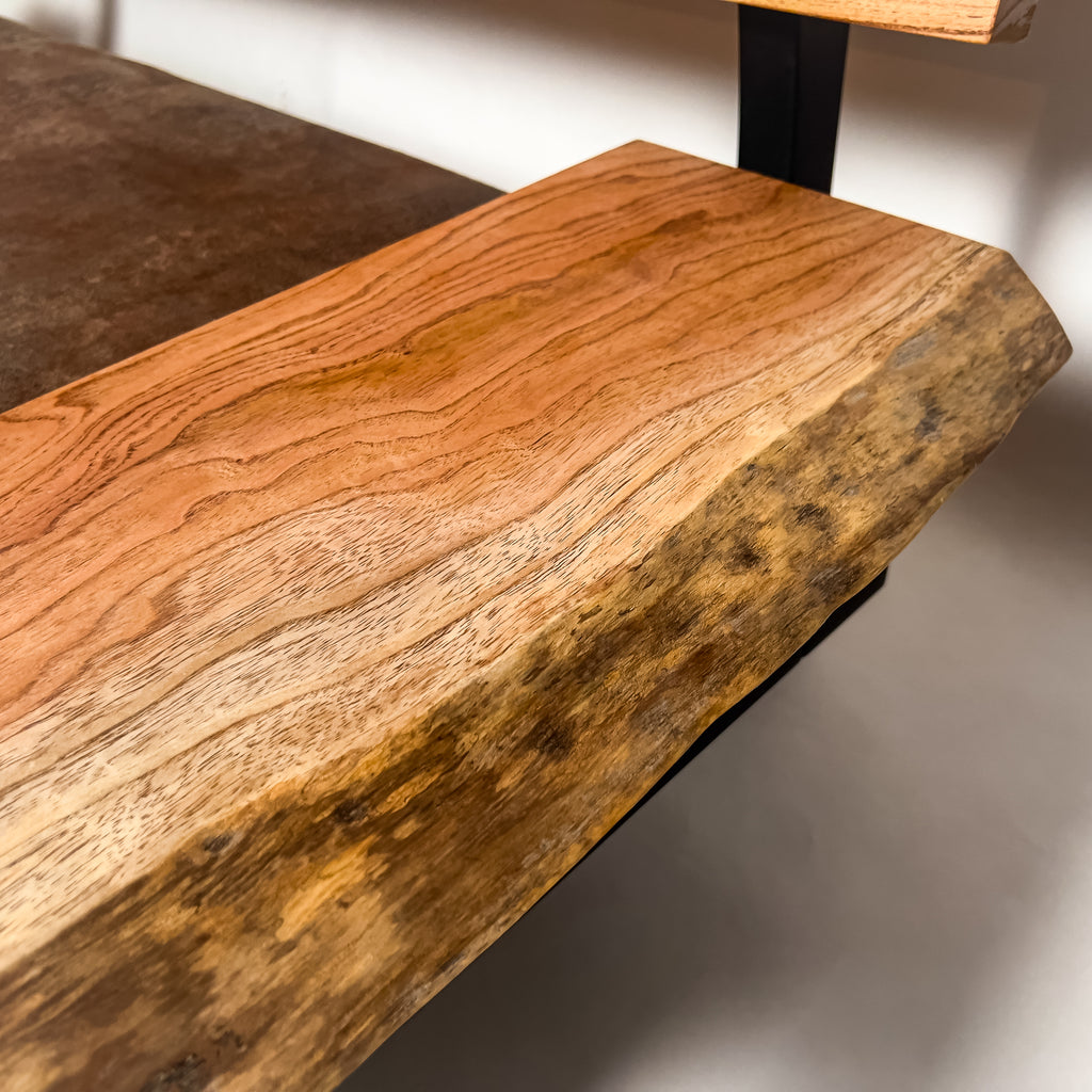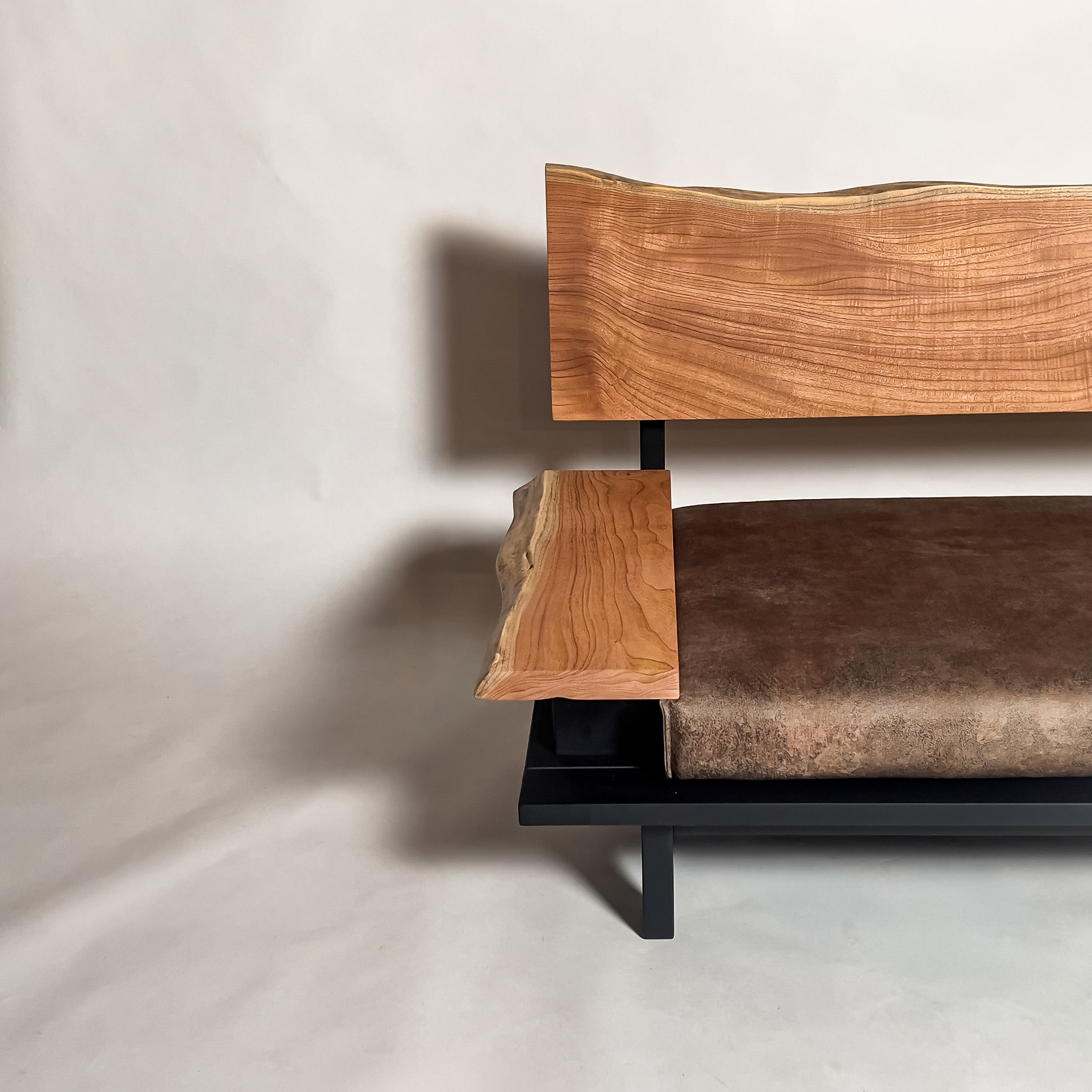 背もたれと肘置きにセンダンの一枚板を用いた高級ソファです。自然の形を活かした加工が木目の豊かさを際立たせ、木肌の温もりと職人の技が調和します。空間に心地よい落ち着きを添え、暮らしに寄り添う特別な存在です。