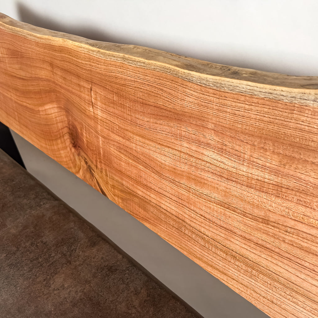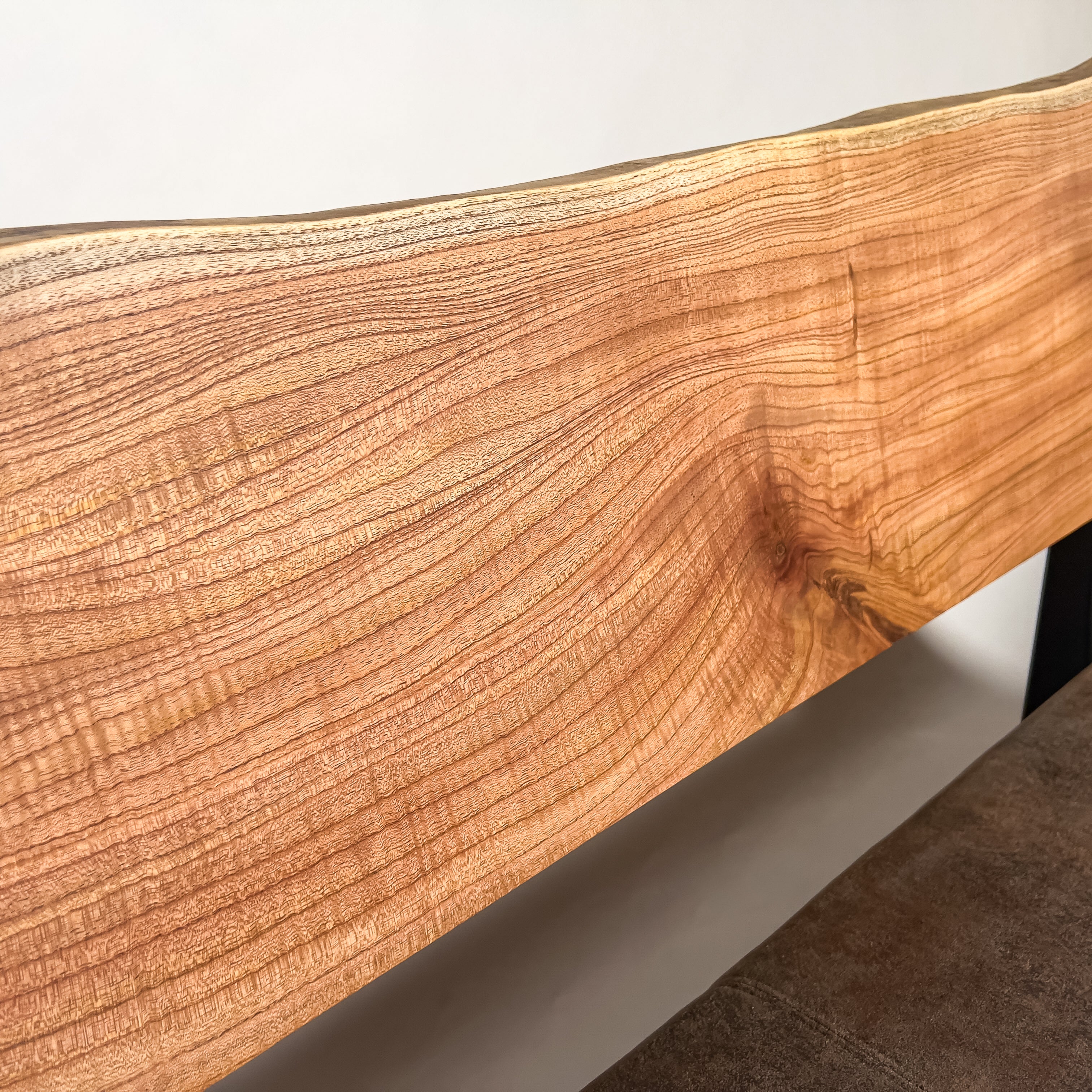複数の板をつなぎ合わせたものとは異なり、途切れることなく続く杢目は自然の美しさをそのまま映し出します。
