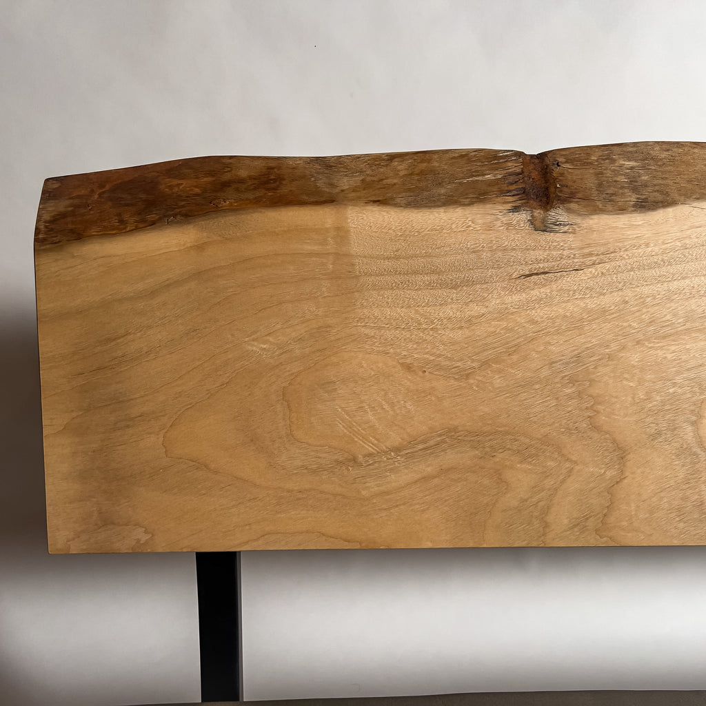 自然が生み出した不均一な表情を 読み解き、素材の持つ品格や奥行きが際立つよう、細部まで配慮した加工で完成度を高める。 一枚板単体の美しさだけでなく、置かれる空間や光の入り方までを思い描き、その場に自然と溶け込む佇まいへと仕上げる。