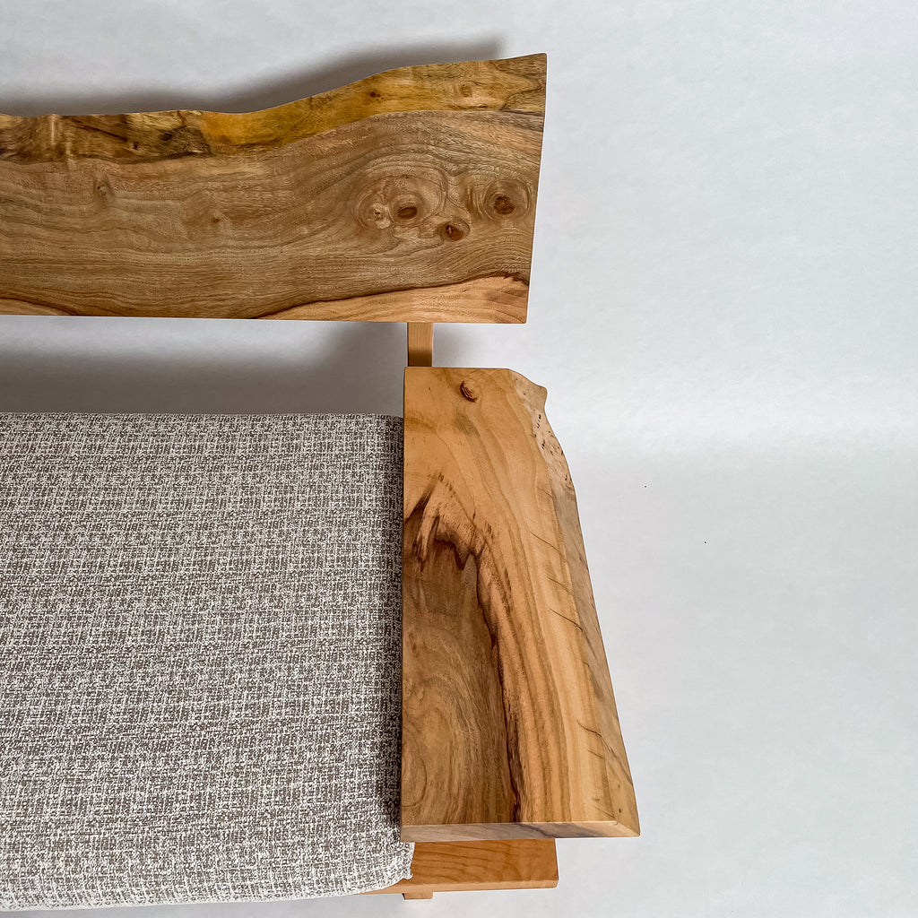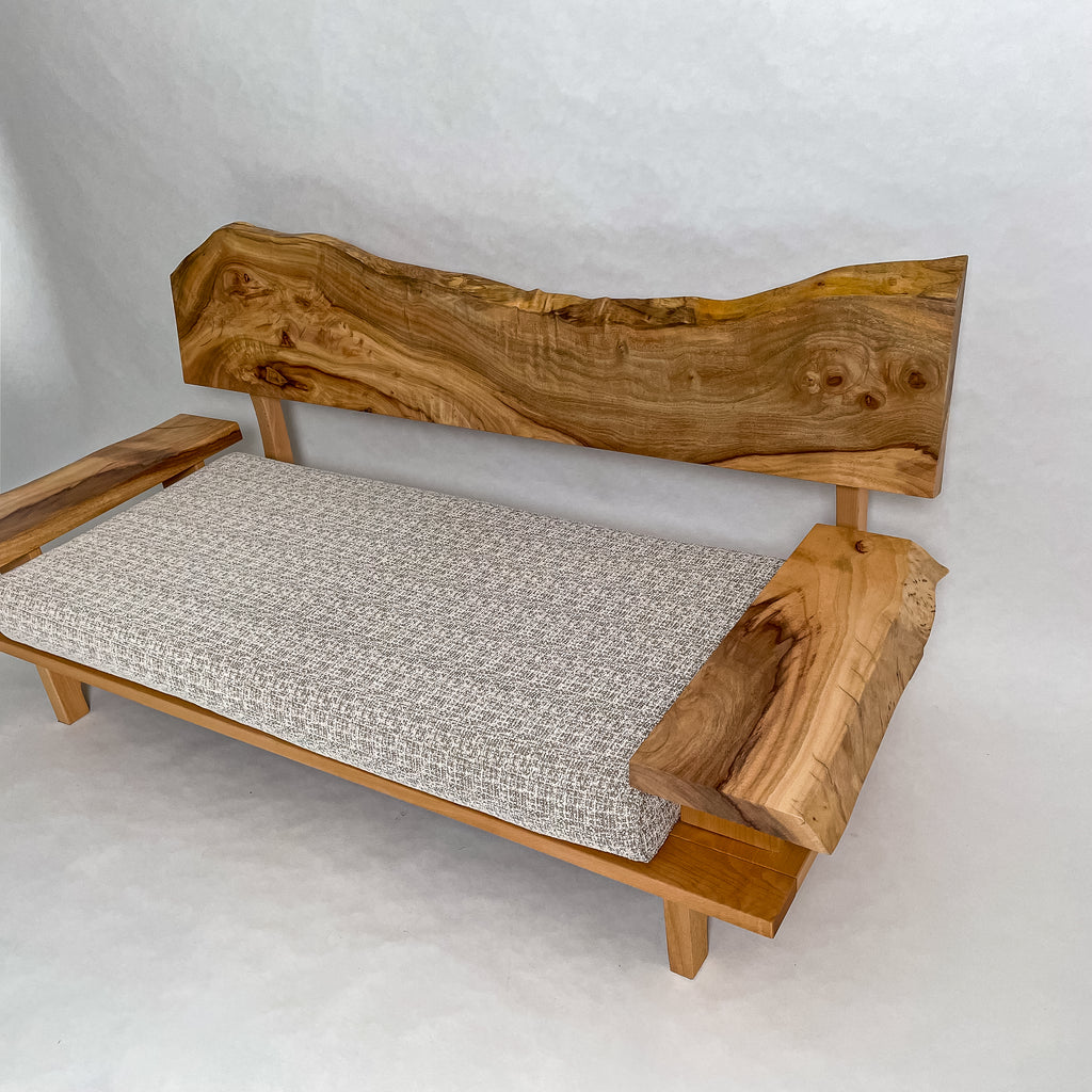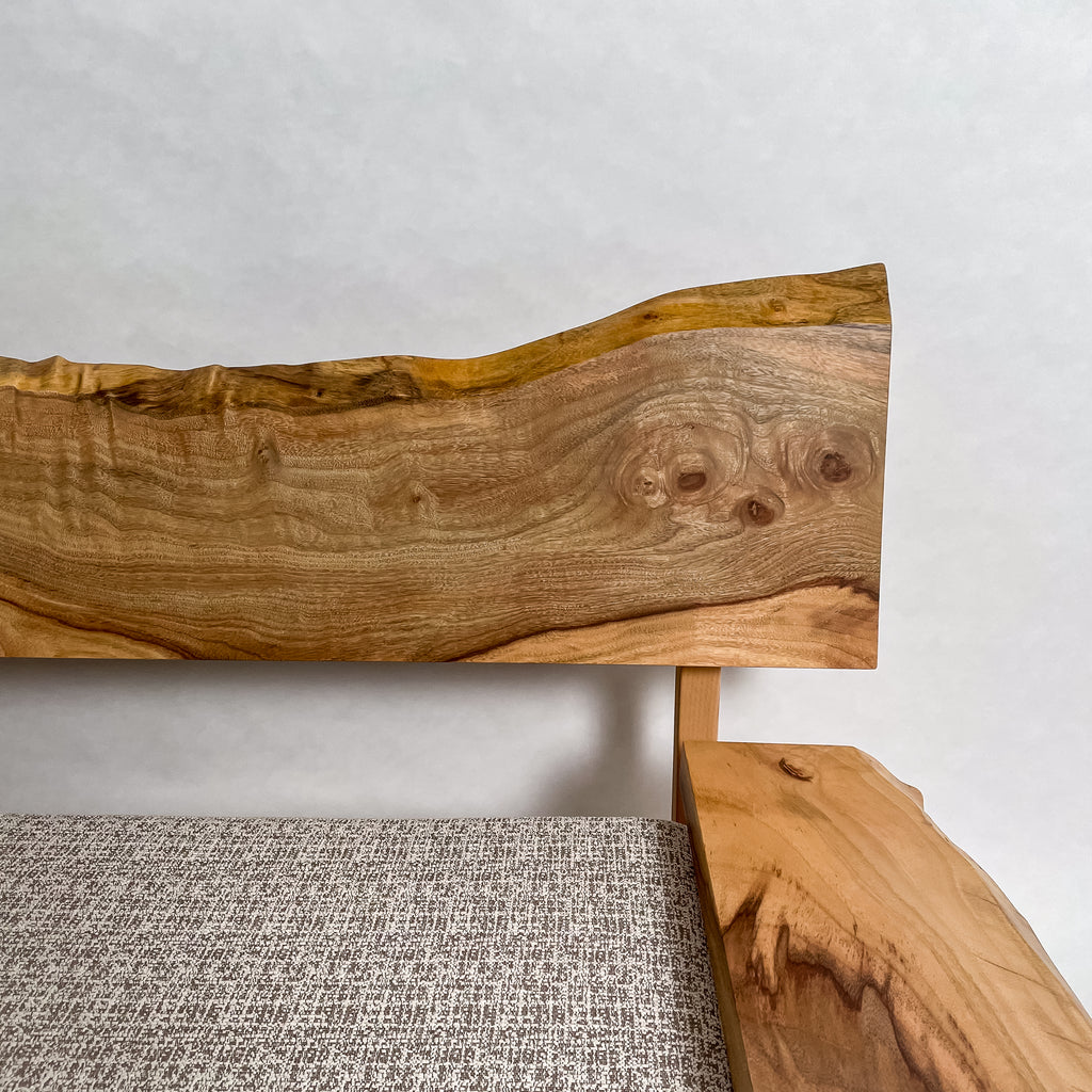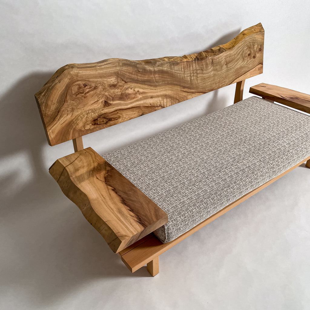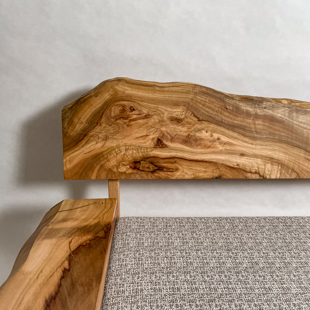 天然の楠が描く流れる木目をそのまま生かした無垢ソファです。自然な形を丁寧に整えた上質な佇まいが、毎日のくつろぎをやわらかく支えます。穏やかな木の質感が空間に落ち着きを添えます。