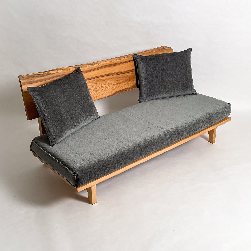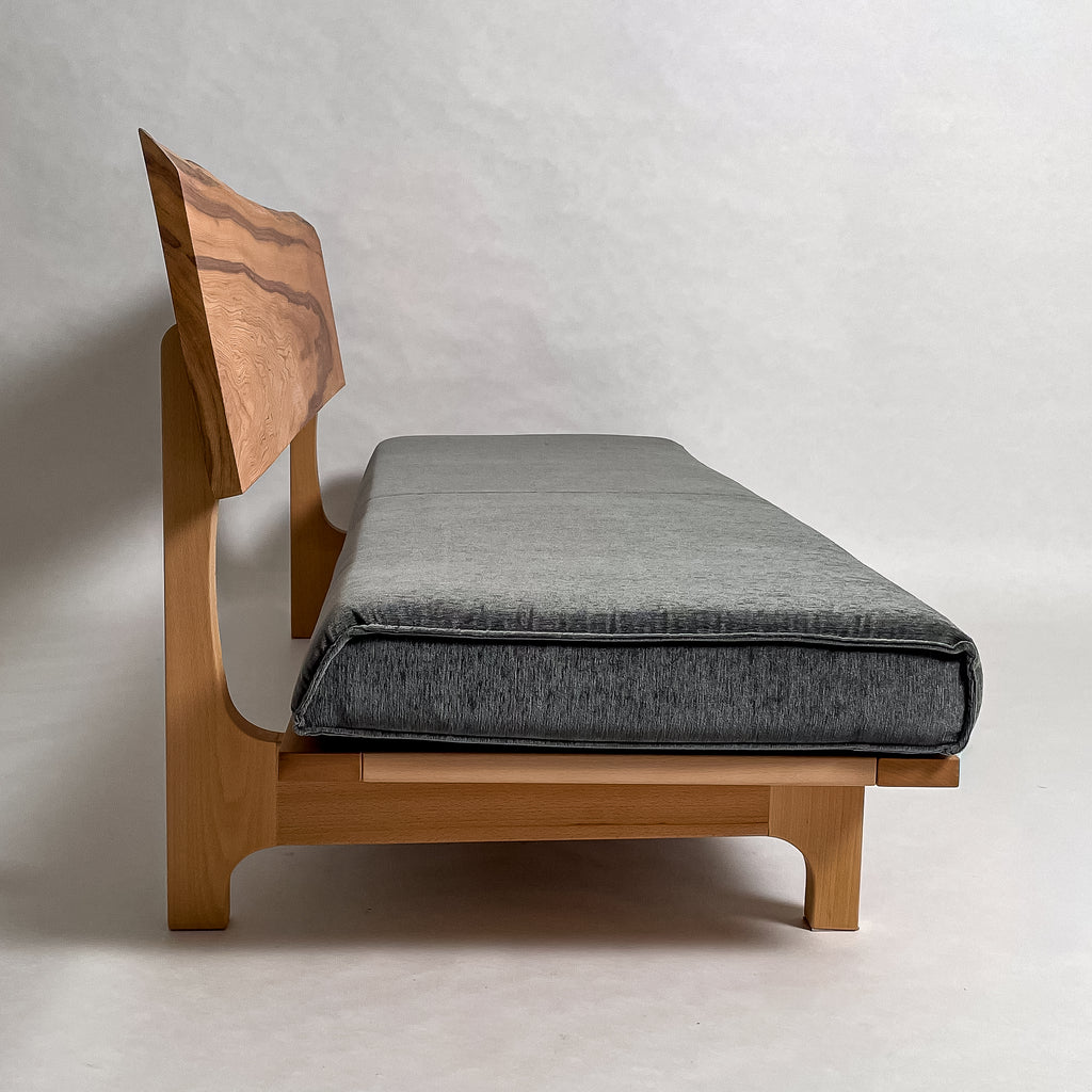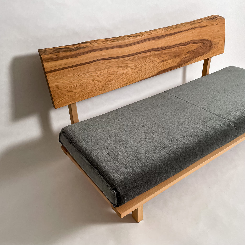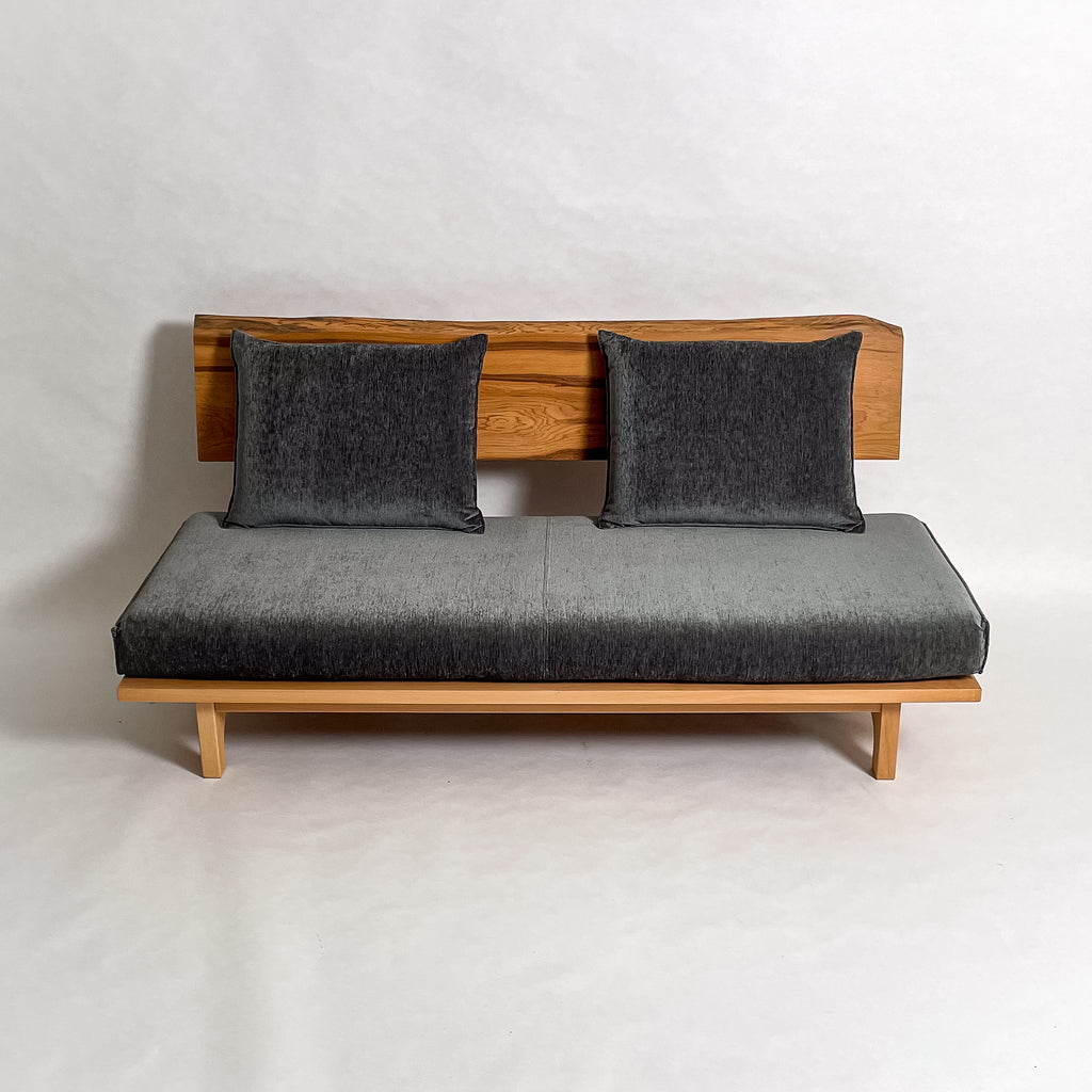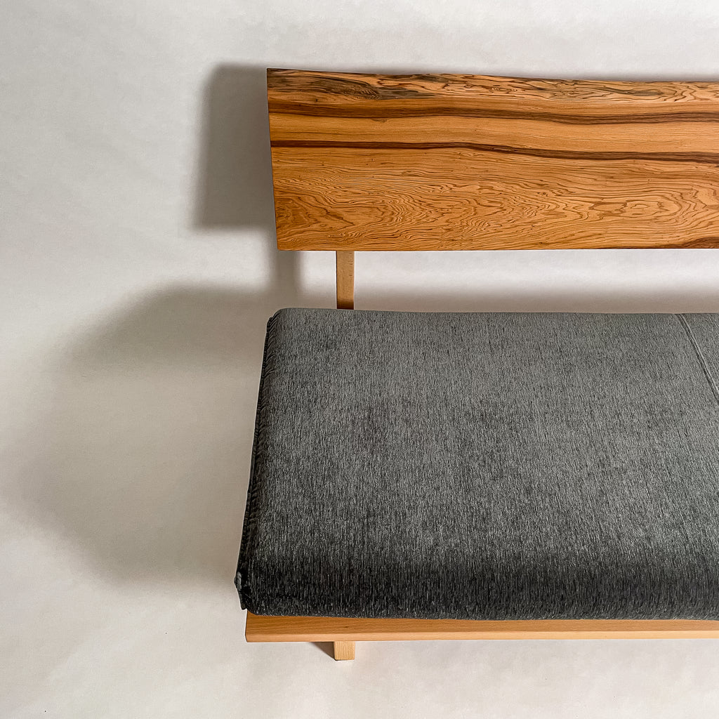 屋久杉の一枚板を背もたれと肘置きに贅沢に用いた高級ソファです。自然の曲線を丁寧に整えた仕上げが木の躍動感を残し、穏やかな存在感を生み出します。滑らかな木肌が心地よく、空間に上品な温もりを添えます。