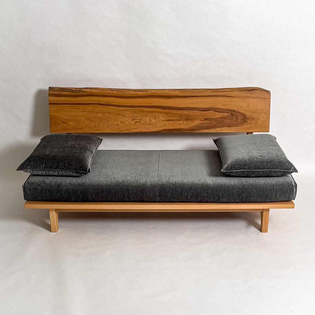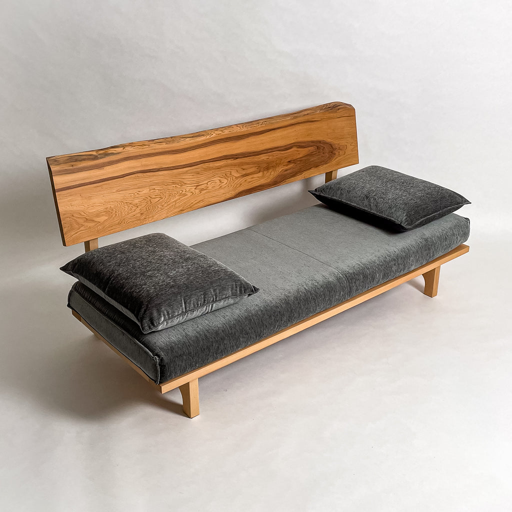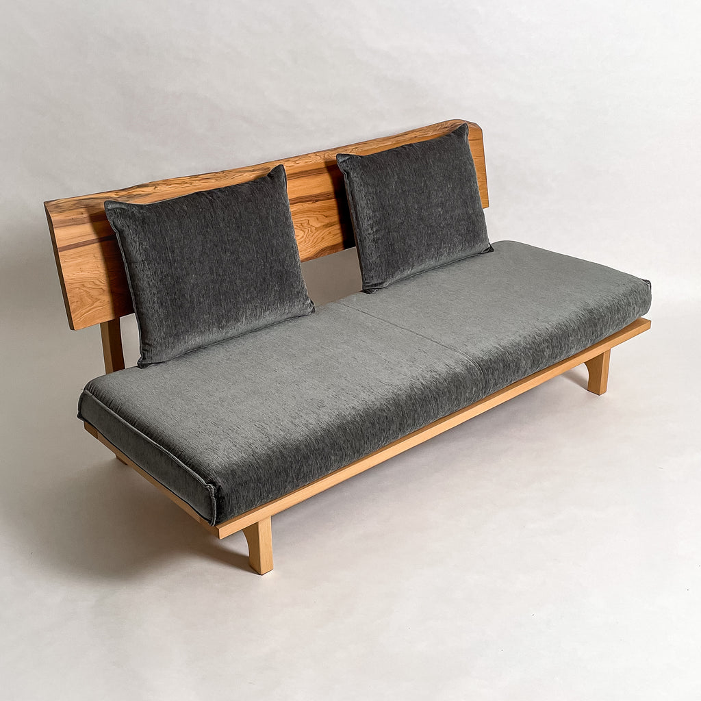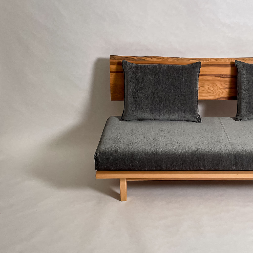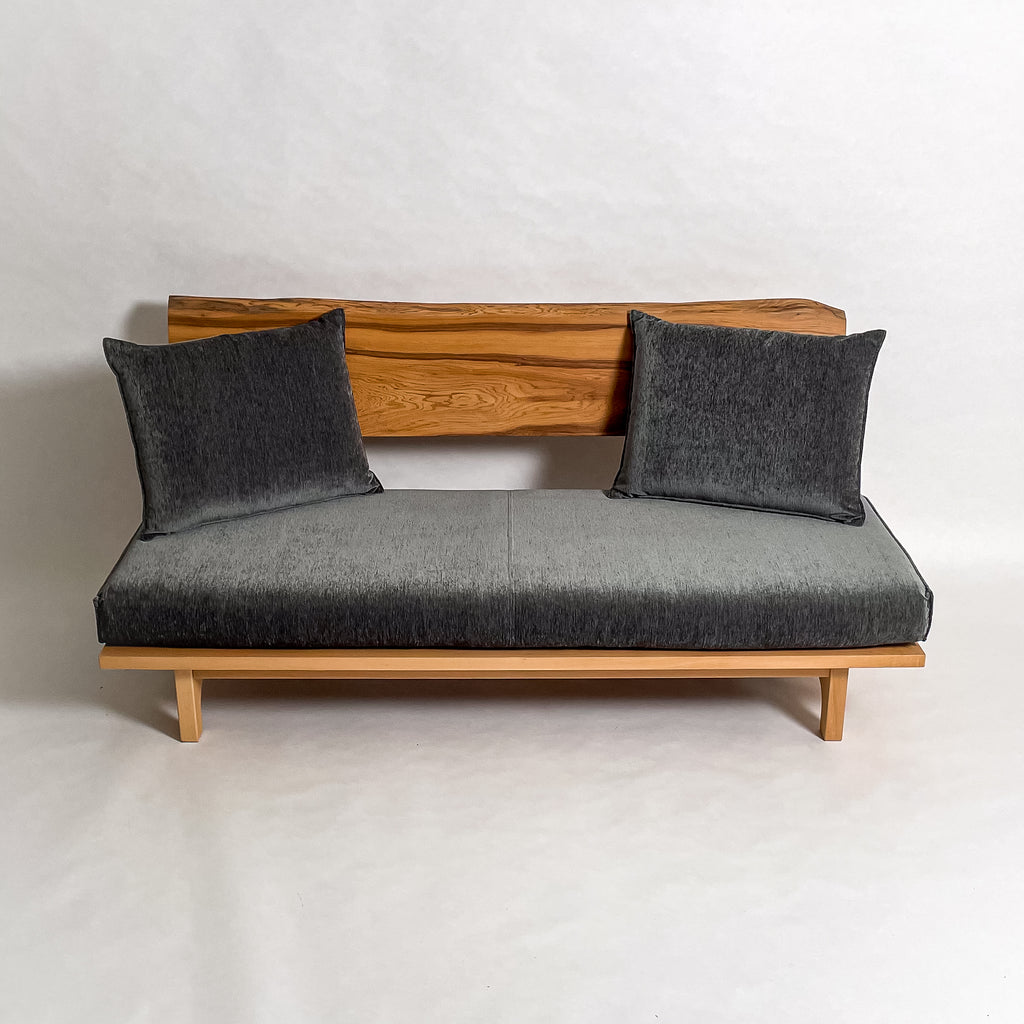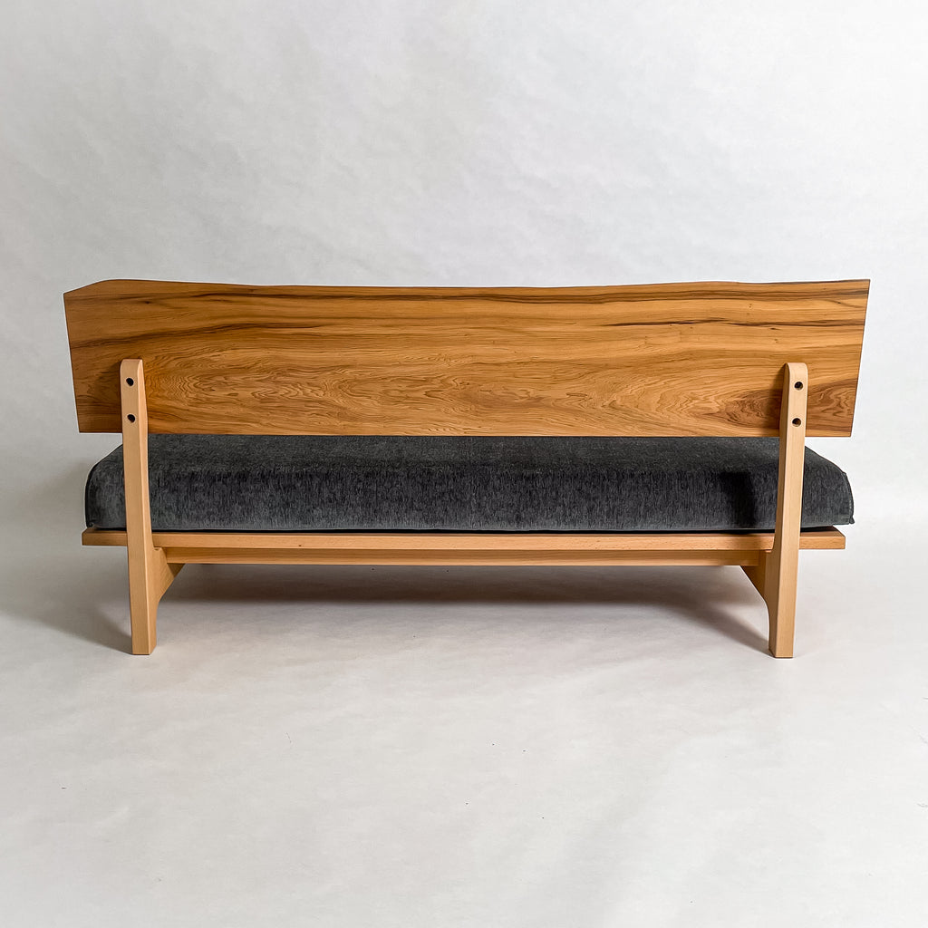 屋久杉の一枚板を背もたれと肘置きに贅沢に用いた高級ソファです。自然の曲線を丁寧に整えた仕上げが木の躍動感を残し、穏やかな存在感を生み出します。滑らかな木肌が心地よく、空間に上品な温もりを添えます。