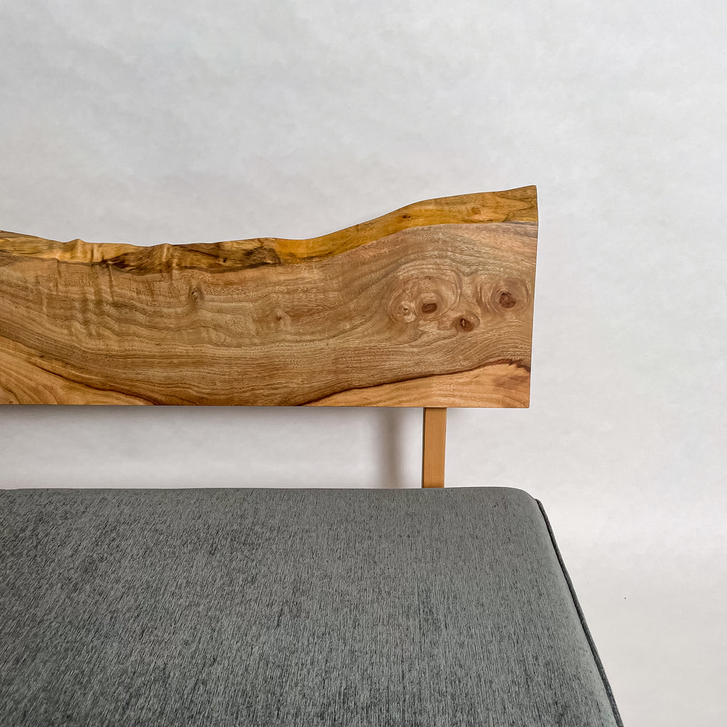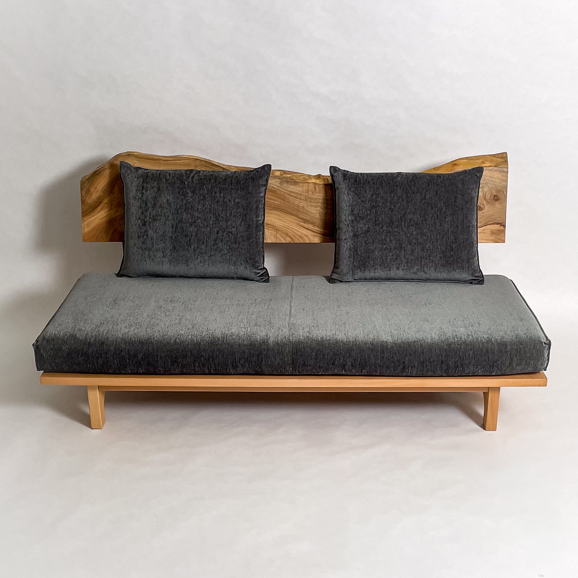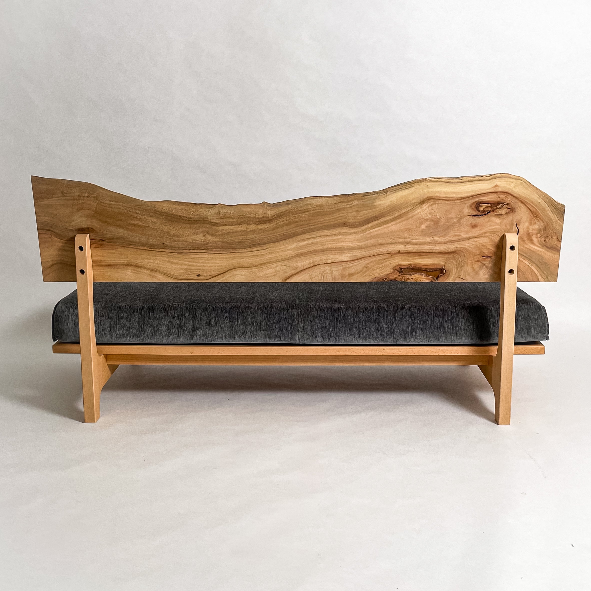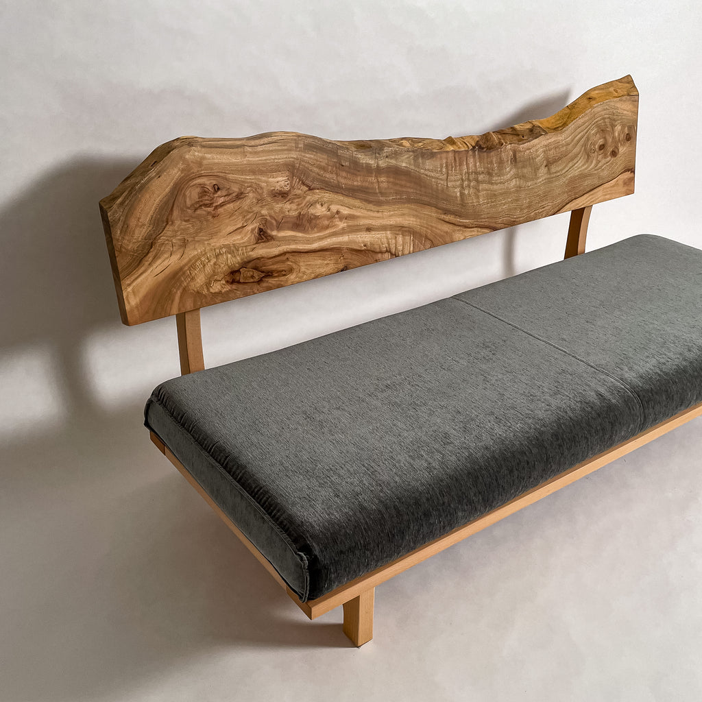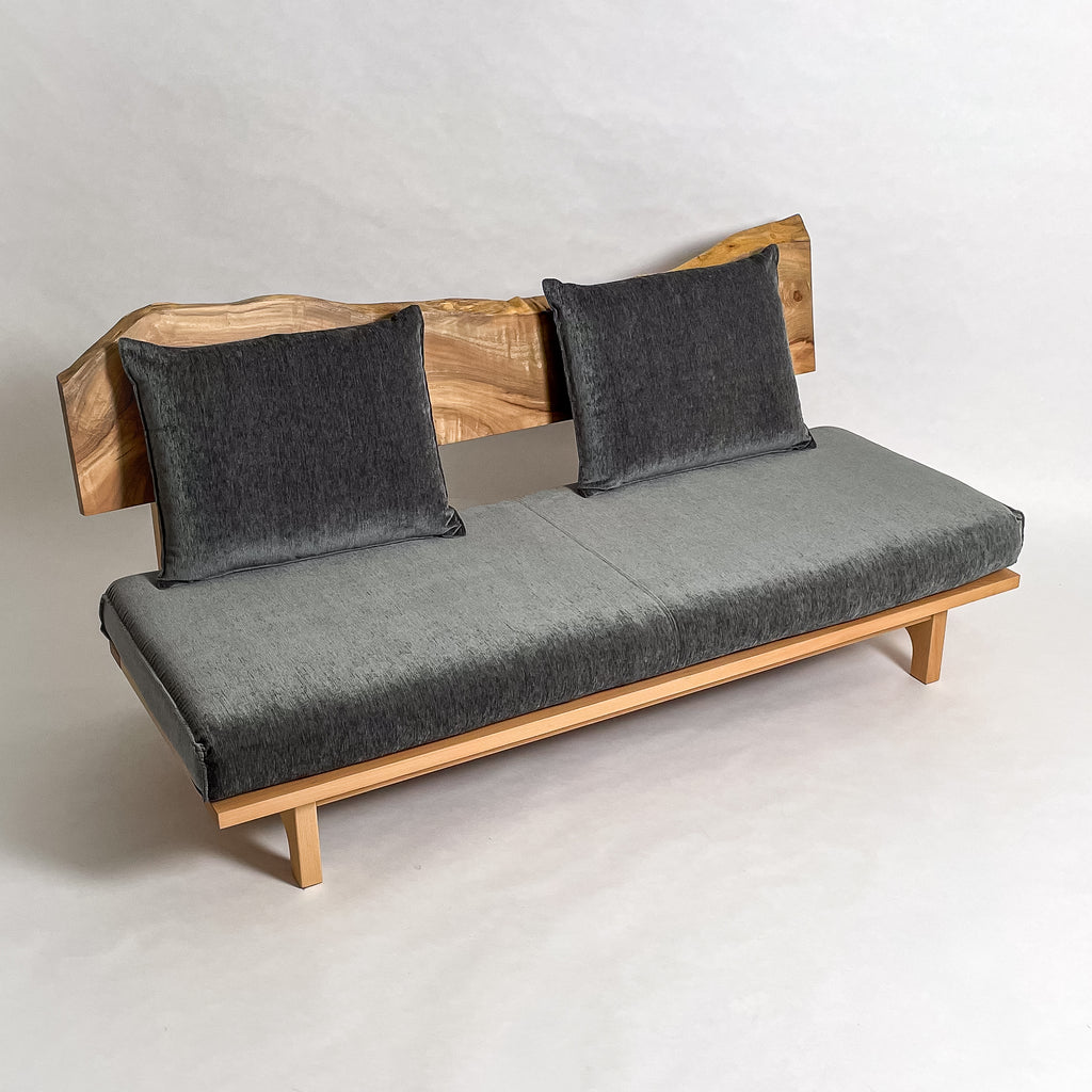 天然の楠が描く流れる木目をそのまま生かした無垢ソファです。自然な形を丁寧に整えた上質な佇まいが、毎日のくつろぎをやわらかく支えます。穏やかな木の質感が空間に落ち着きを添えます。