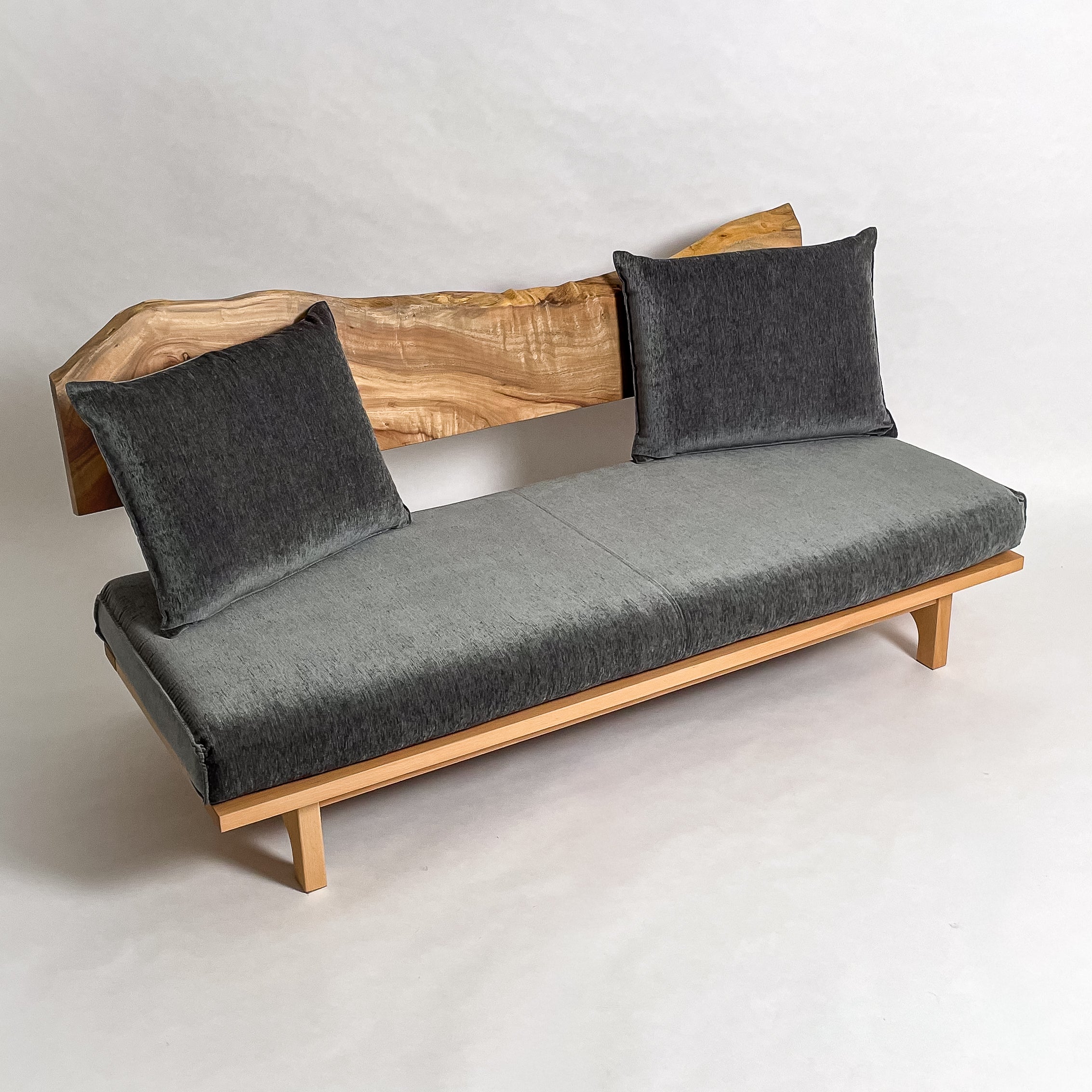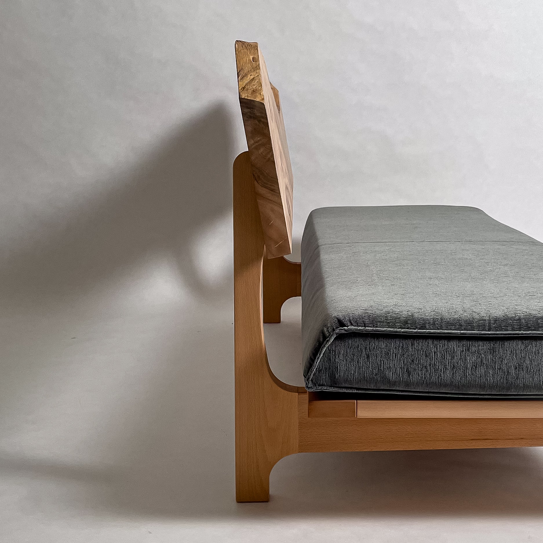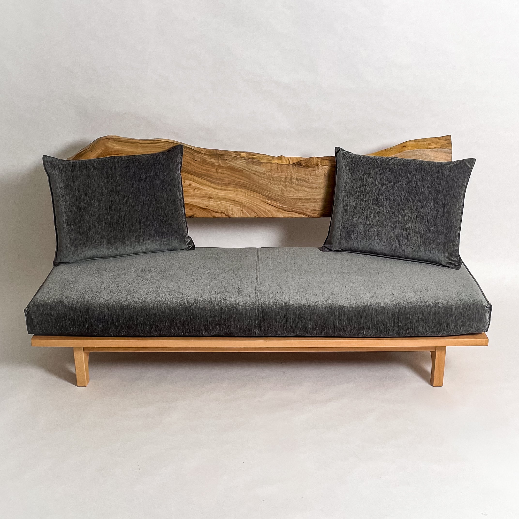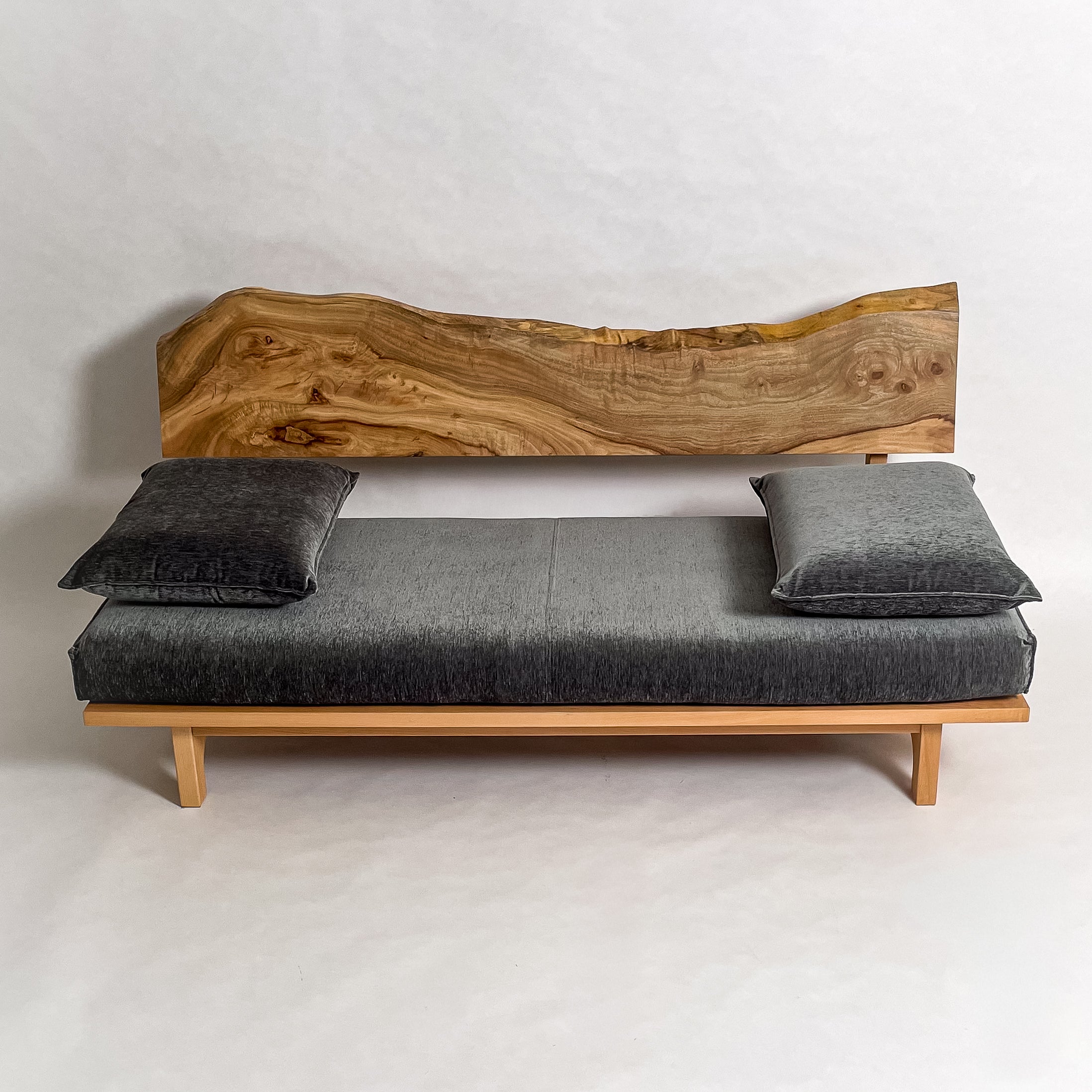 天然の楠が描く流れる木目をそのまま生かした無垢ソファです。自然な形を丁寧に整えた上質な佇まいが、毎日のくつろぎをやわらかく支えます。穏やかな木の質感が空間に落ち着きを添えます。