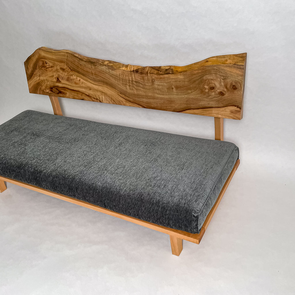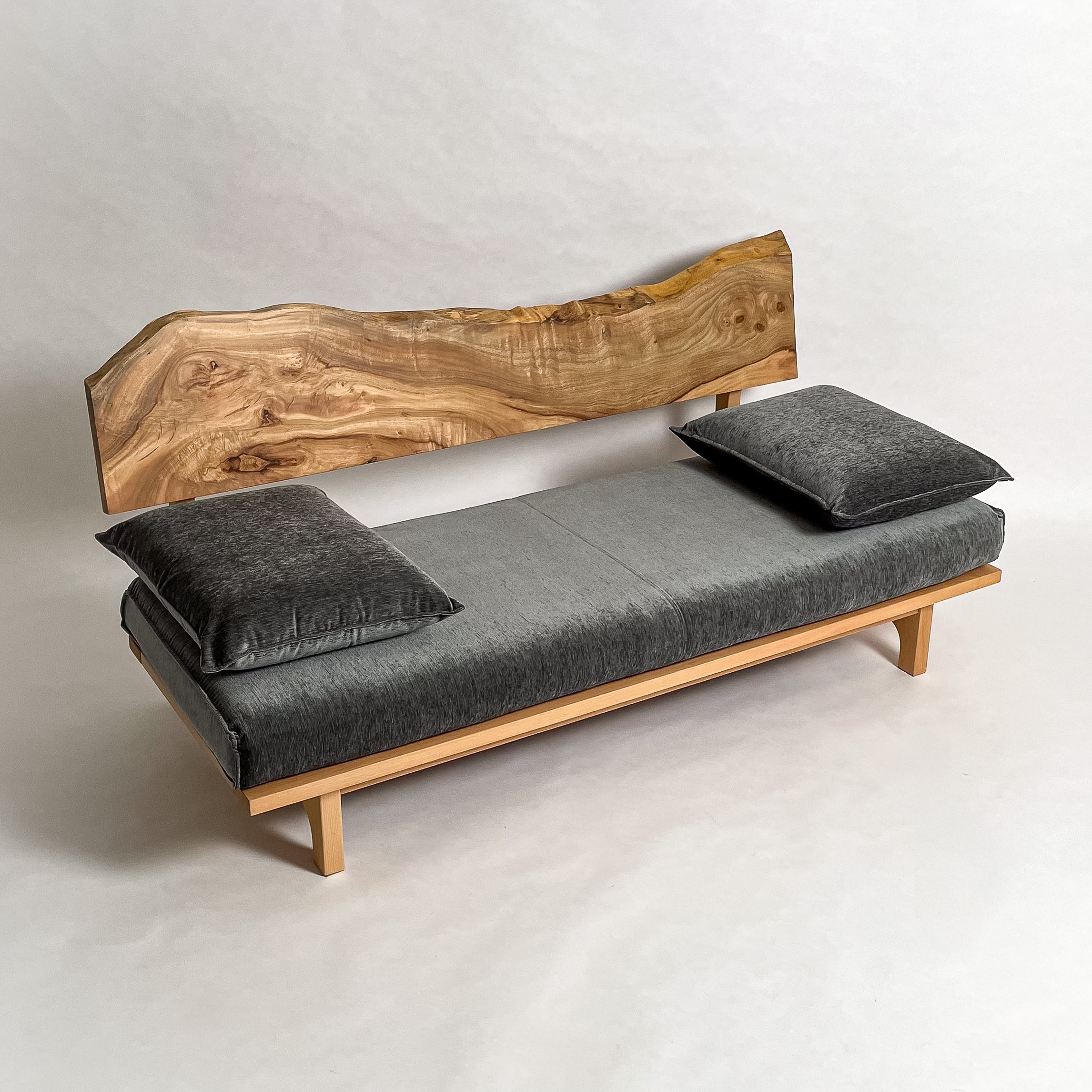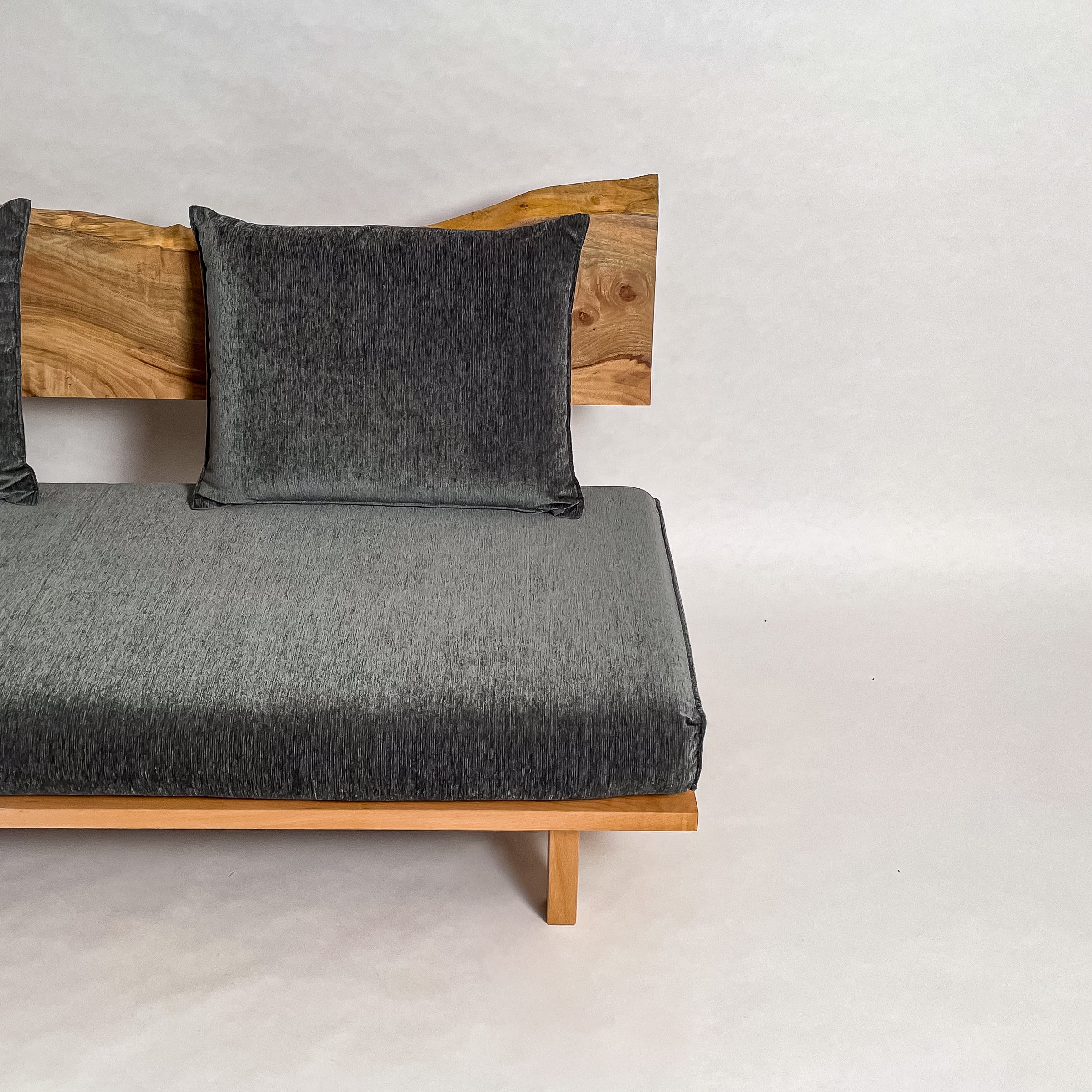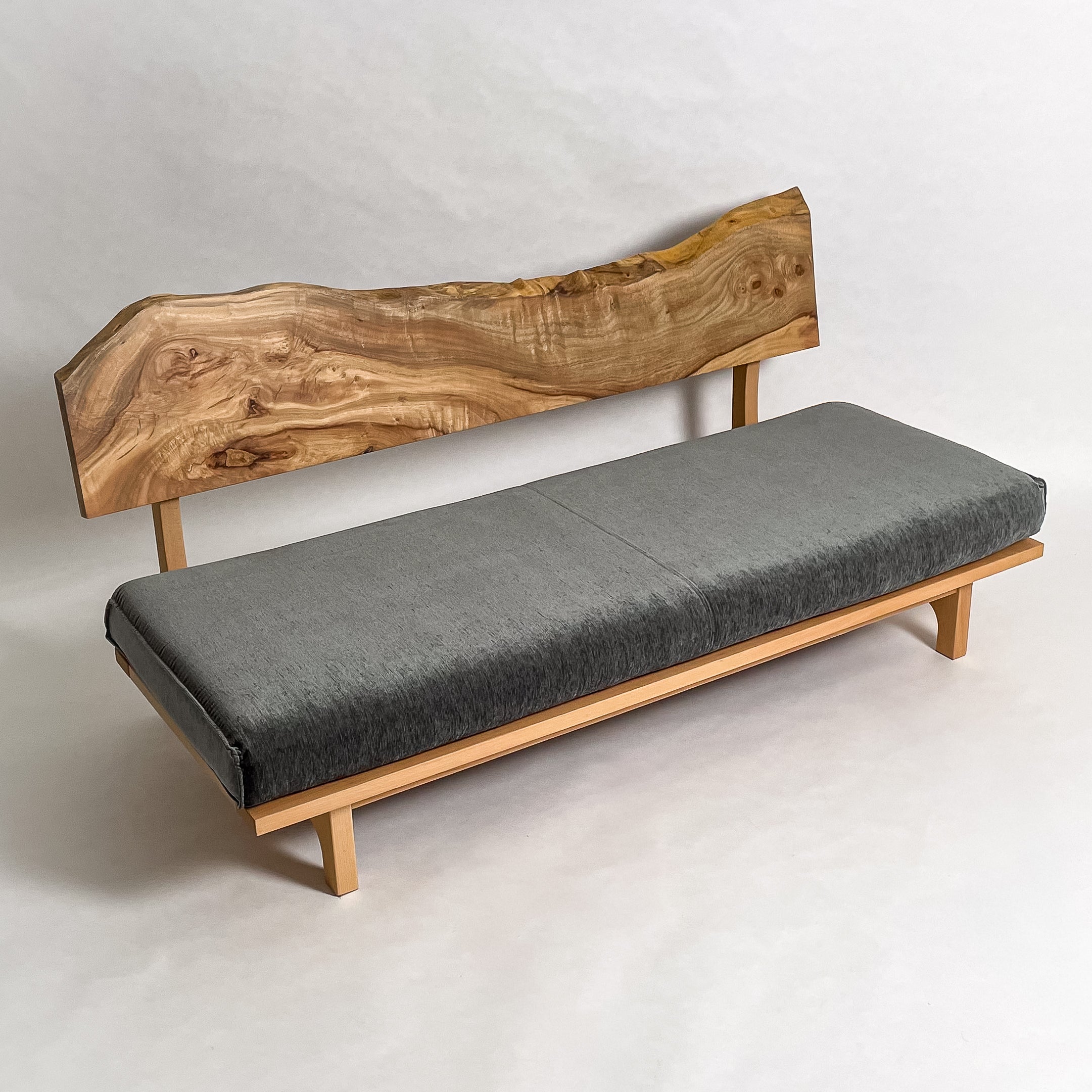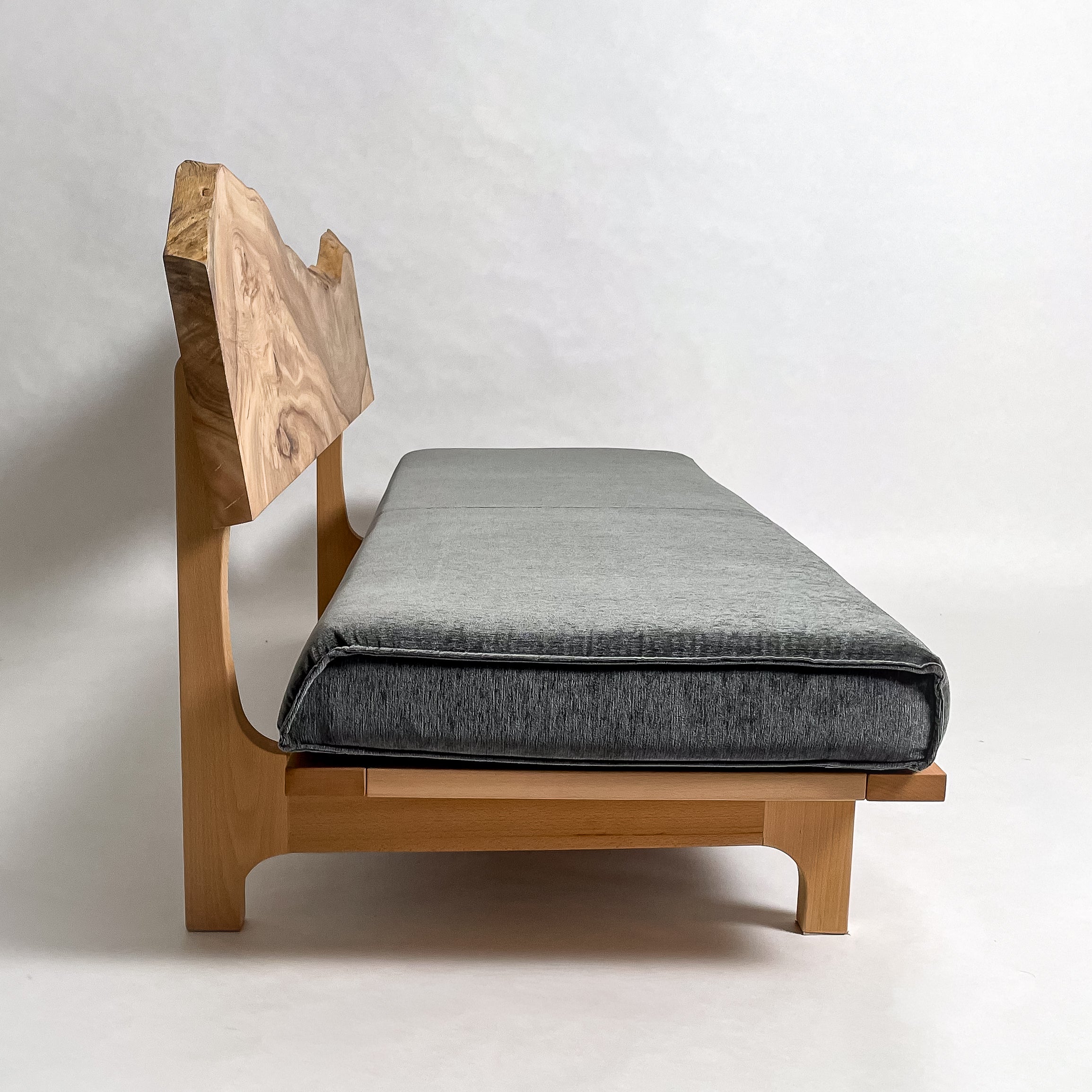 天然の楠が描く流れる木目をそのまま生かした無垢ソファです。自然な形を丁寧に整えた上質な佇まいが、毎日のくつろぎをやわらかく支えます。穏やかな木の質感が空間に落ち着きを添えます。
