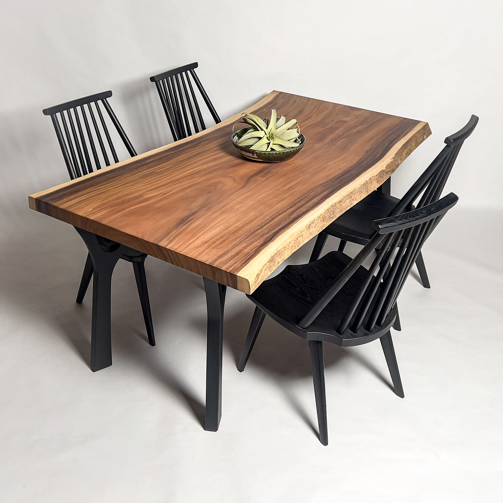 モンキーポッド特有の黒帯が穏やかに流れ、年輪が育てた層が重なり合うように広がります。風に揺られ伸びた軌跡が形となり、景色を生む一枚。自然の力を残す上品な仕上げで、日常にあたたかな存在感を添えます。