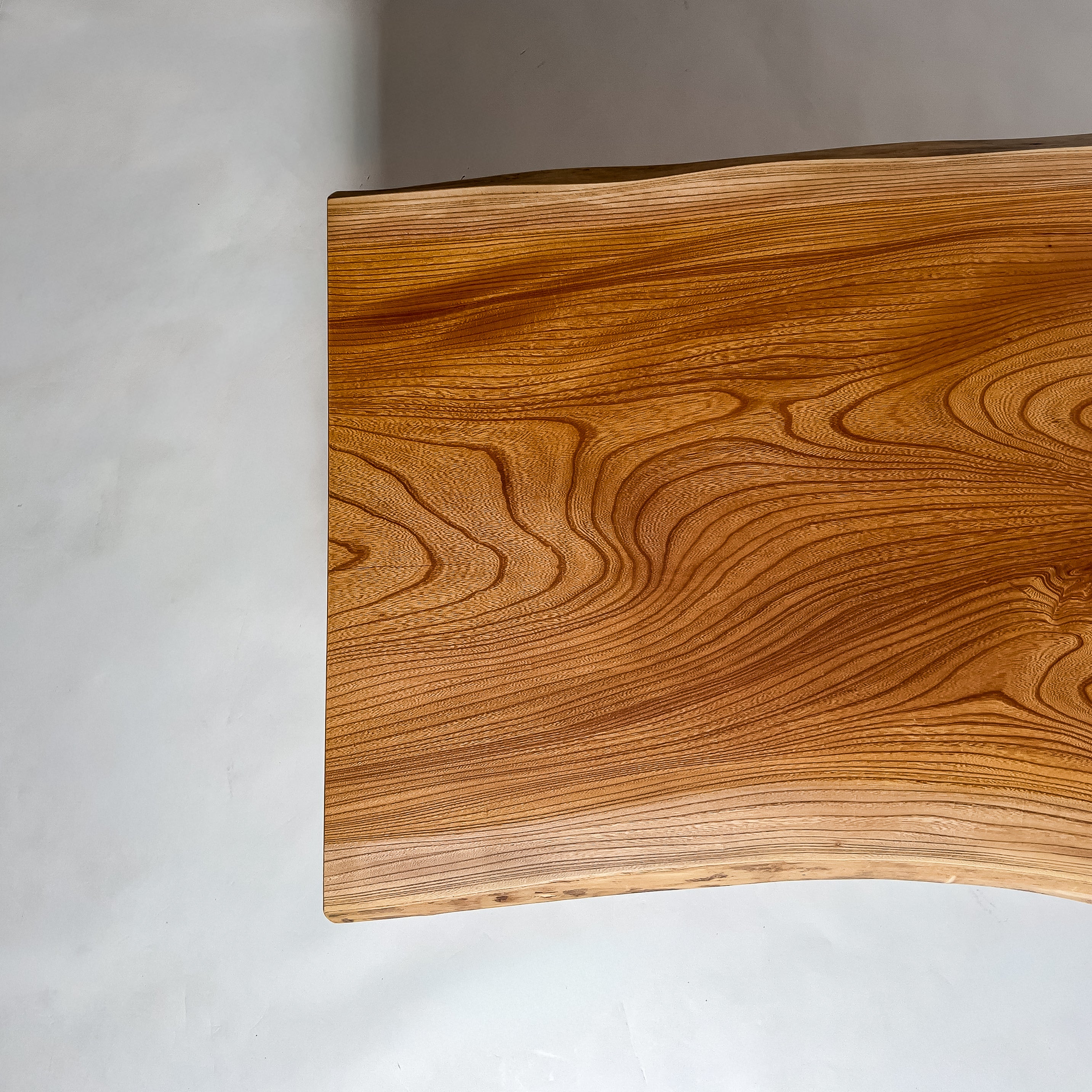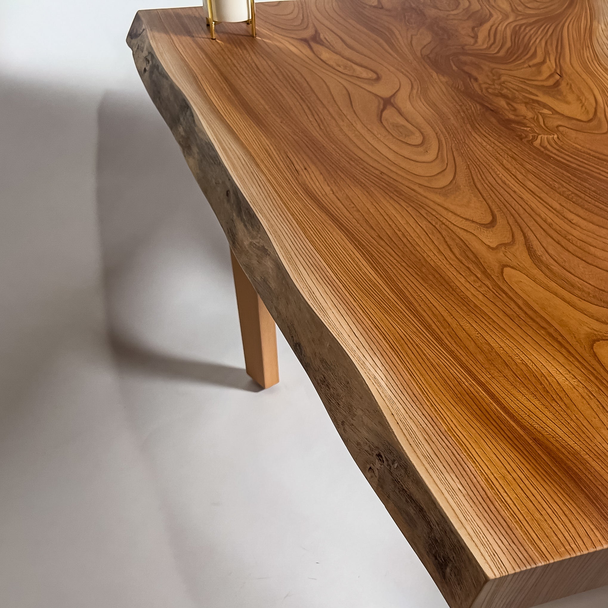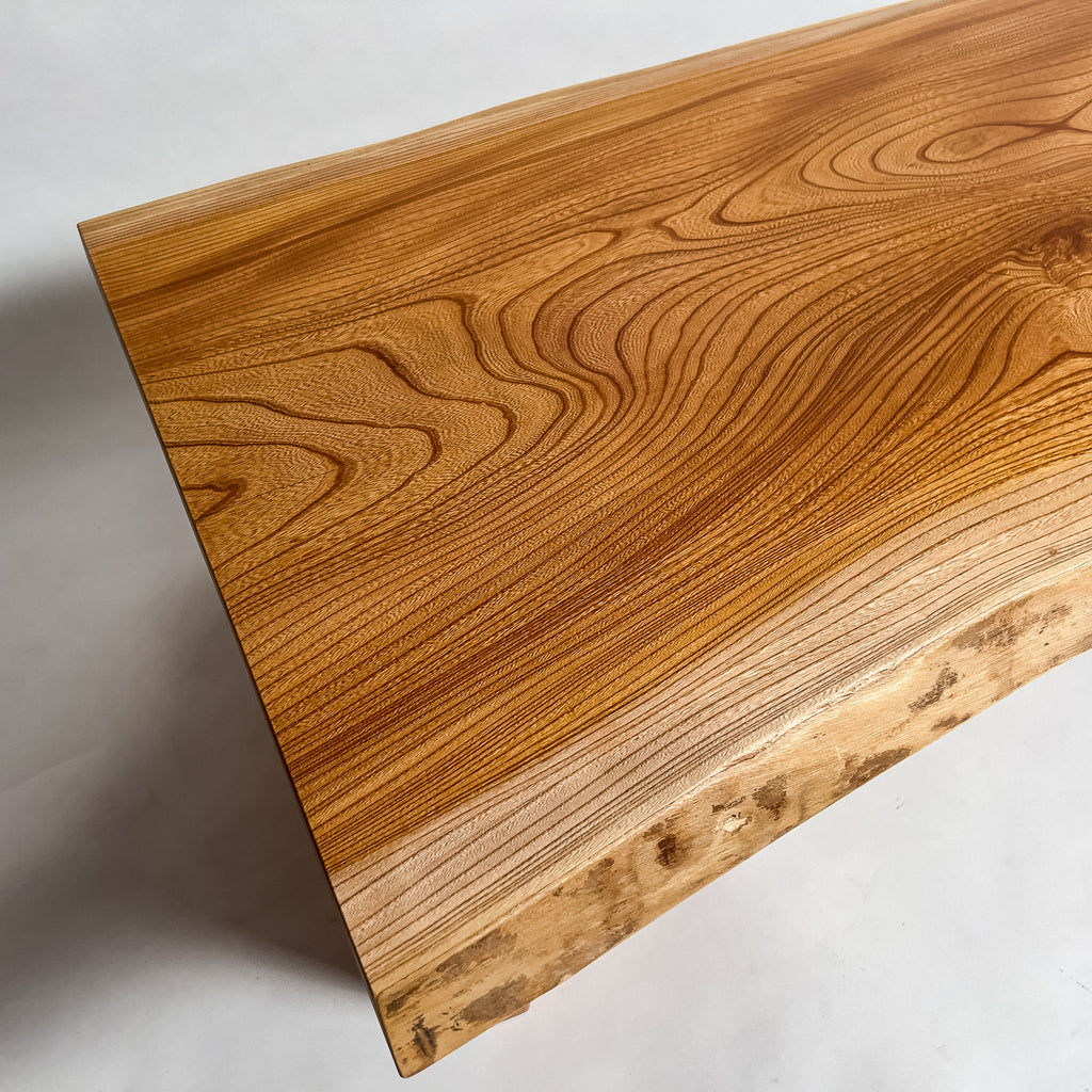 自然が生み出した不均一な表情を 読み解き、素材の持つ品格や奥行きが際立つよう、細部まで配慮した加工で完成度を高める。 一枚板単体の美しさだけでなく、置かれる空間や光の入り方までを思い描き、その場に自然と溶け込む佇まいへと仕上げる。
