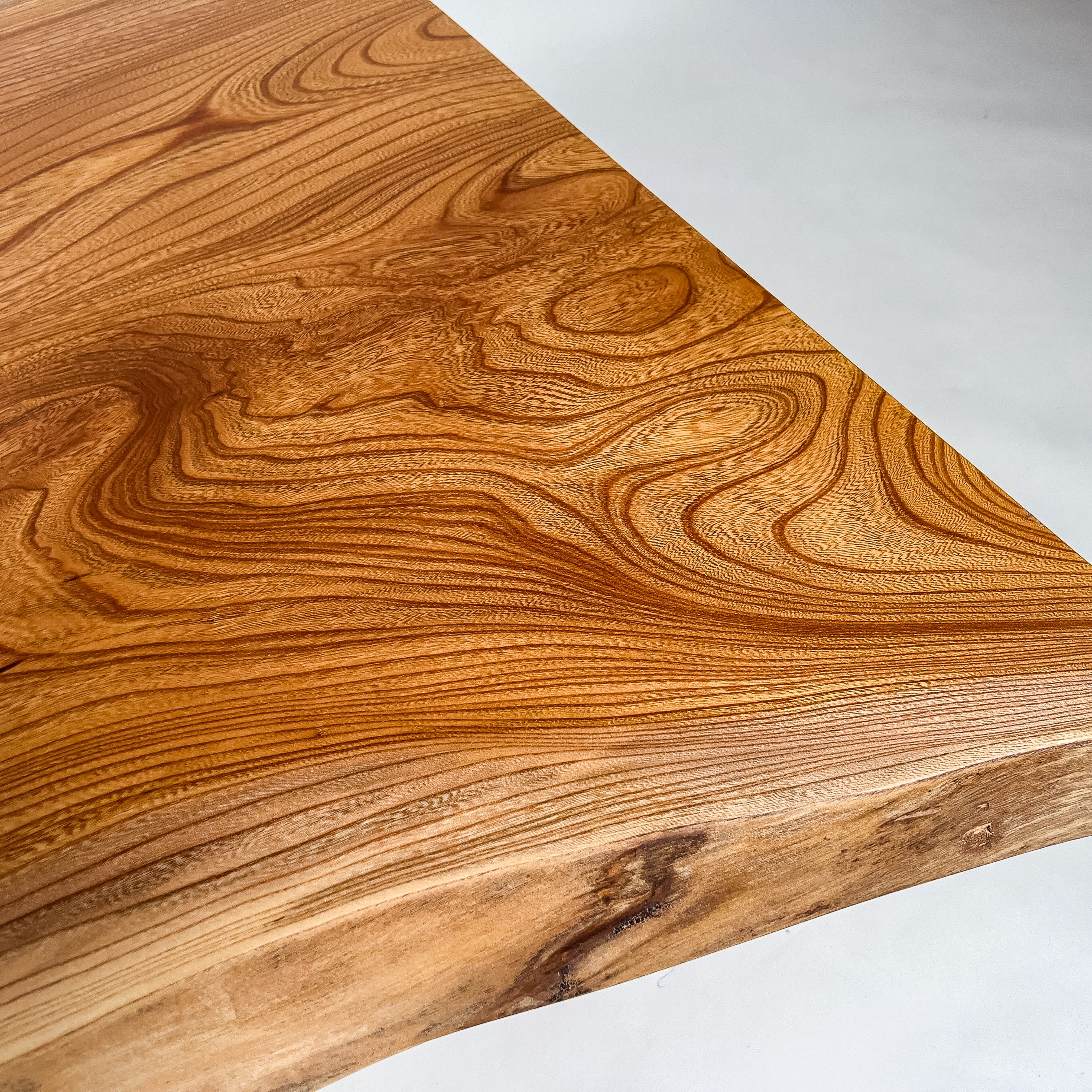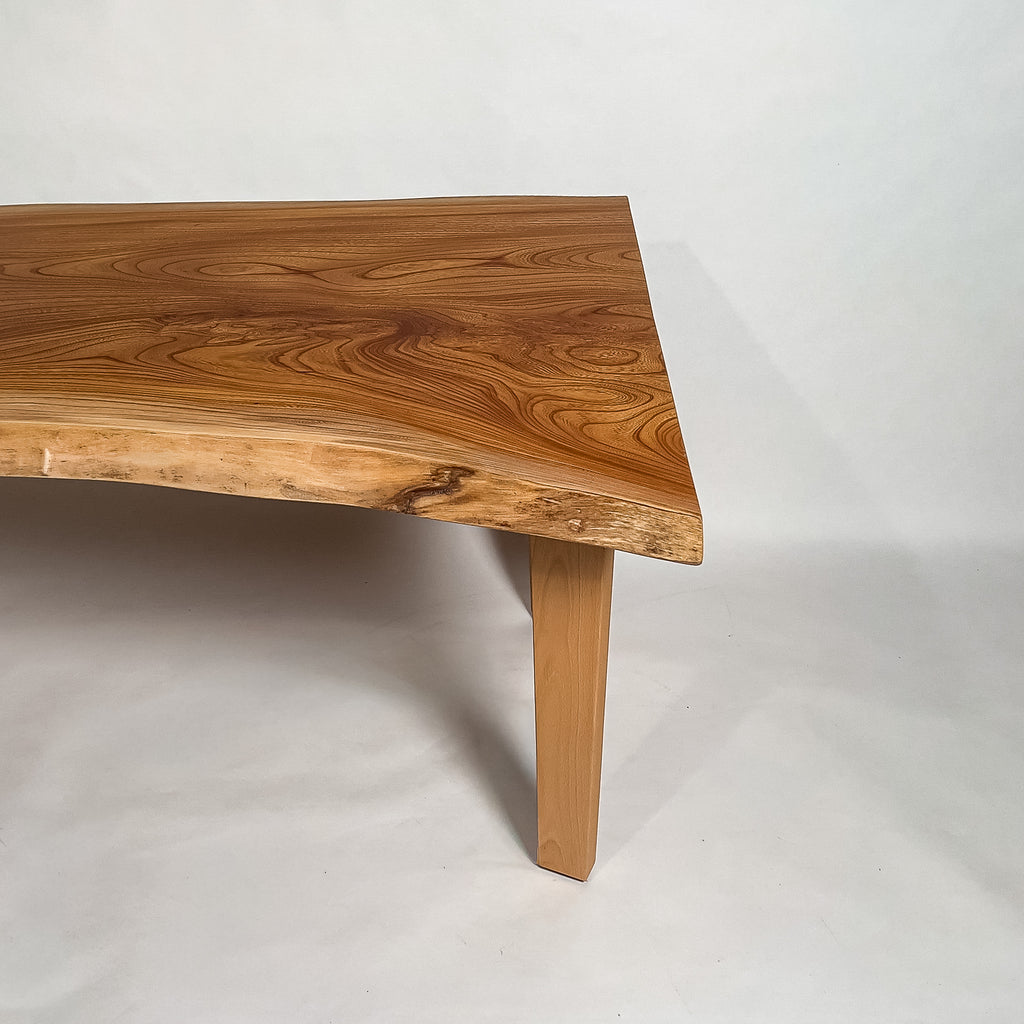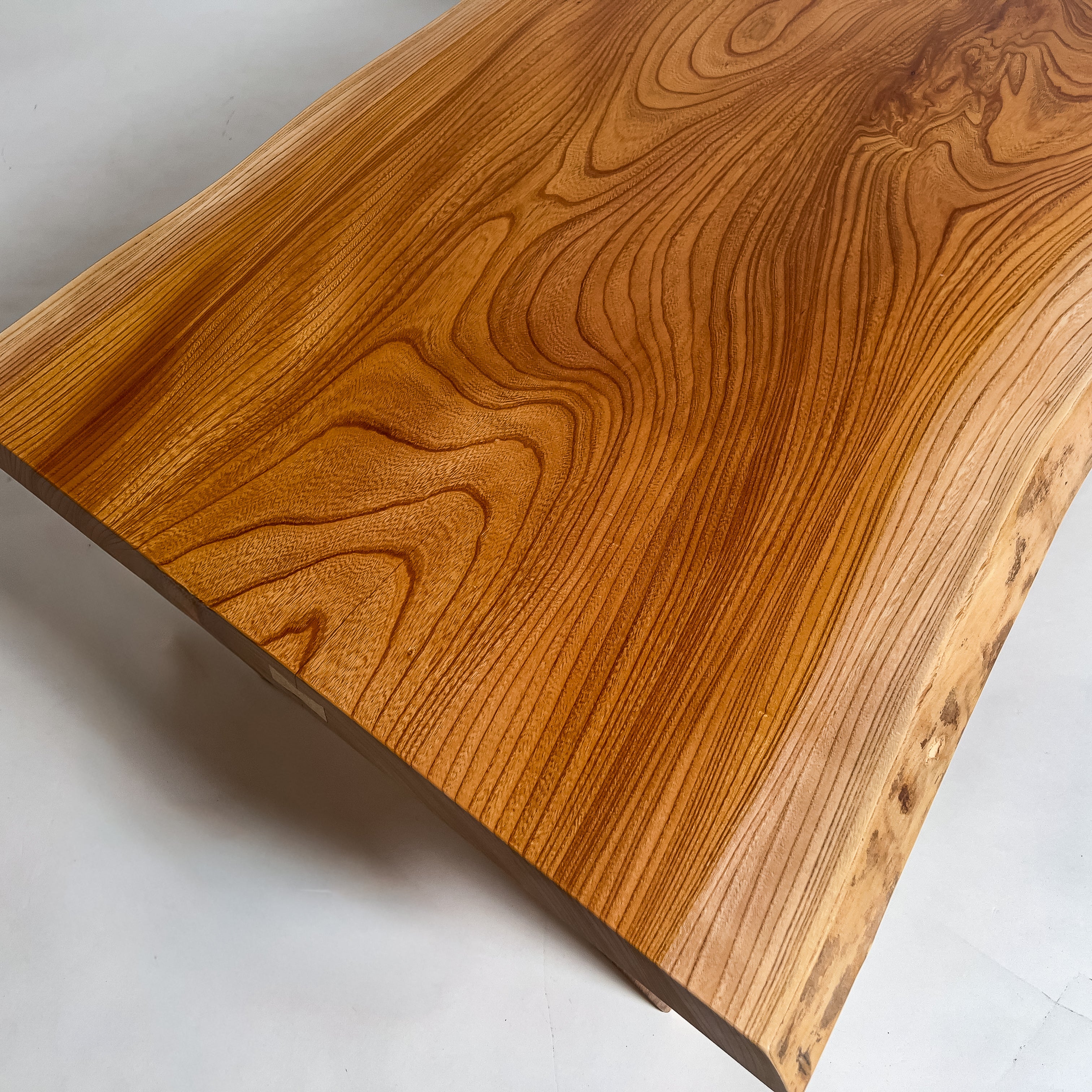 自然が生み出した不均一な表情を 読み解き、素材の持つ品格や奥行きが際立つよう、細部まで配慮した加工で完成度を高める。 一枚板単体の美しさだけでなく、置かれる空間や光の入り方までを思い描き、その場に自然と溶け込む佇まいへと仕上げる。