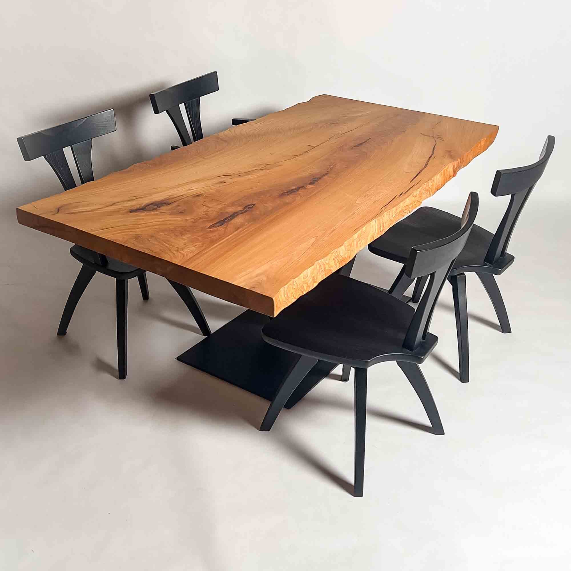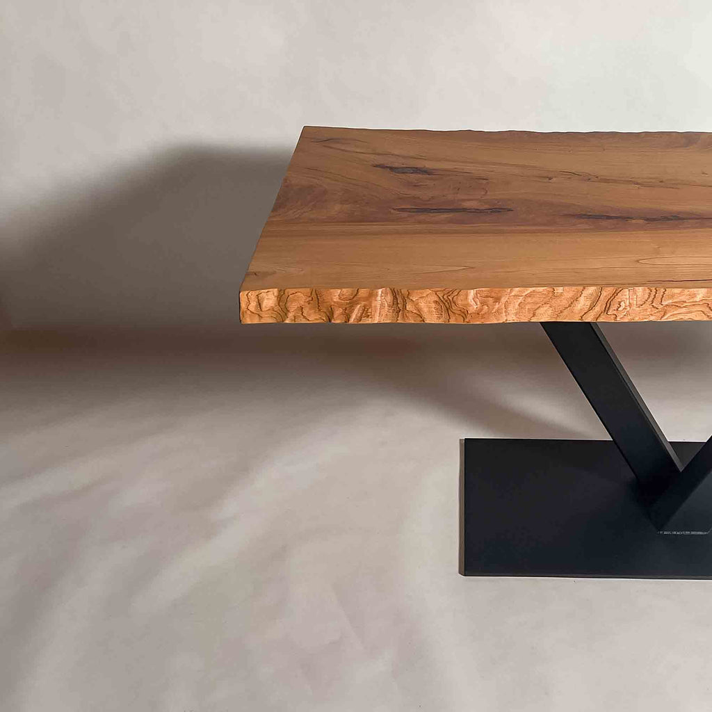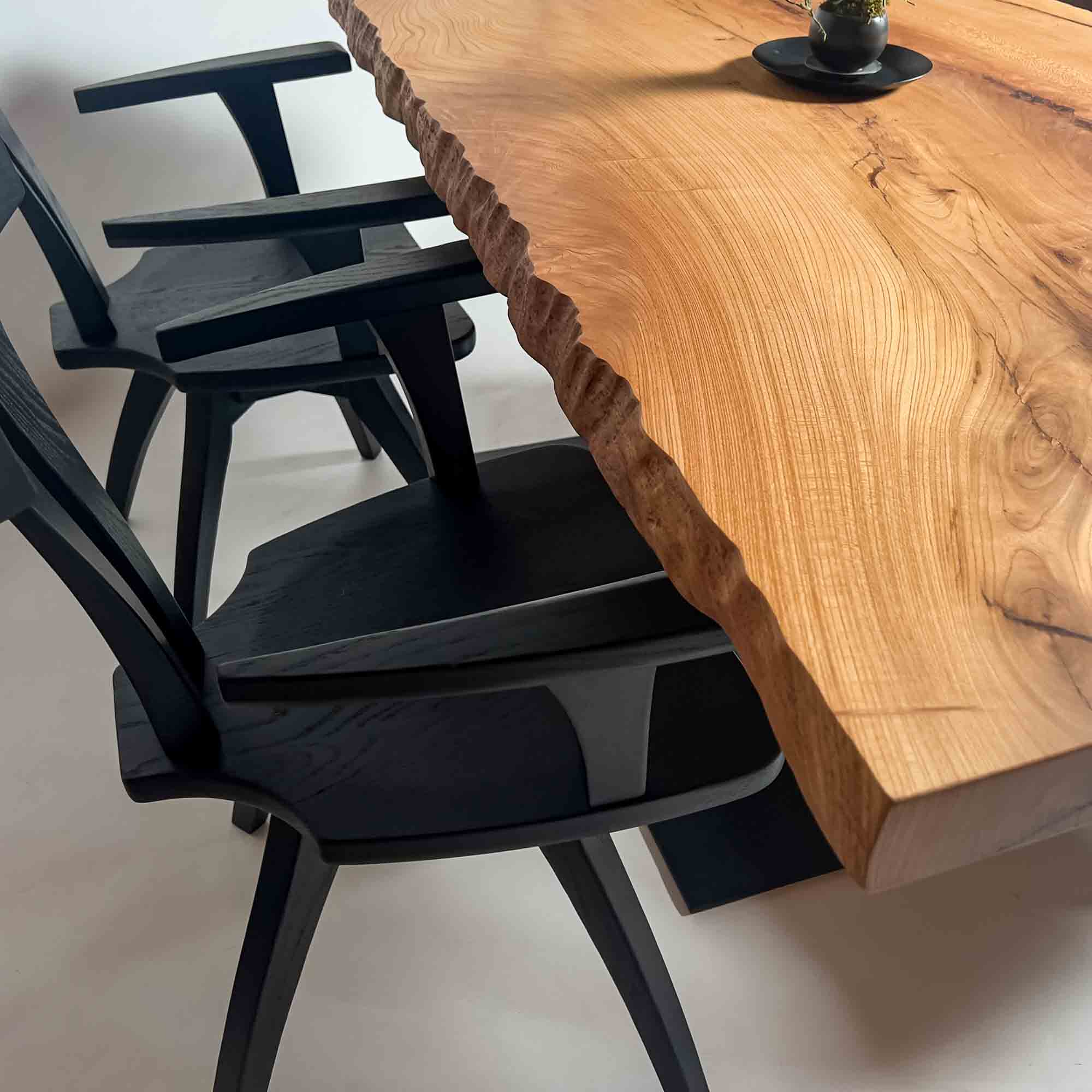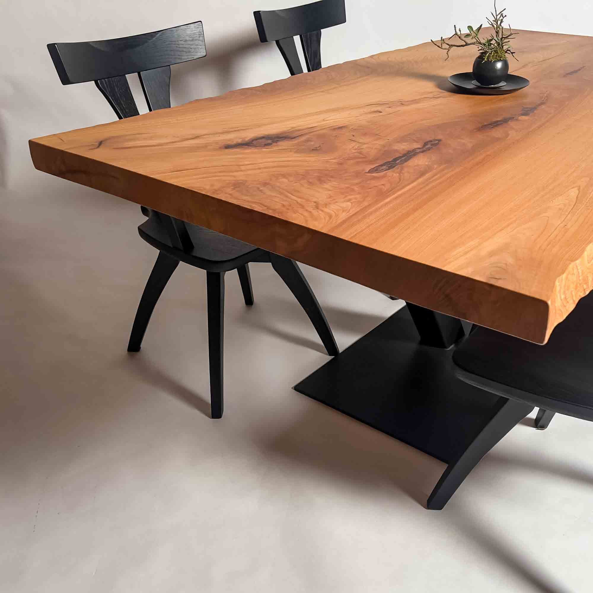 現代の空間に映えるモダンな佇まいを意識しつつ、一枚板ごとに素材感と存在感の出方を見極め、加工を行います。造形を整えすぎず、木が本来持つ表情を残すことを大切にしています。 ![]() |