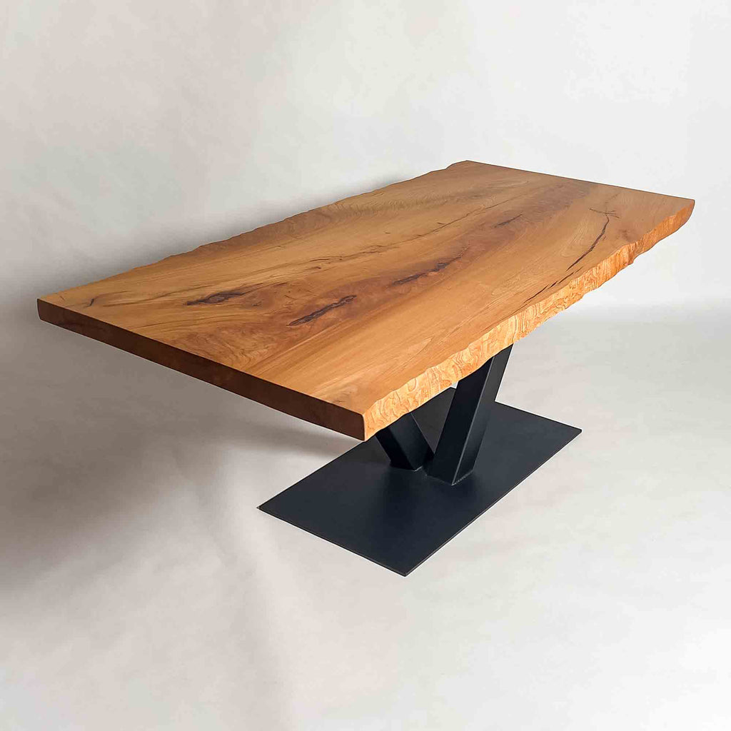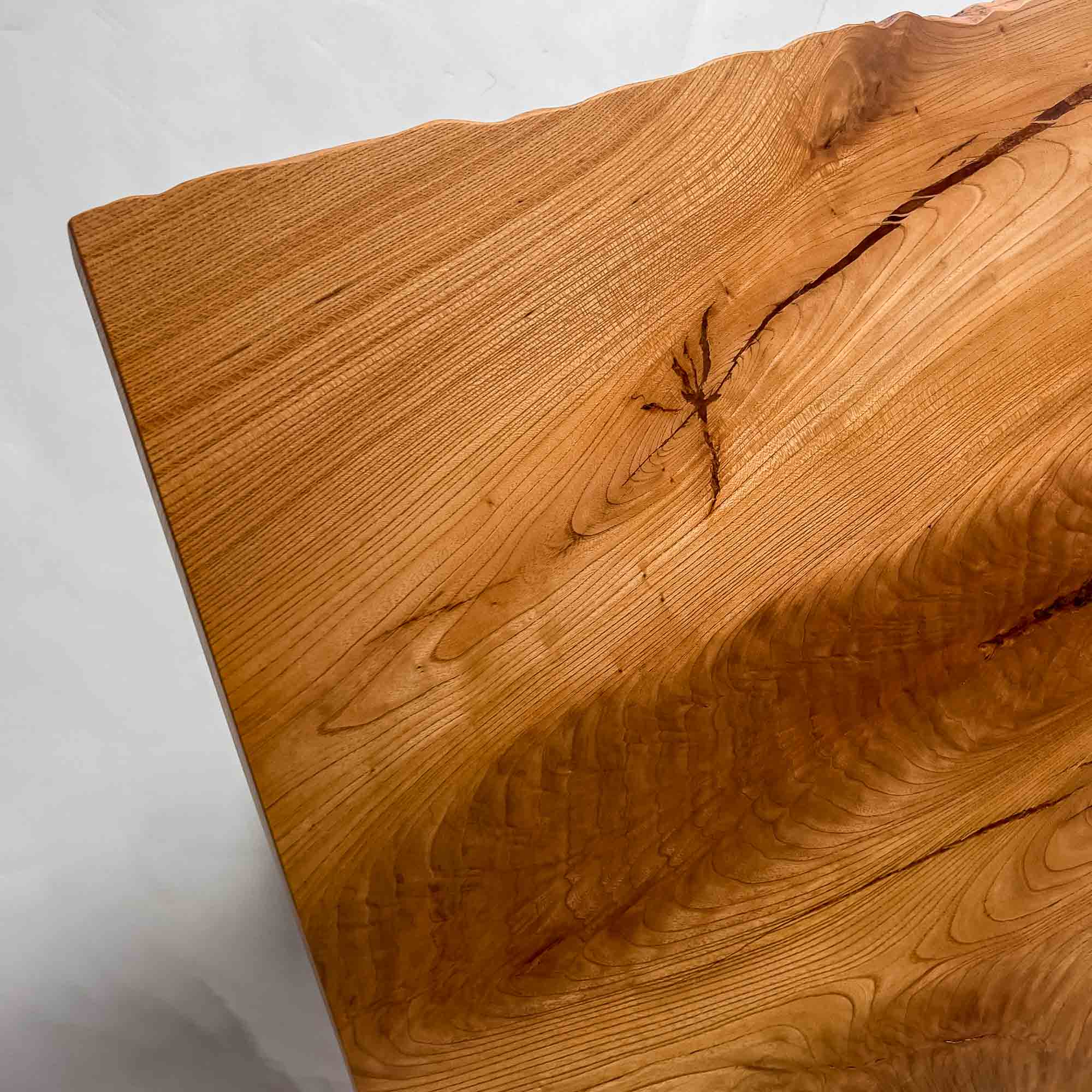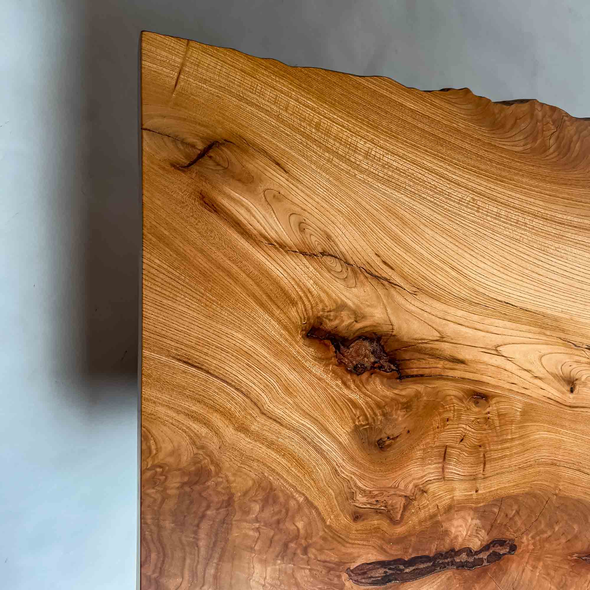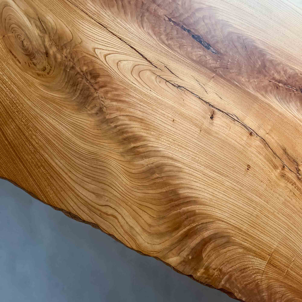 複数の板をつなぎ合わせたものとは異なり、途切れることなく続く杢目は自然の美しさをそのまま映し出します。