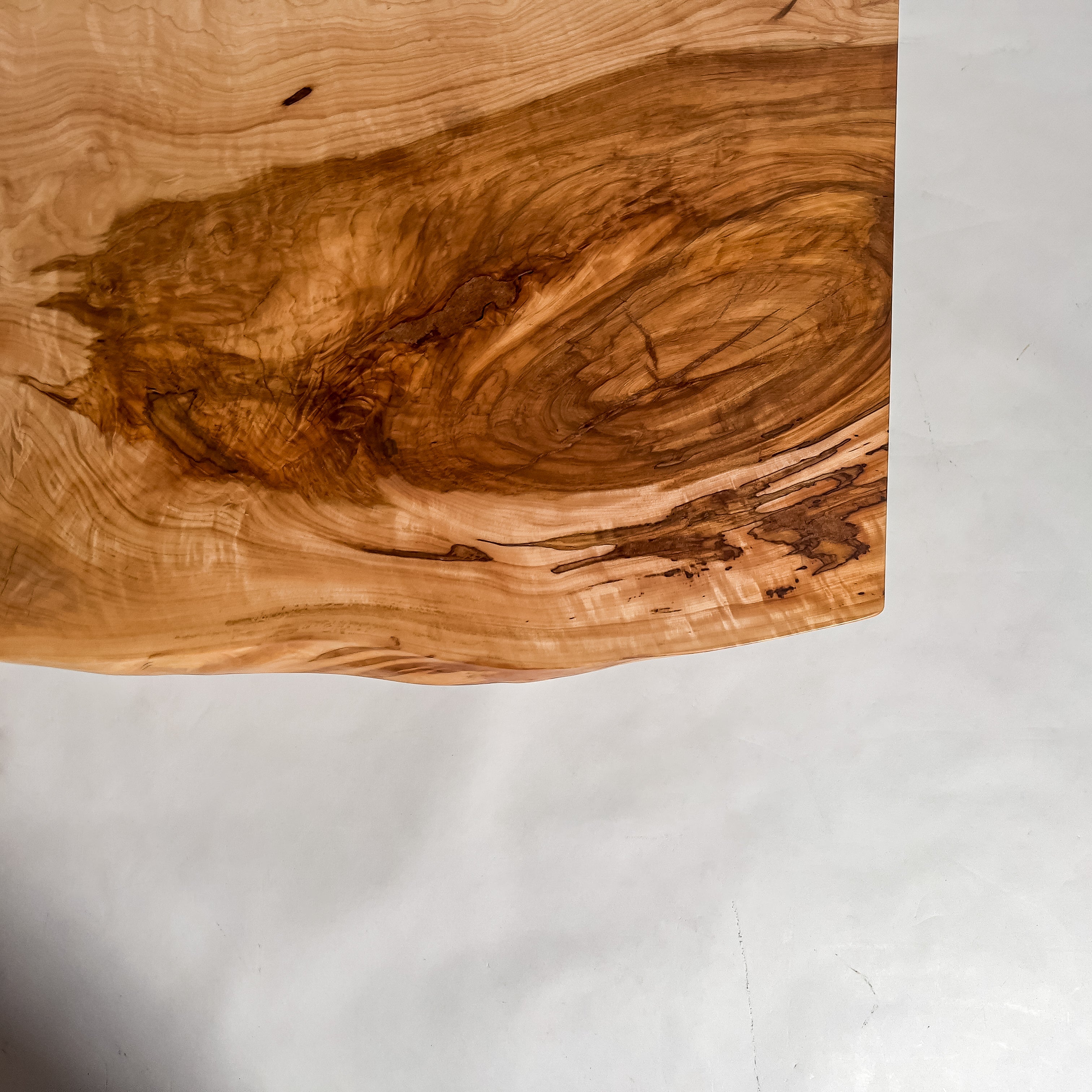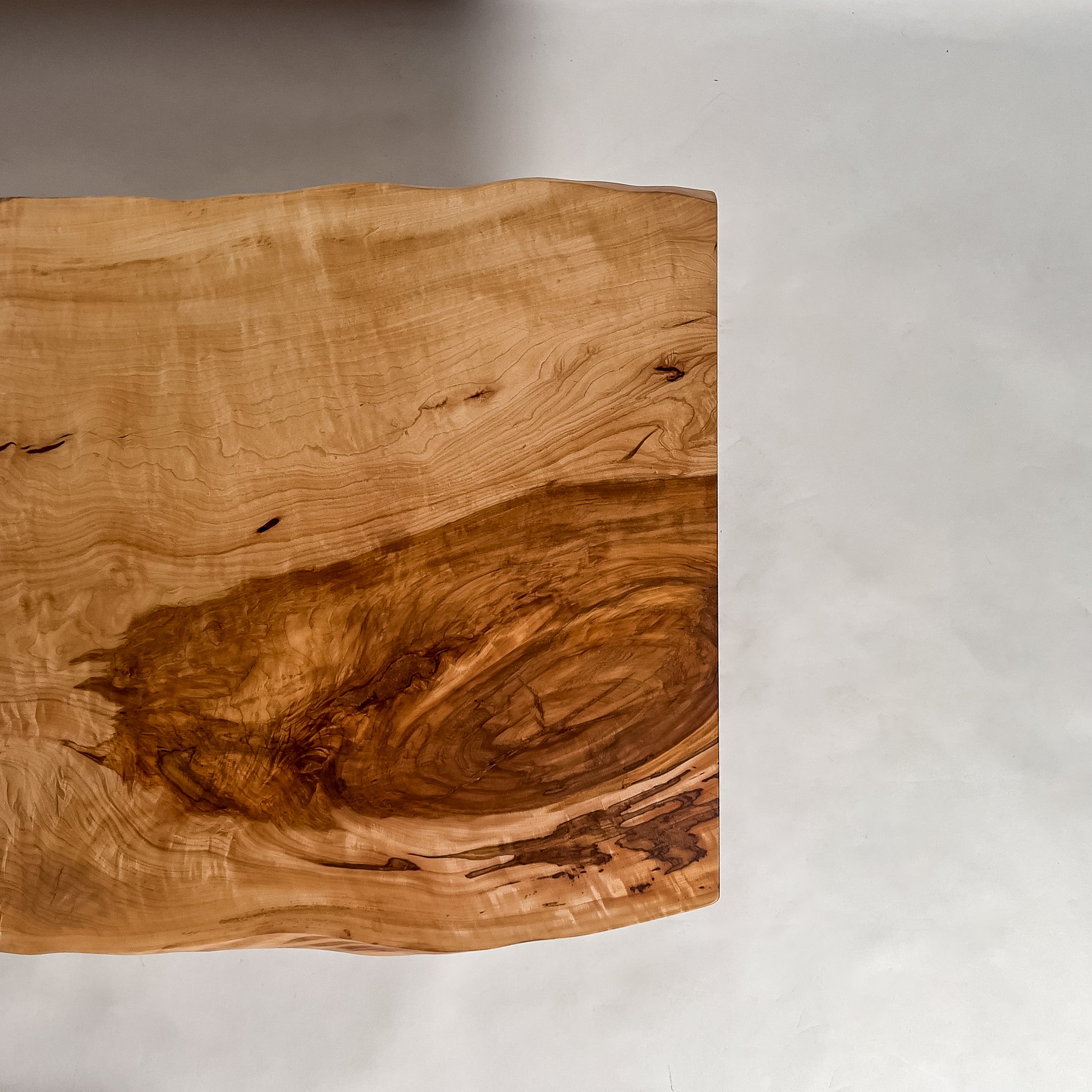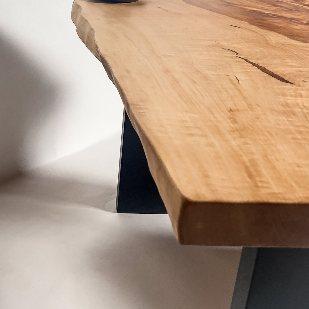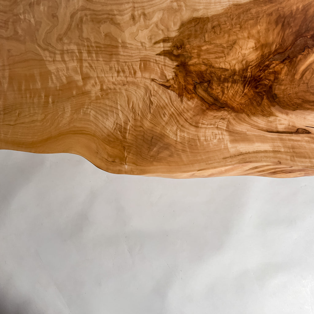 複数の板をつなぎ合わせたものとは異なり、途切れることなく続く杢目は自然の美しさをそのまま映し出します。
