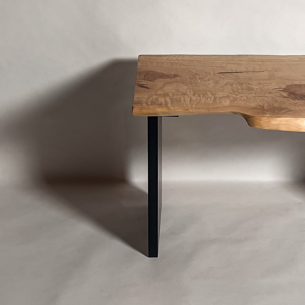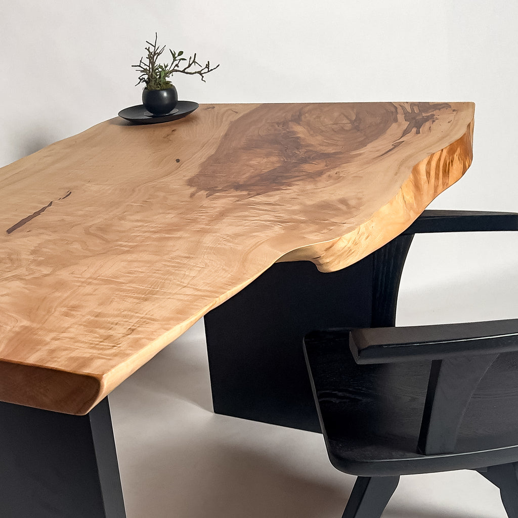 | 時代を超えて受け継がれる機能性と、現代の暮らしに寄り添うデザイン性を兼ね備えた一枚板家具の製作を手がける。 | 現代の空間に映えるモダンなデザイン性を取り入れながら、一枚板の持つ素材感と存在感を活かした加工・製作を行う。 | |