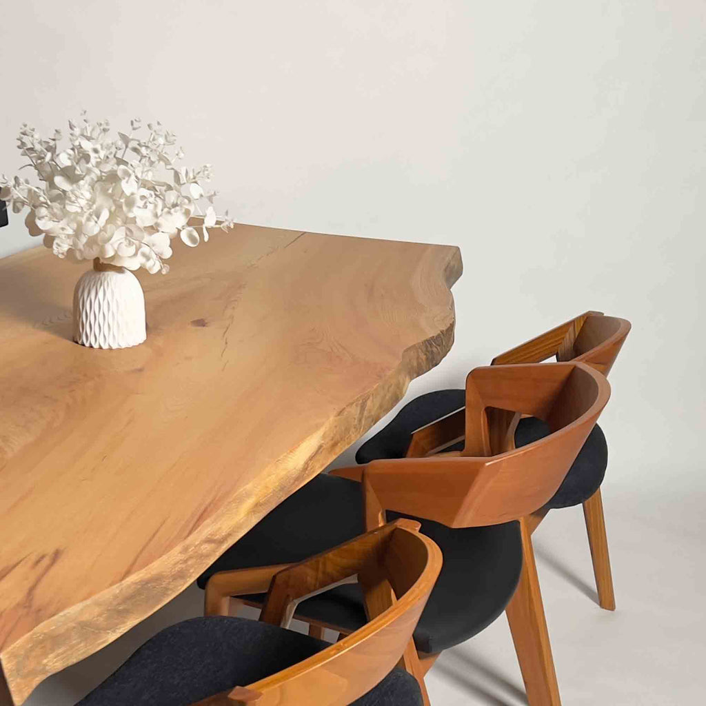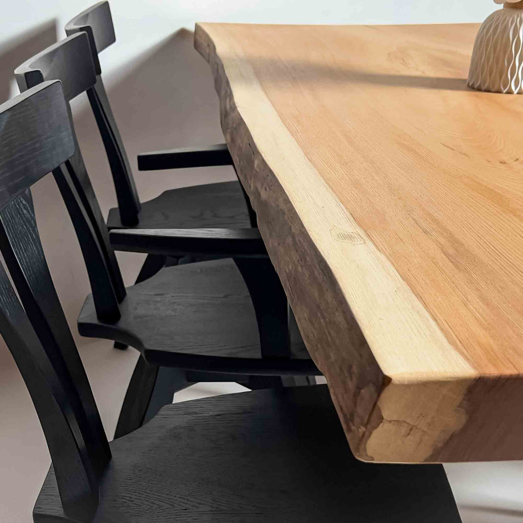 | 時代を超えて受け継がれる機能性と、現代の暮らしに寄り添うデザイン性を兼ね備えた一枚板家具の製作を手がける。 | 現代の空間に映えるモダンなデザイン性を取り入れながら、一枚板の持つ素材感と存在感を活かした加工・製作を行う。 | |