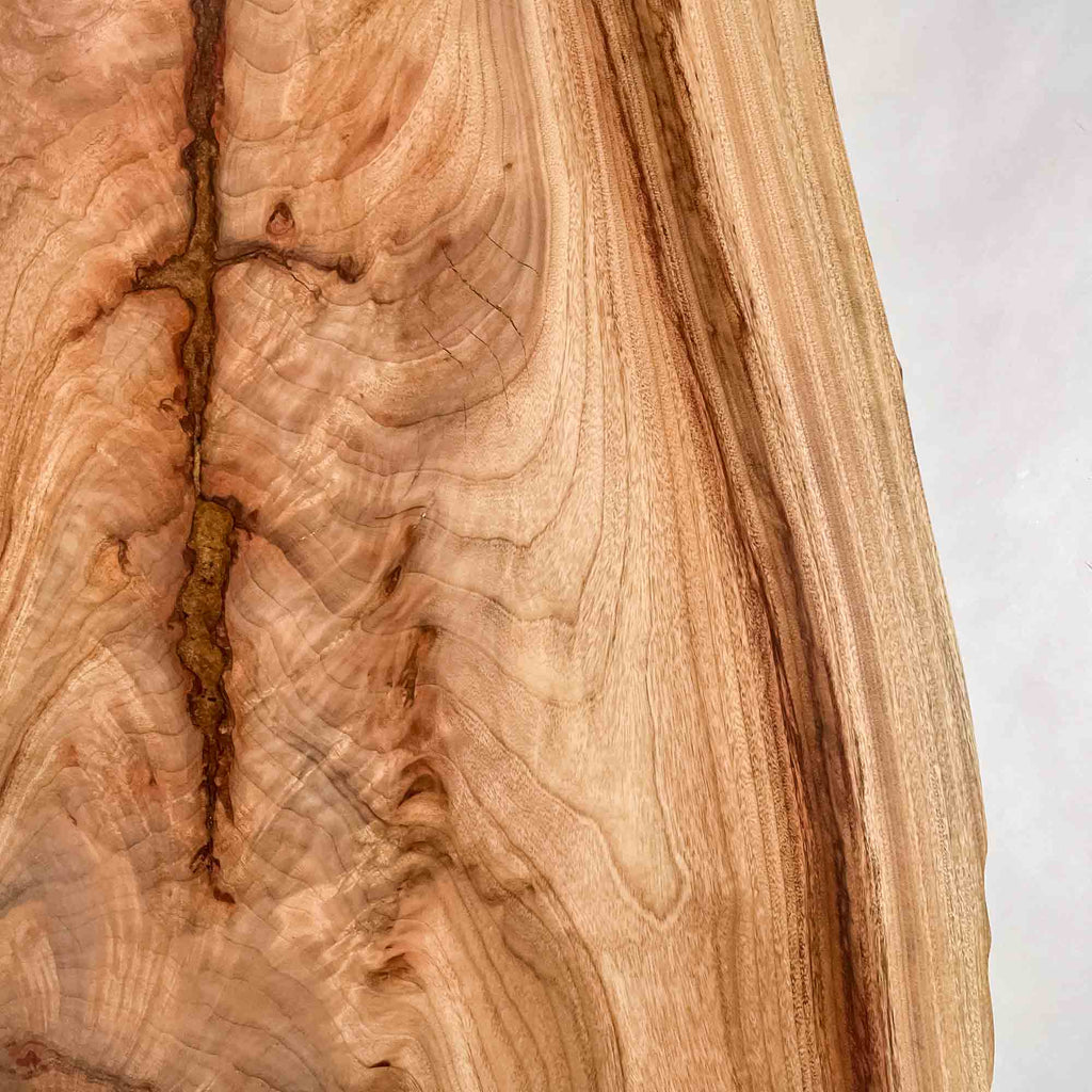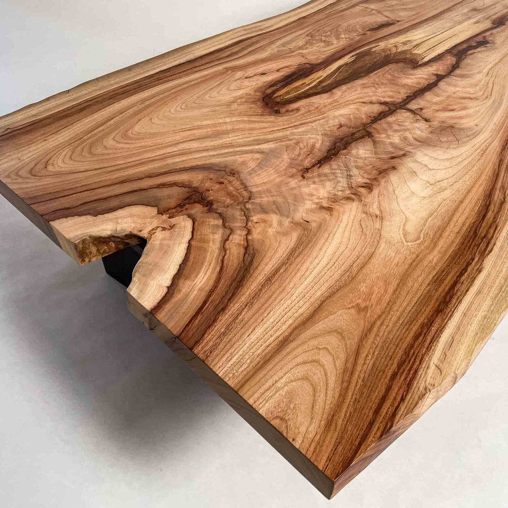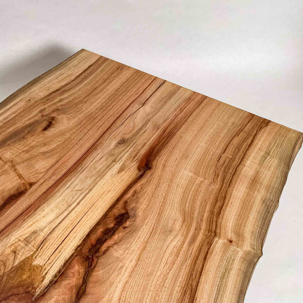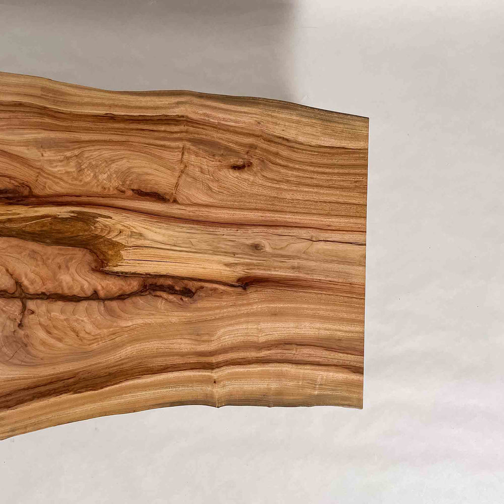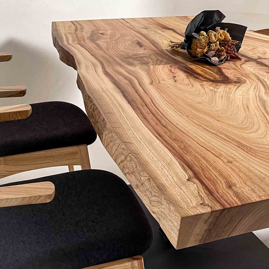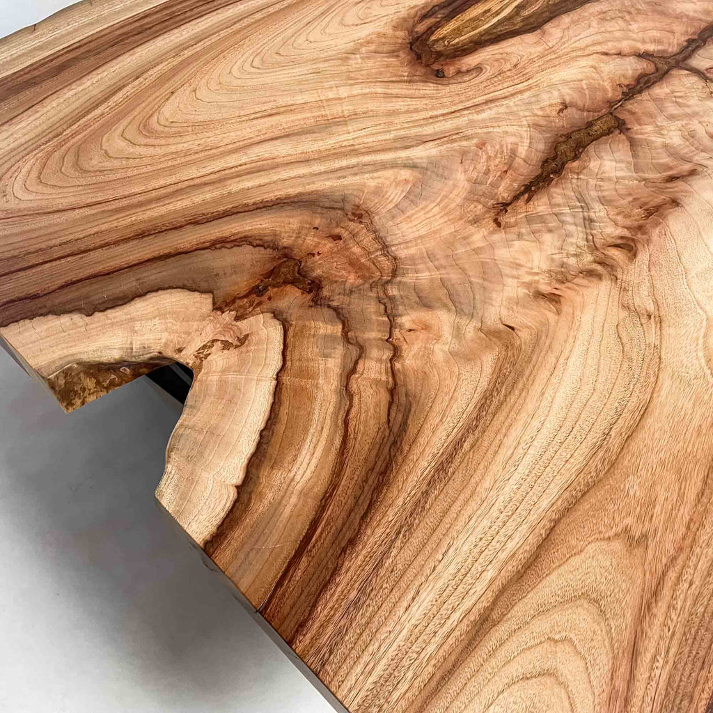 複数の板をつなぎ合わせたものとは異なり、途切れることなく続く杢目は自然の美しさをそのまま映し出します。