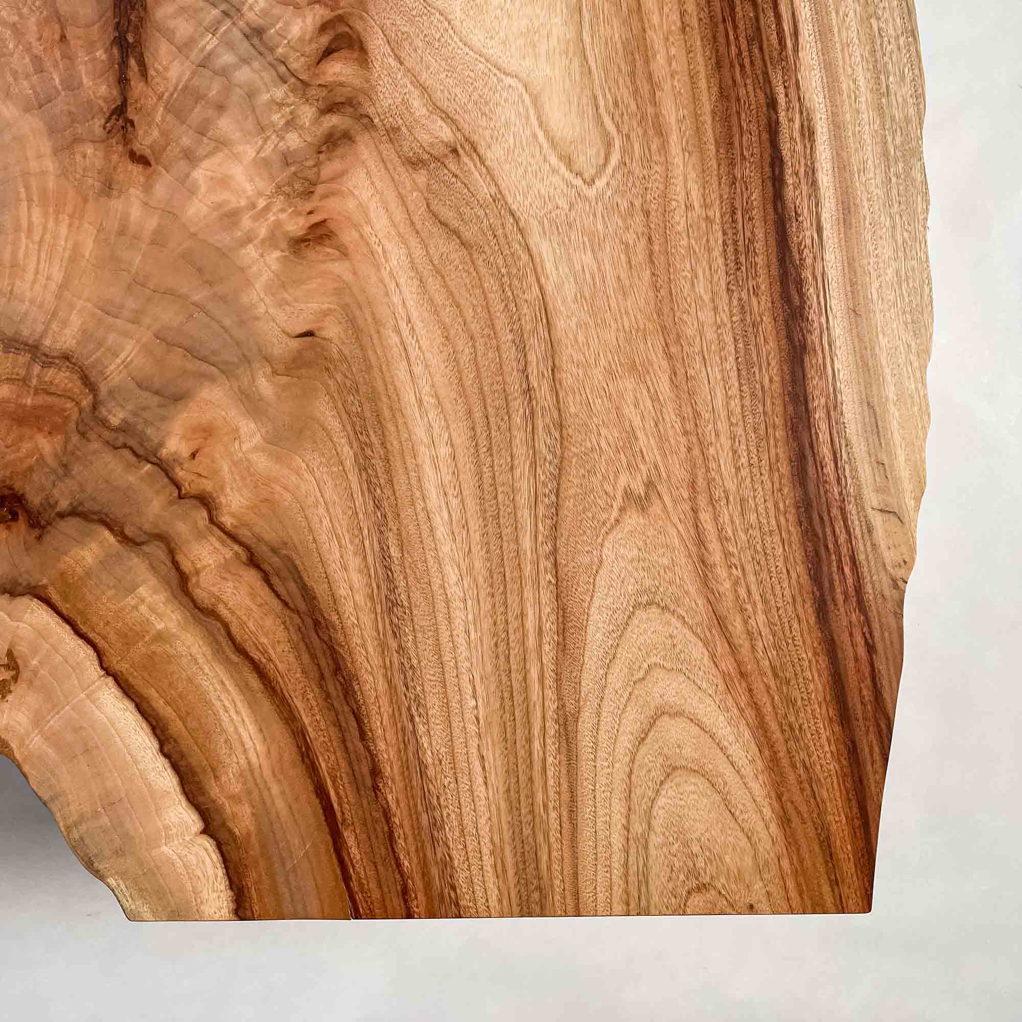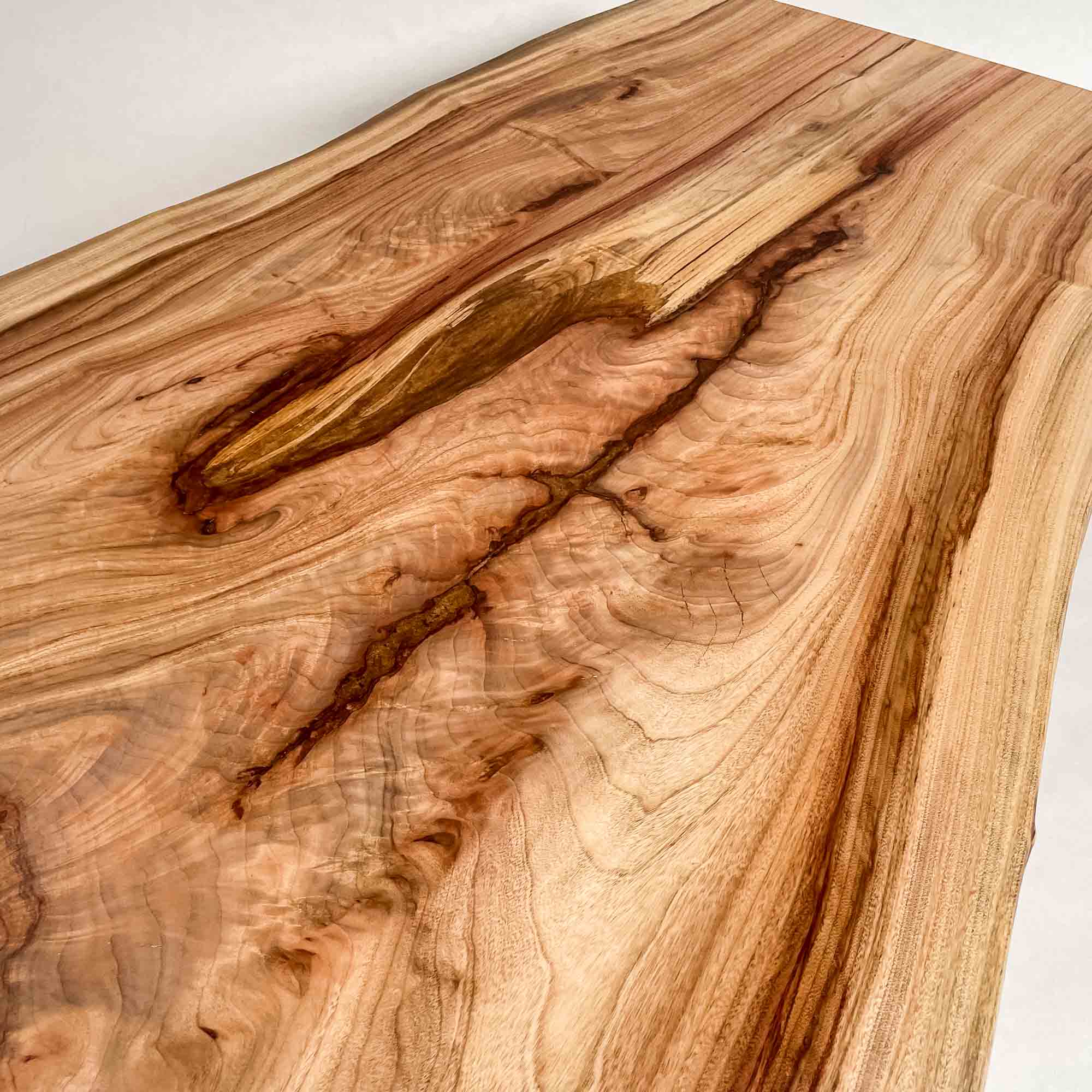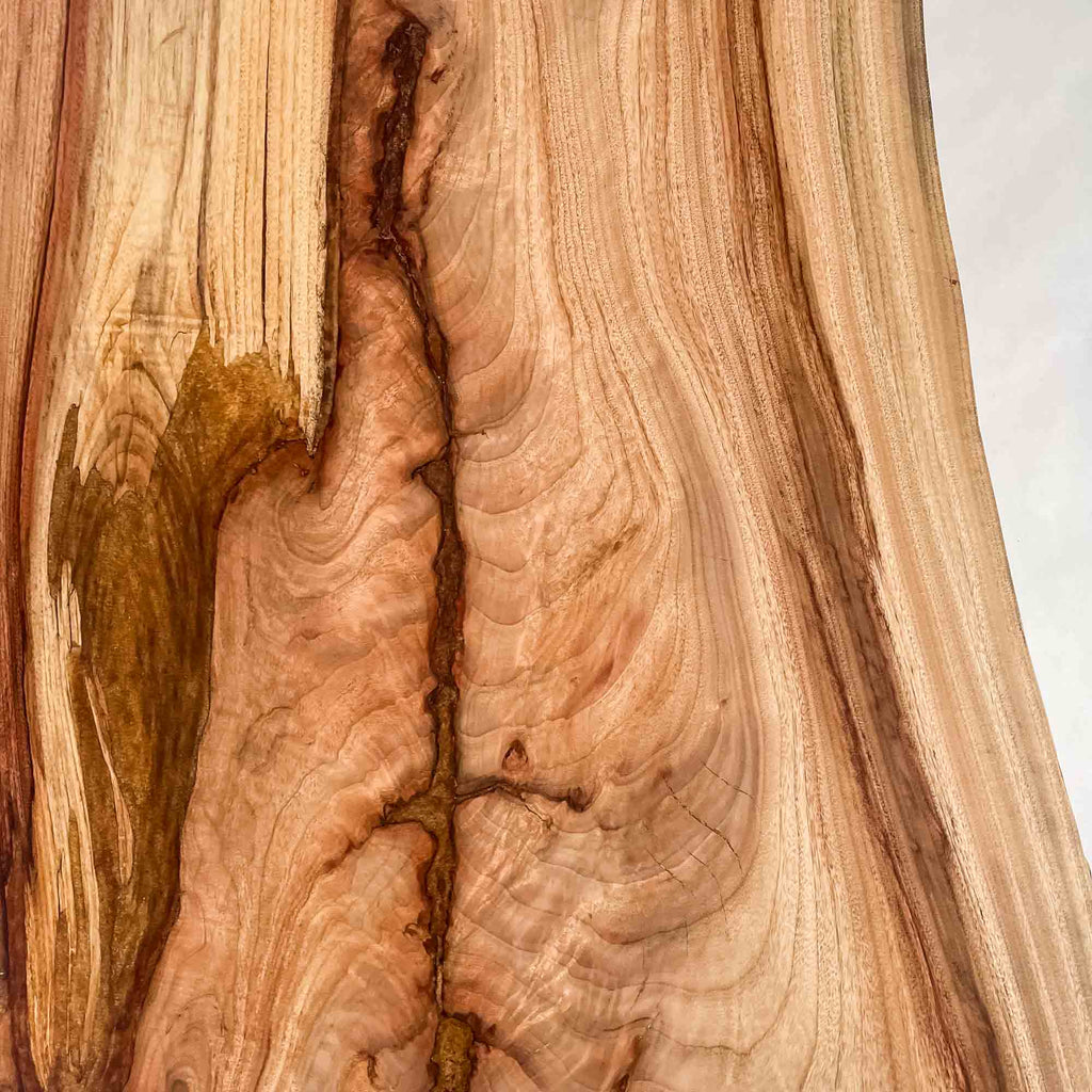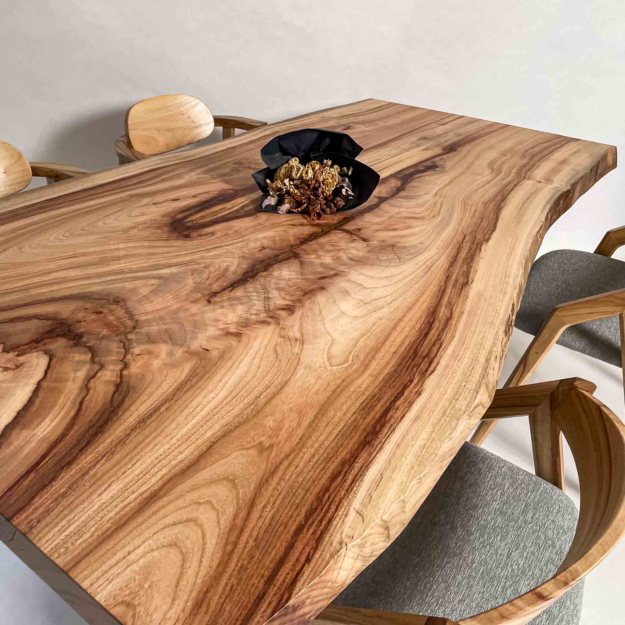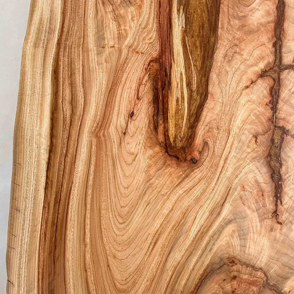複数の板をつなぎ合わせたものとは異なり、途切れることなく続く杢目は自然の美しさをそのまま映し出します。