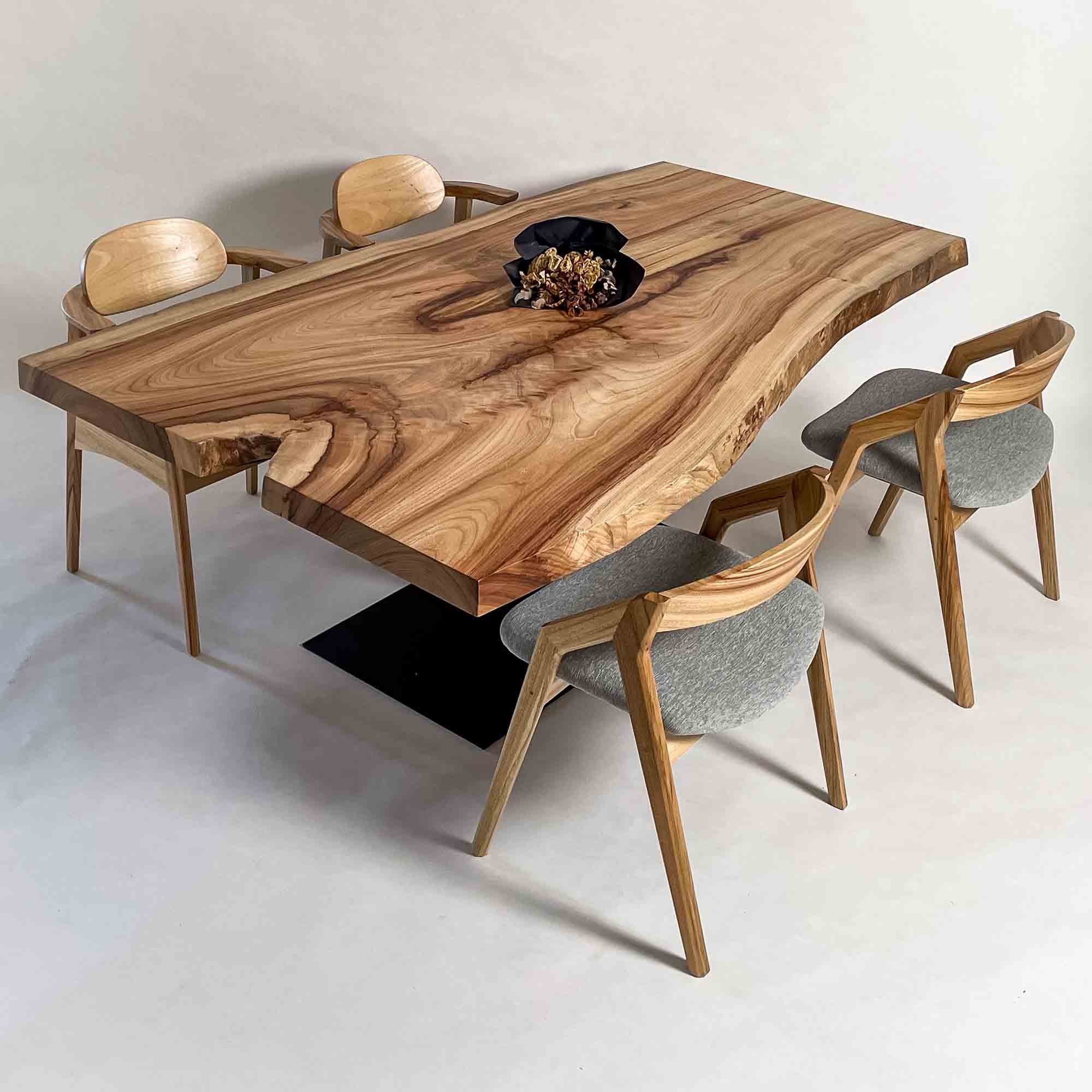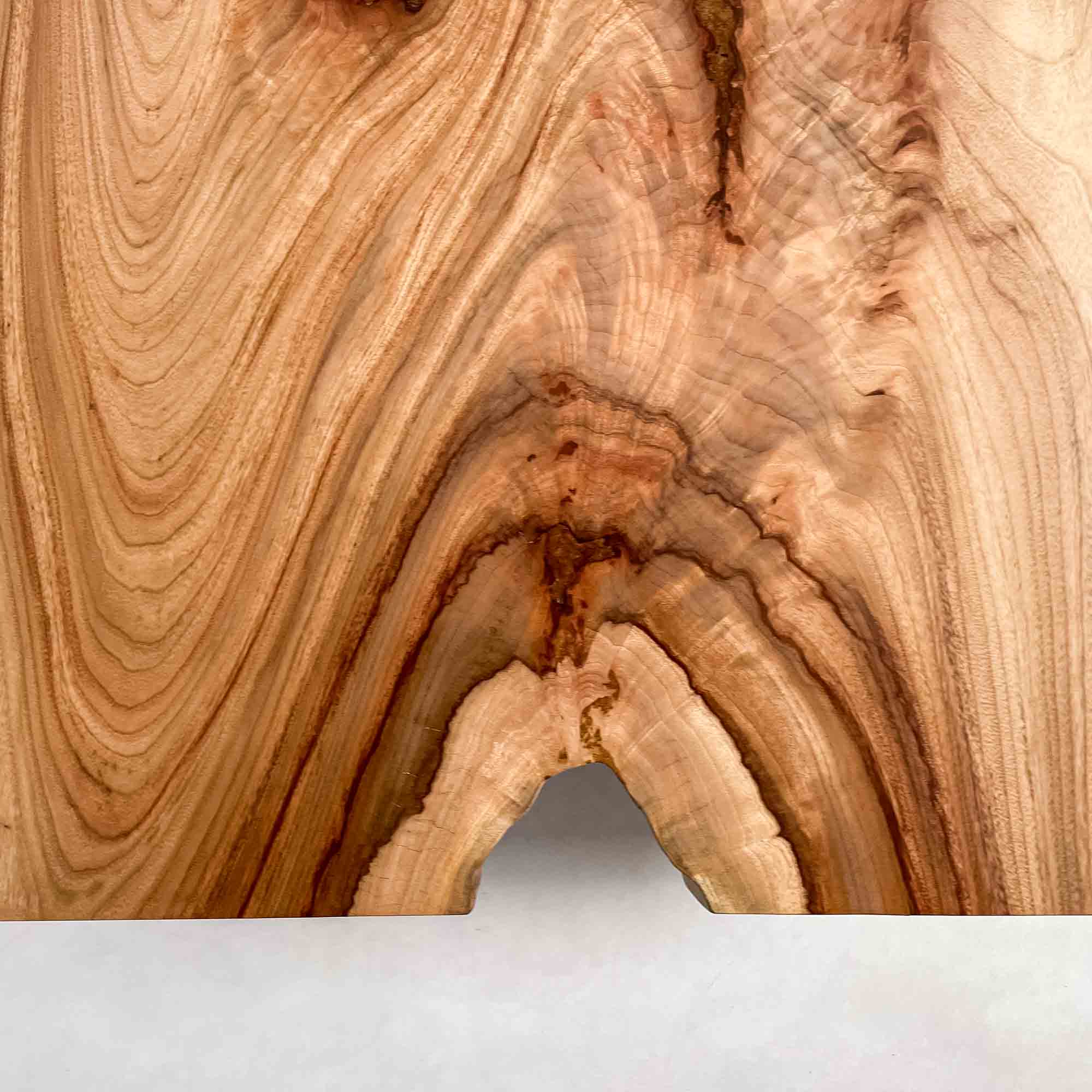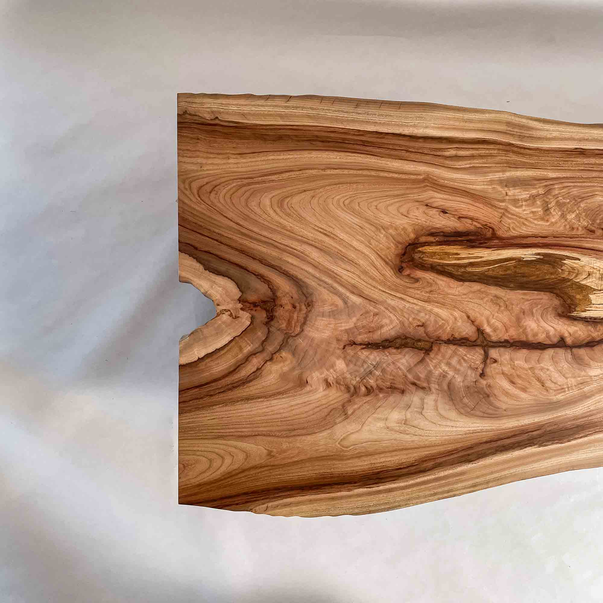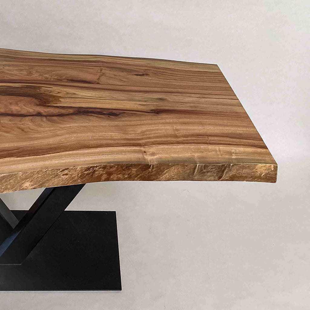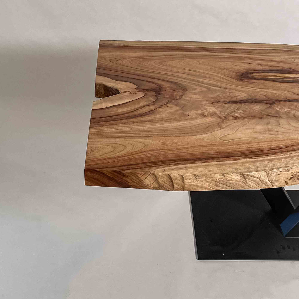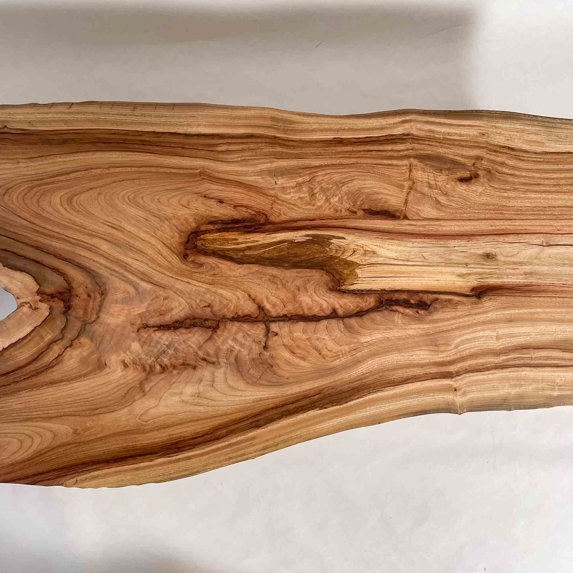 複数の板をつなぎ合わせたものとは異なり、途切れることなく続く杢目は自然の美しさをそのまま映し出します。