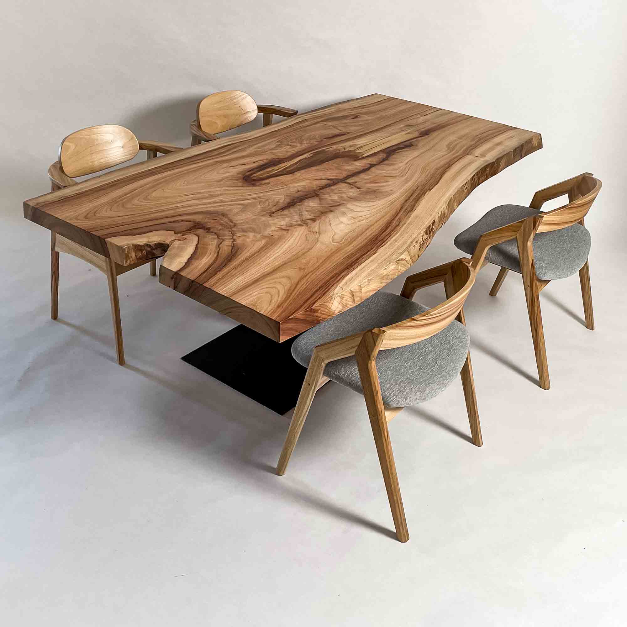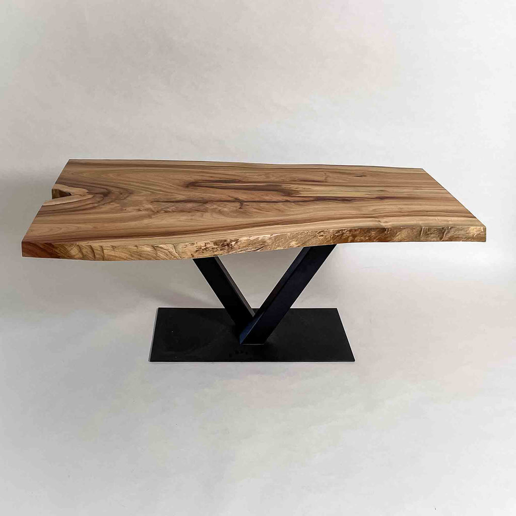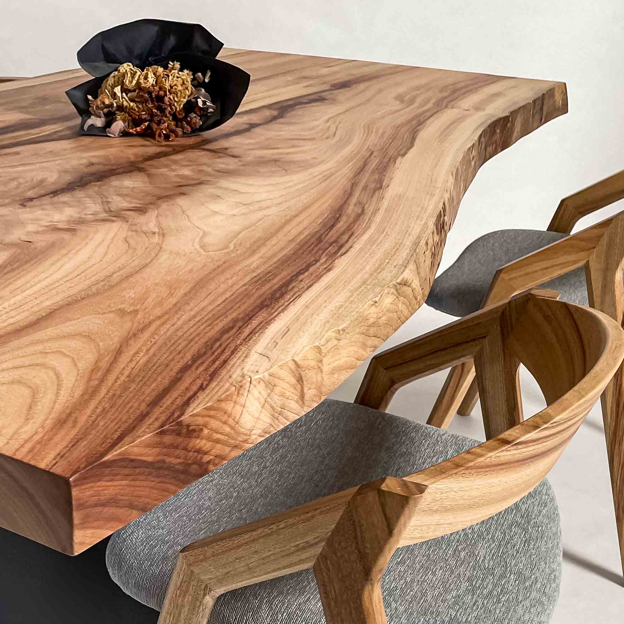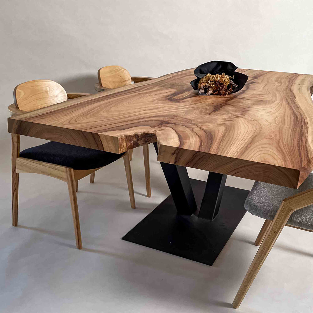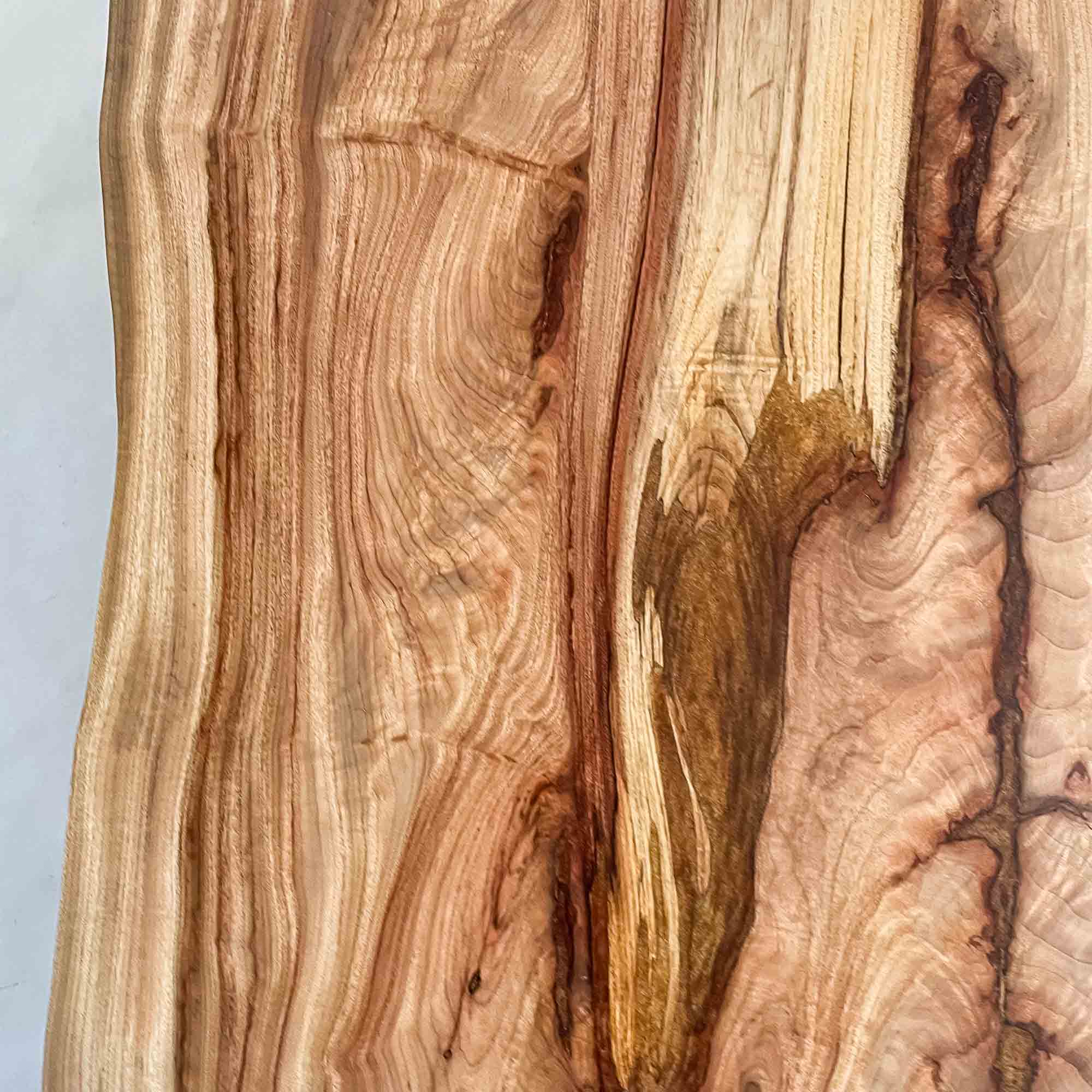 複数の板をつなぎ合わせたものとは異なり、途切れることなく続く杢目は自然の美しさをそのまま映し出します。