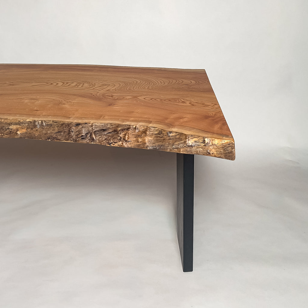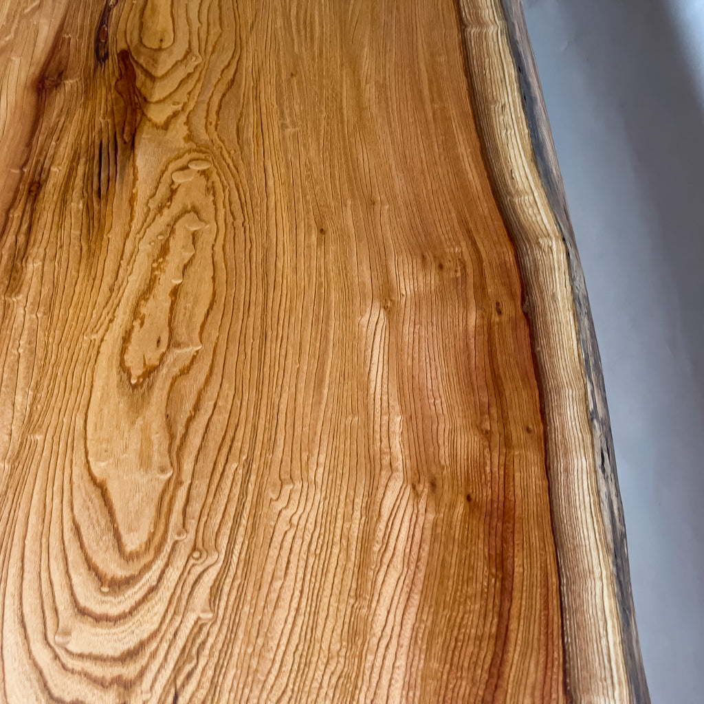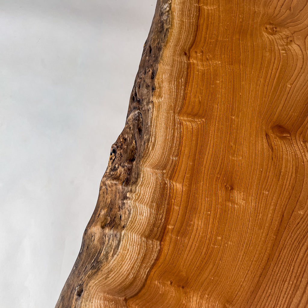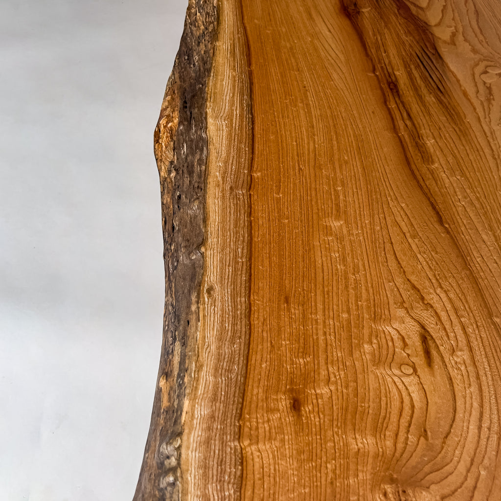複数の板をつなぎ合わせたものとは異なり、途切れることなく続く杢目は自然の美しさをそのまま映し出します。