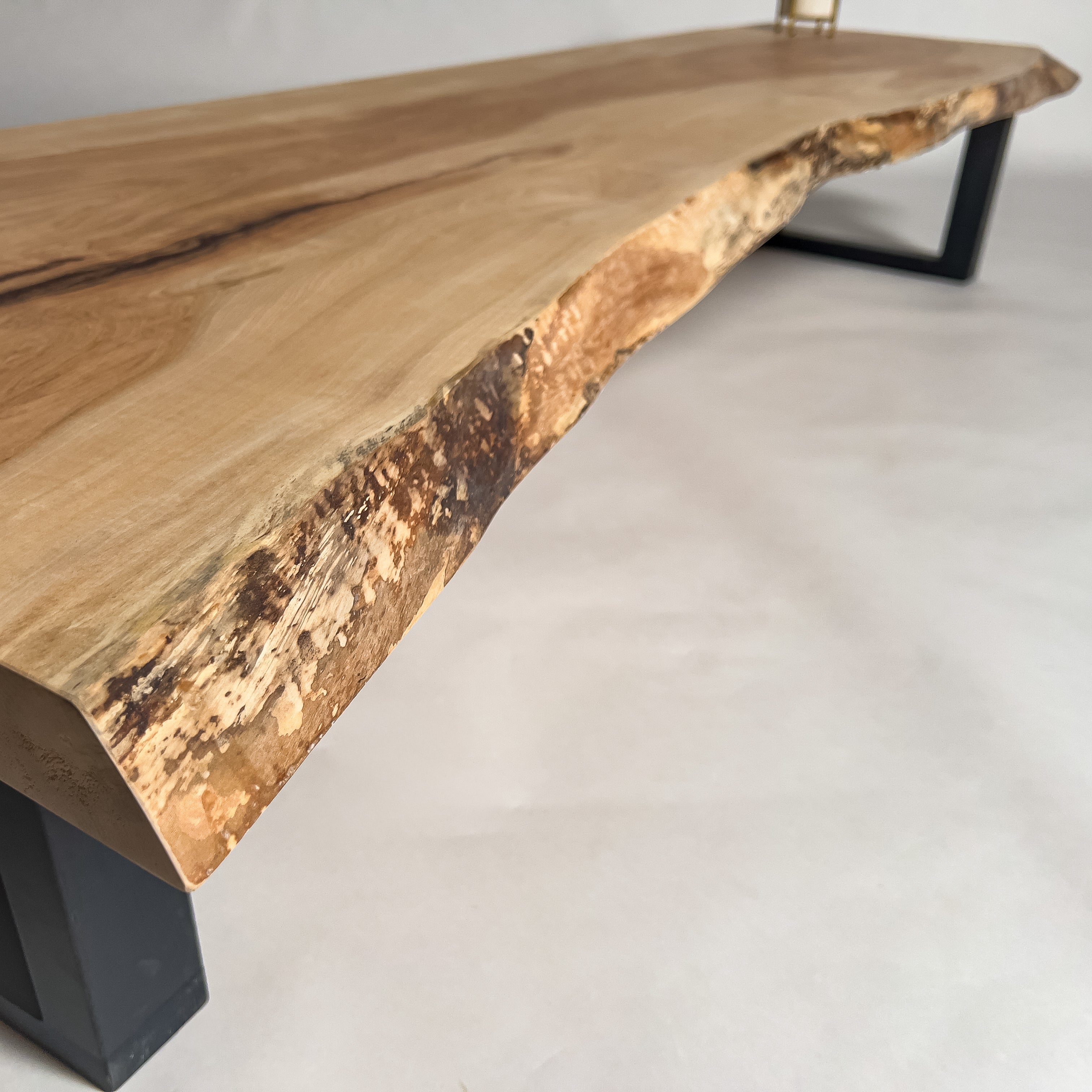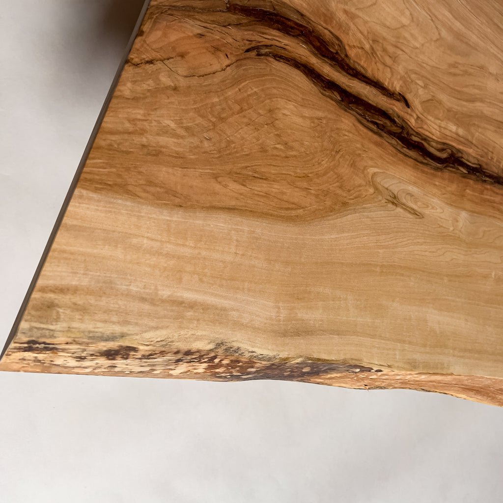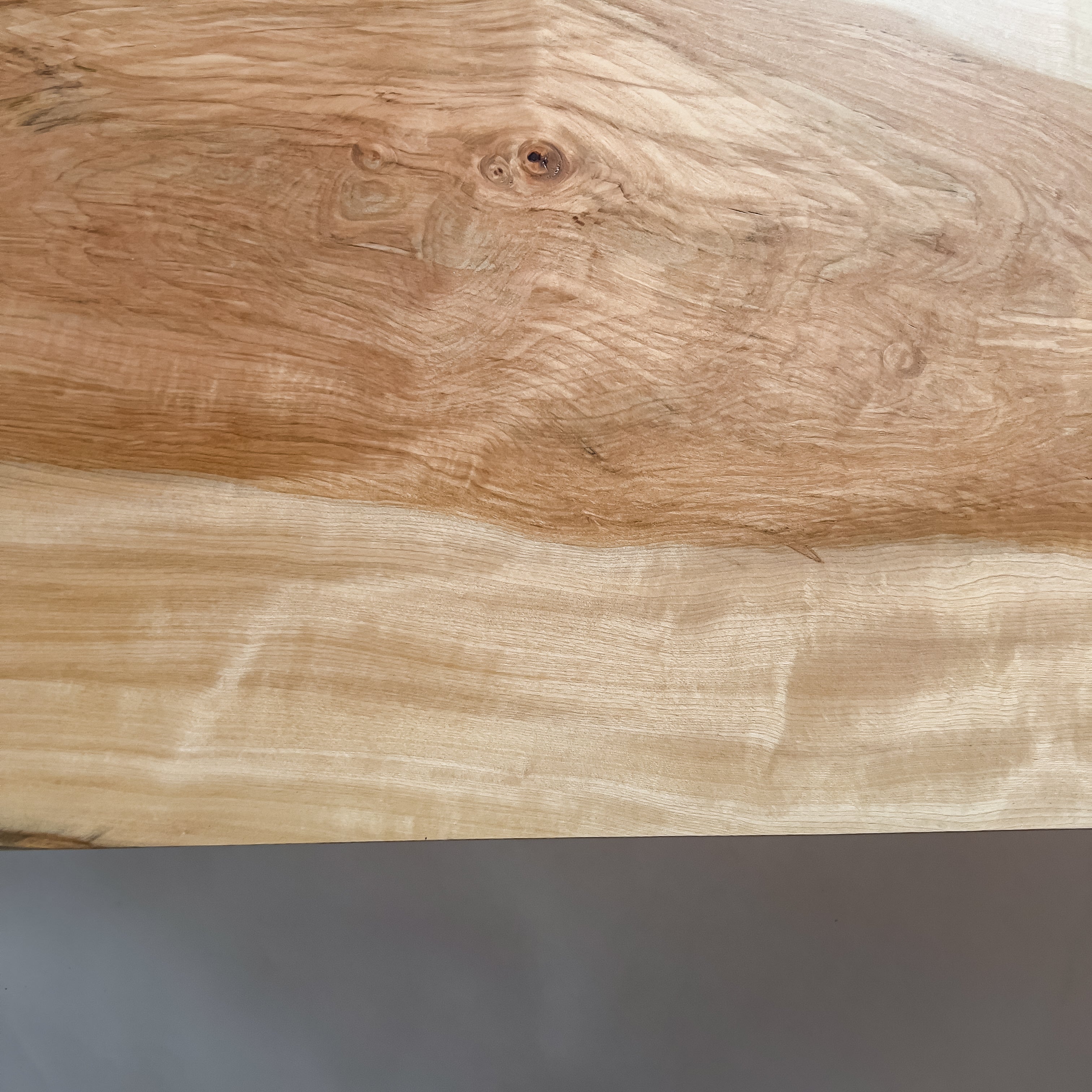 複数の板をつなぎ合わせたものとは異なり、途切れることなく続く杢目は自然の美しさをそのまま映し出します。