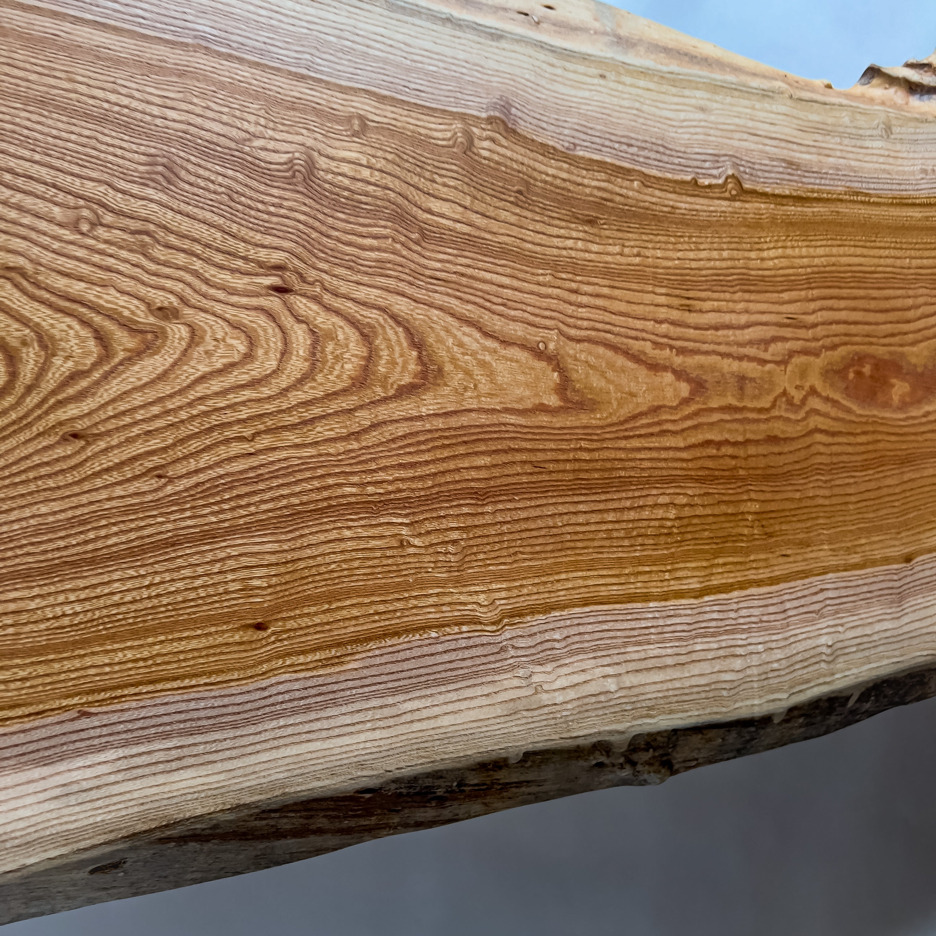 複数の板をつなぎ合わせたものとは異なり、途切れることなく続く杢目は自然の美しさをそのまま映し出します。