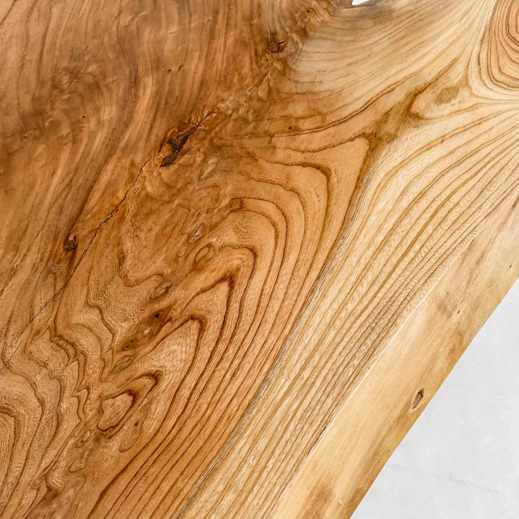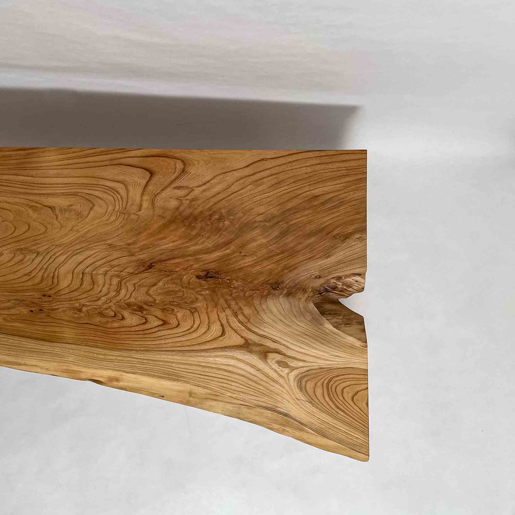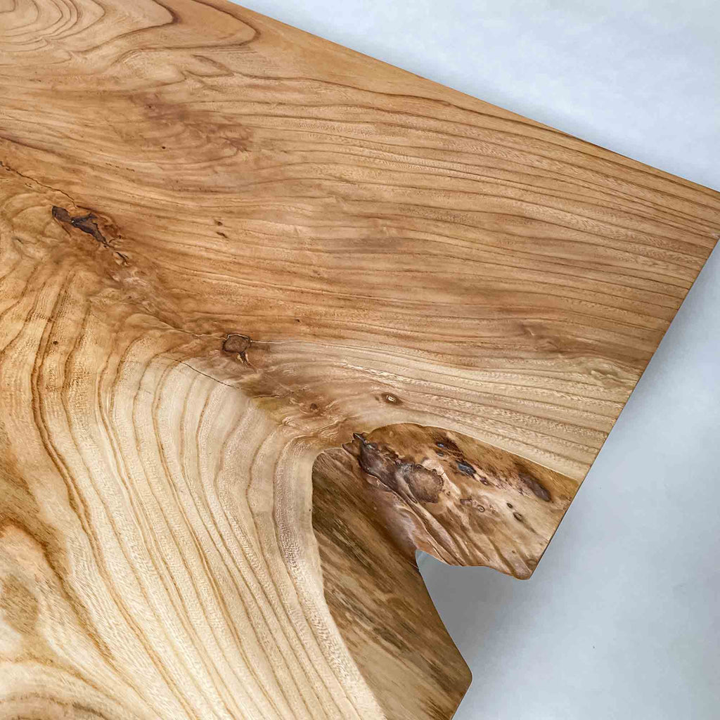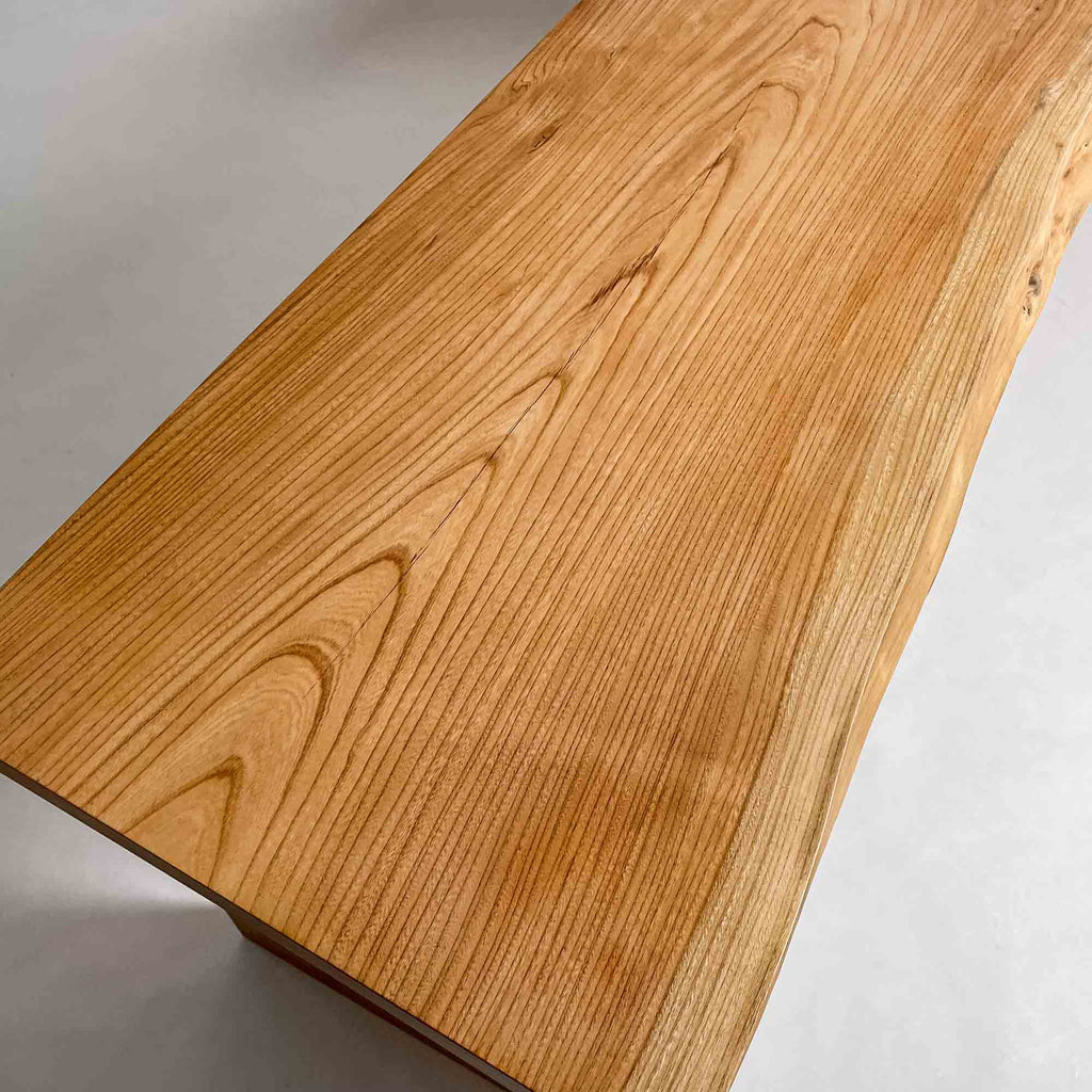 複数の板をつなぎ合わせたものとは異なり、途切れることなく続く杢目は自然の美しさをそのまま映し出します。