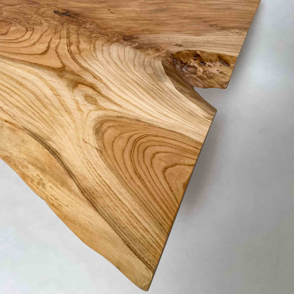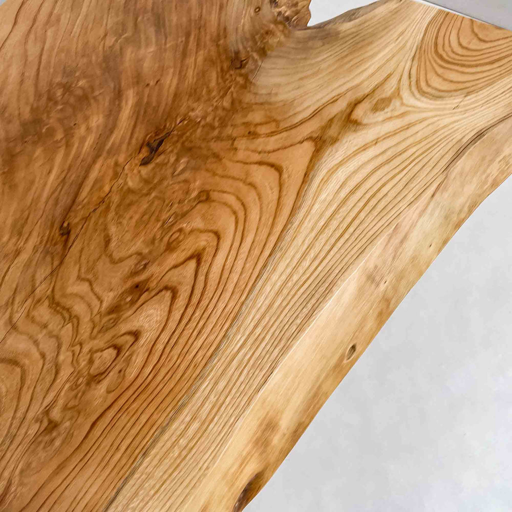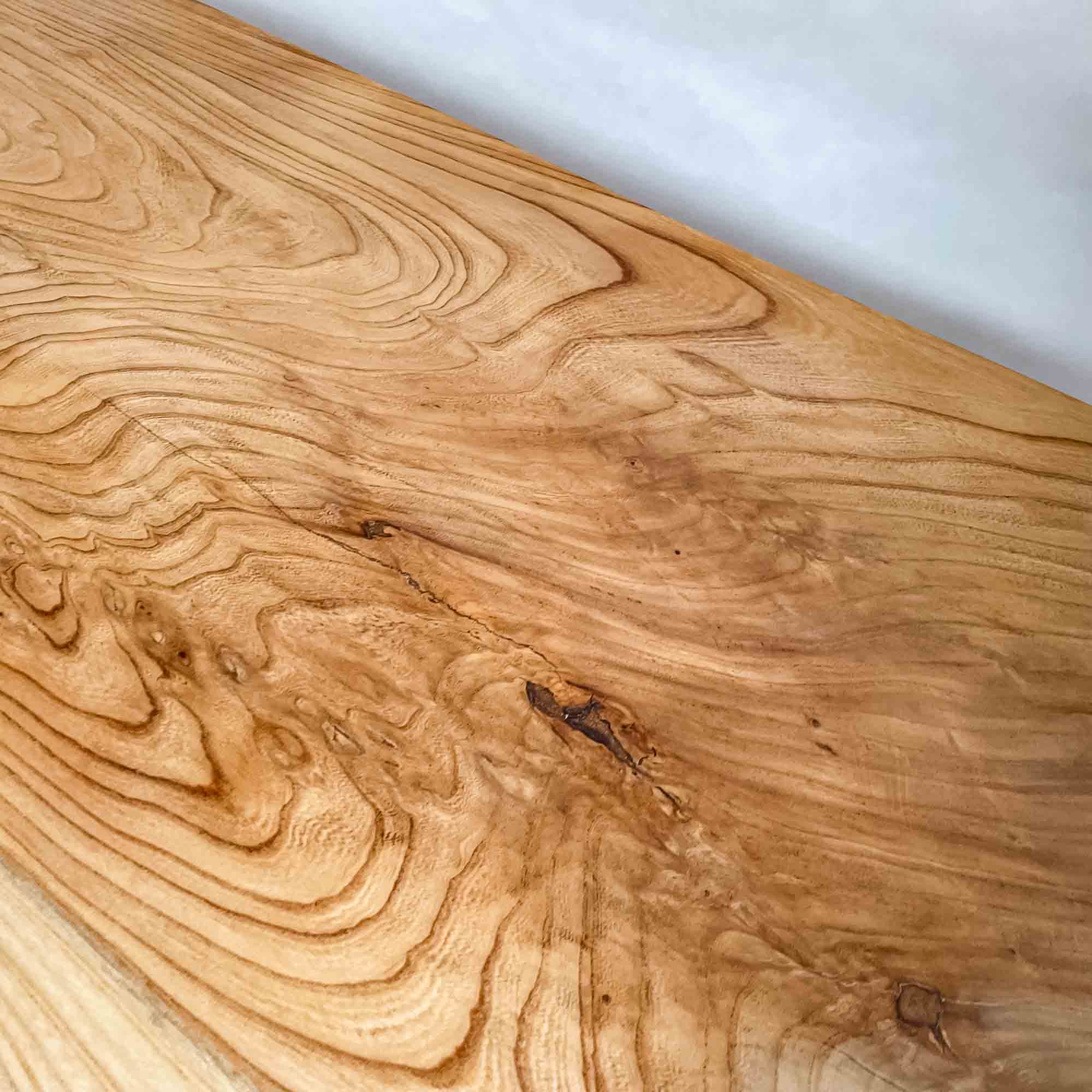 複数の板をつなぎ合わせたものとは異なり、途切れることなく続く杢目は自然の美しさをそのまま映し出します。