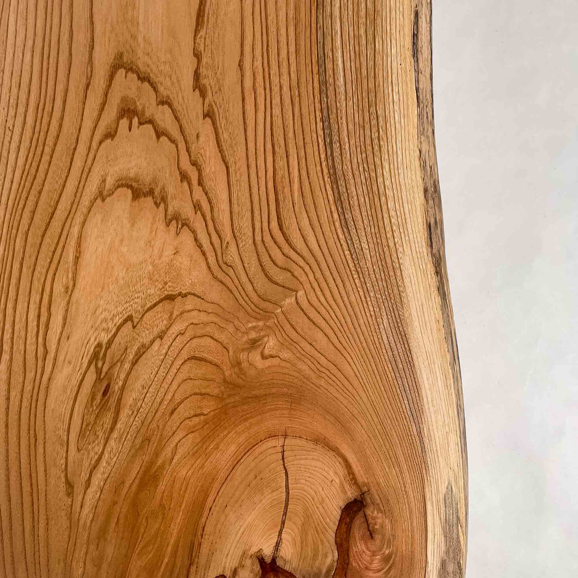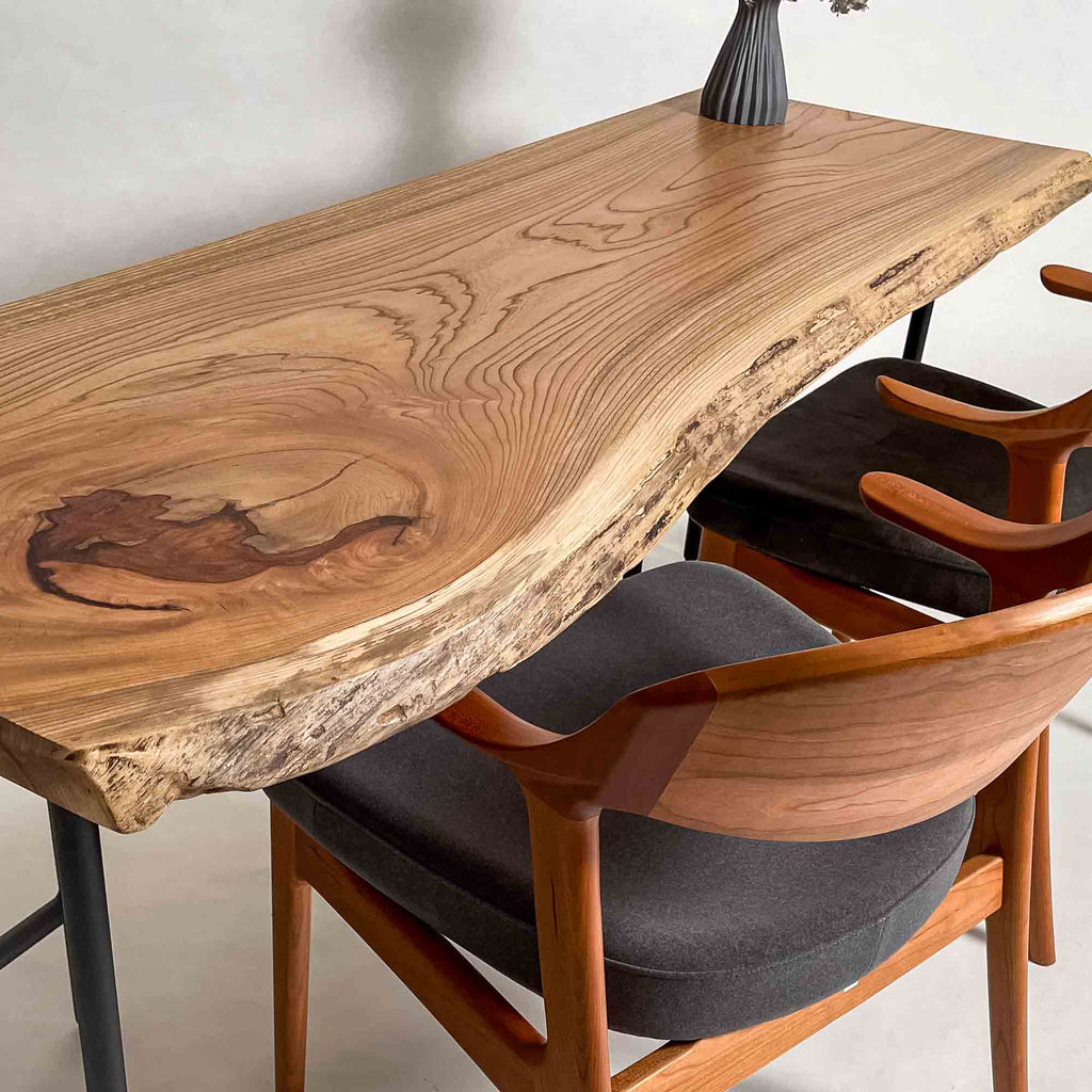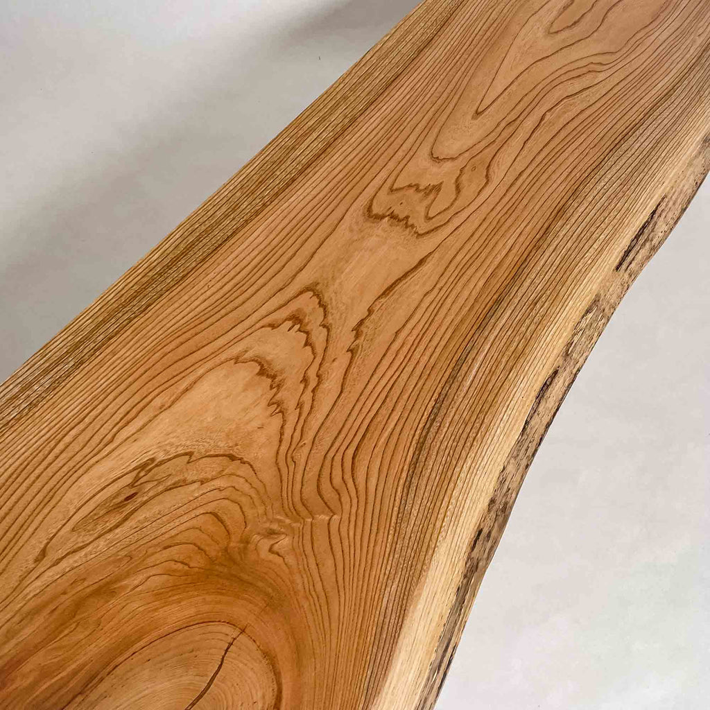 複数の板をつなぎ合わせたものとは異なり、途切れることなく続く杢目は自然の美しさをそのまま映し出します。