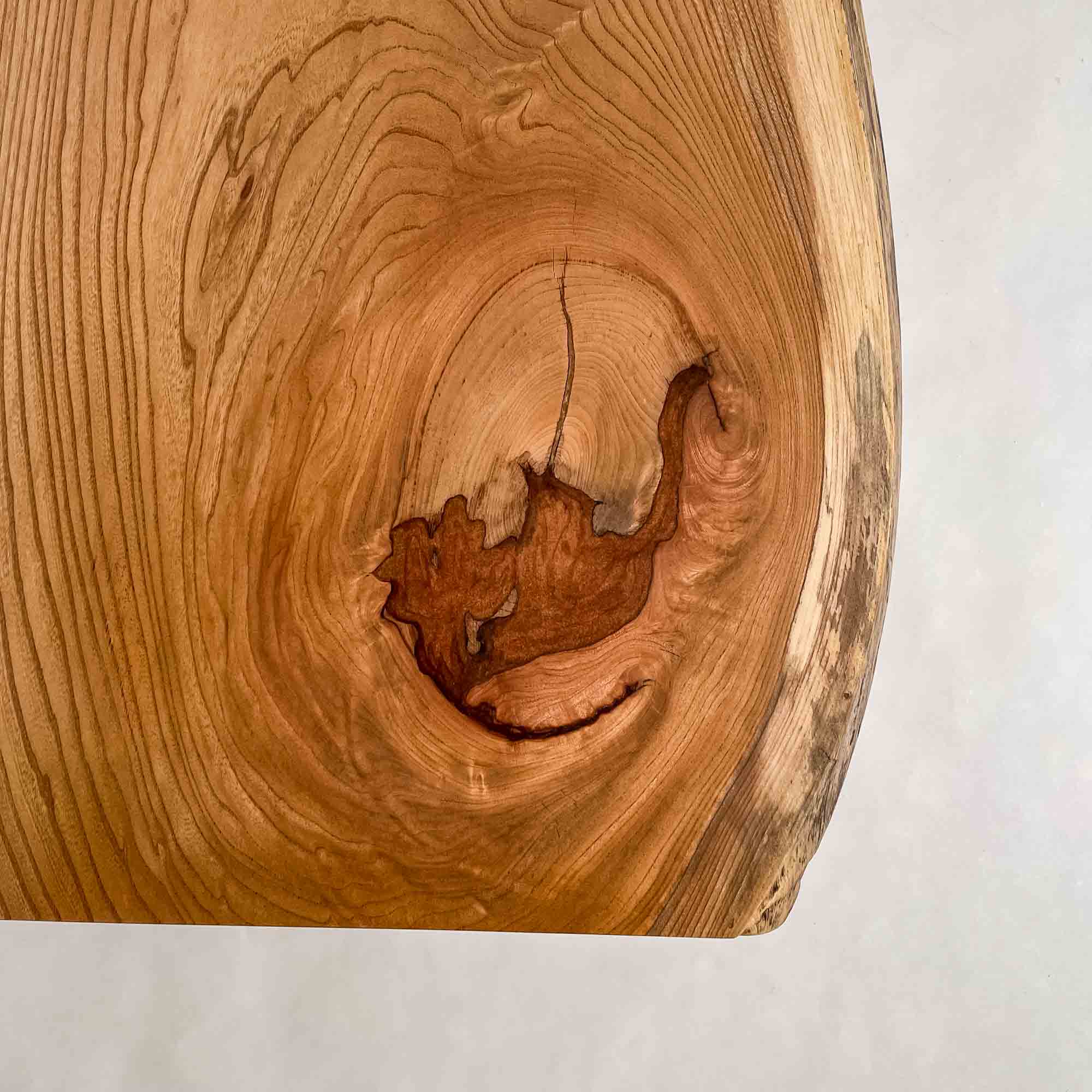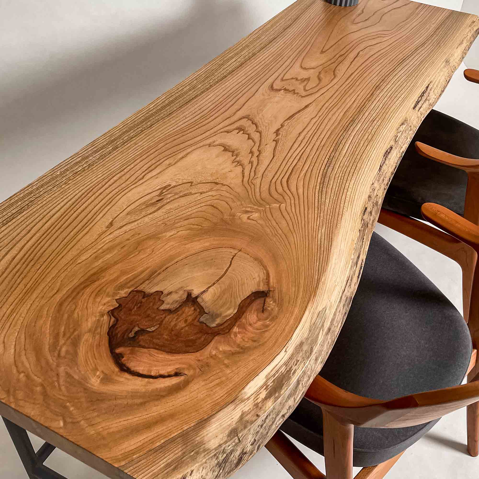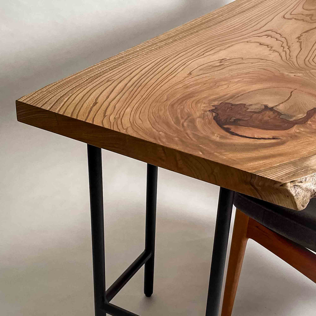 複数の板をつなぎ合わせたものとは異なり、途切れることなく続く杢目は自然の美しさをそのまま映し出します。