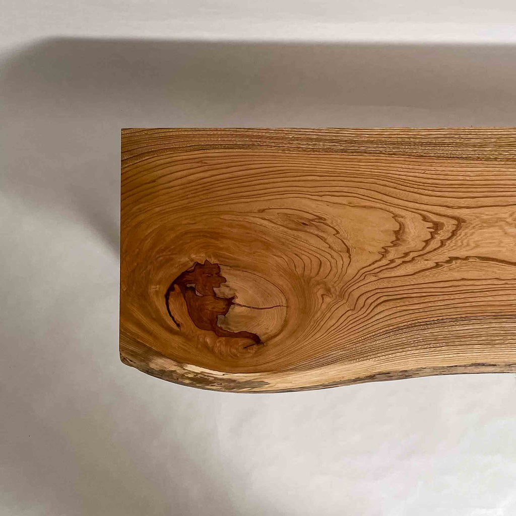 - 節が起点の木目 - 細身に整う輪郭 - 明るさの中の濃淡 |
