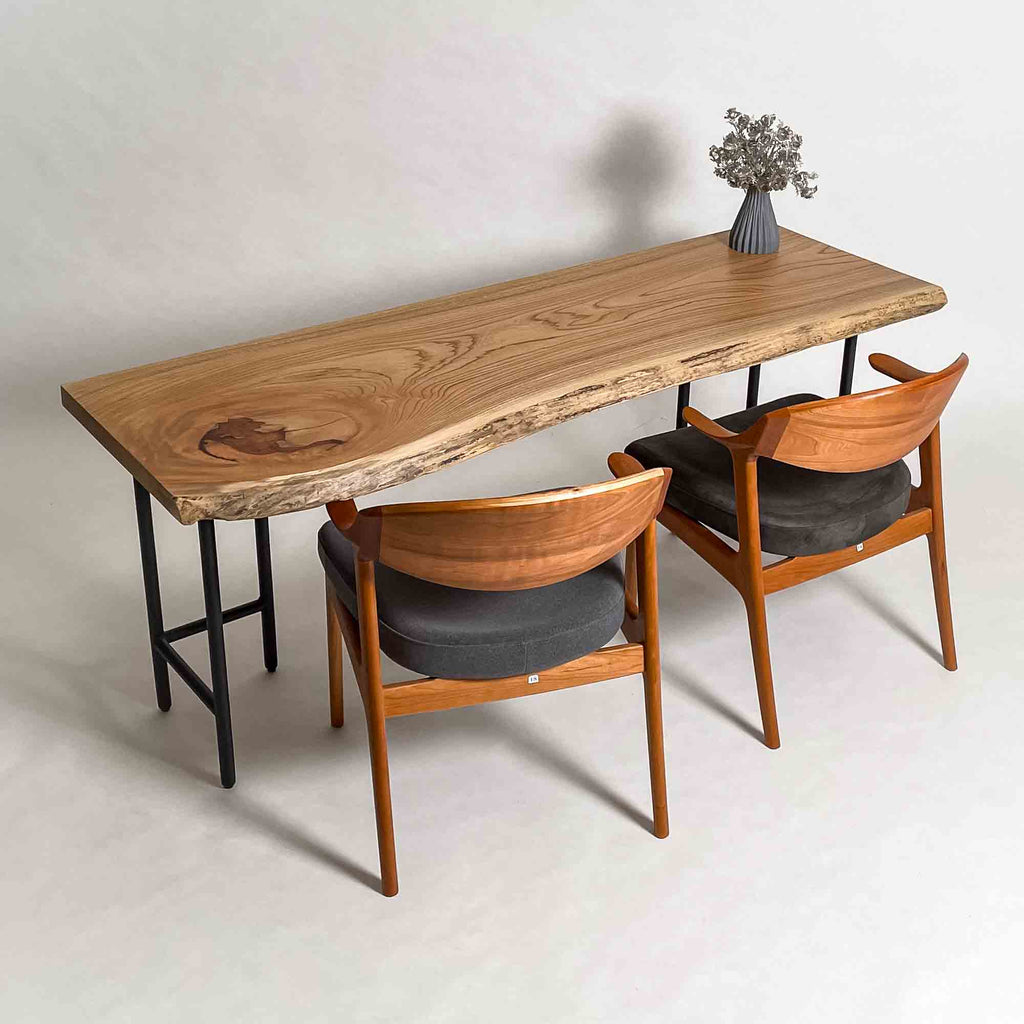 空間相性:和モダン 木目の力強さを持ちながら天板のかたちが細身で整っており、明るい色味が空間に軽さを残します。 |