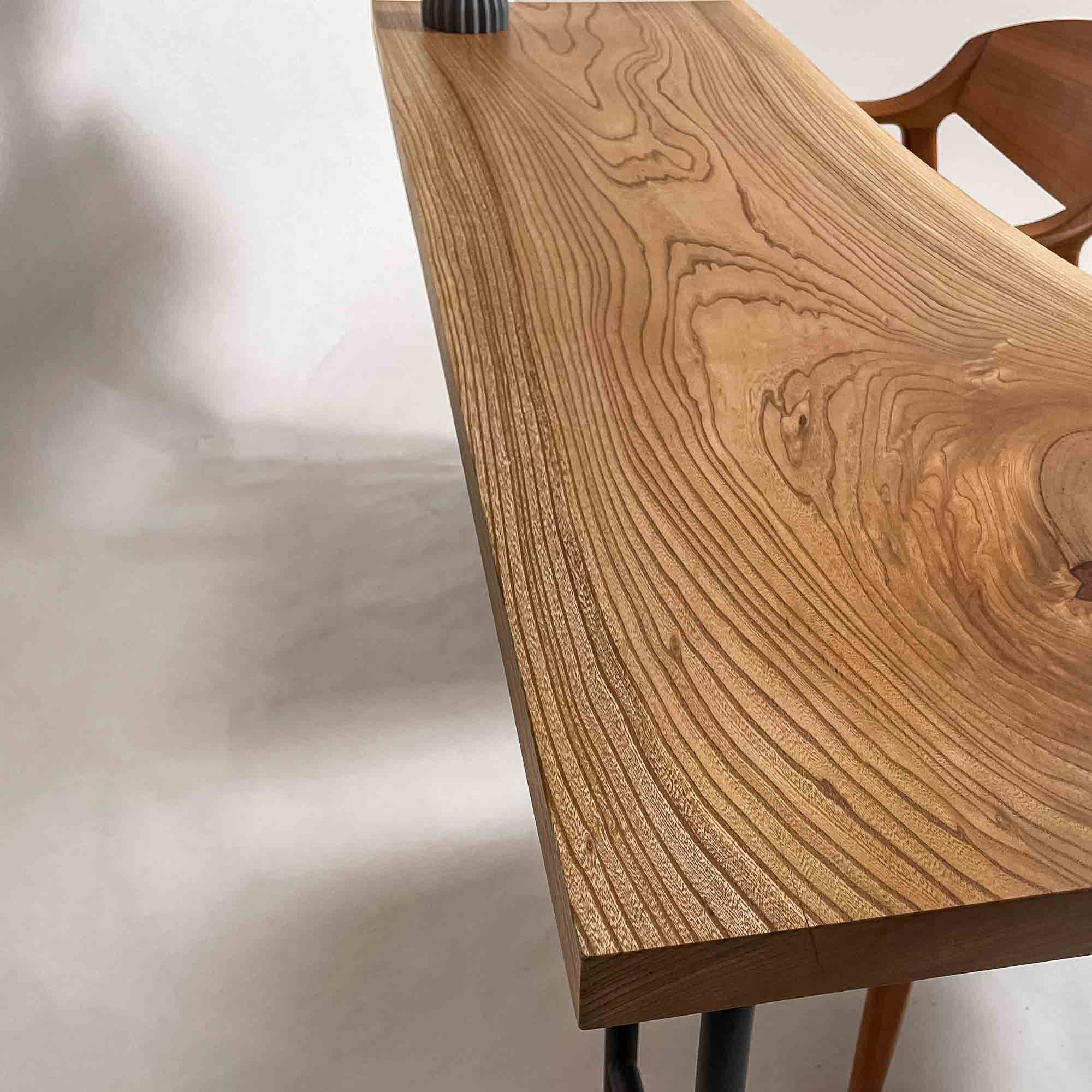 この板を選ぶ理由 成長に時間をかけた欅の木目と節の表情がそのまま残り、細身の空間にも自然に馴染みます。 |