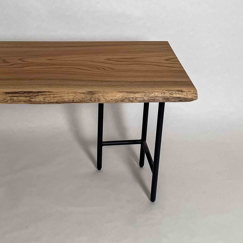 | 時代を超えて受け継がれる機能性と、現代の暮らしに寄り添うデザイン性を兼ね備えた一枚板家具の製作を手がける。 | 現代の空間に映えるモダンなデザイン性を取り入れながら、一枚板の持つ素材感と存在感を活かした加工・製作を行う。 | |