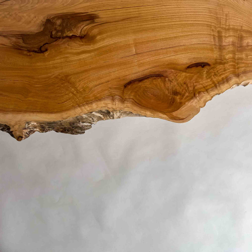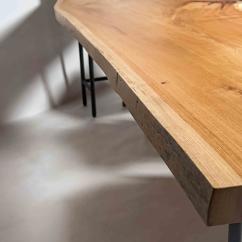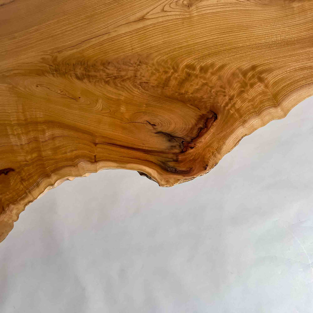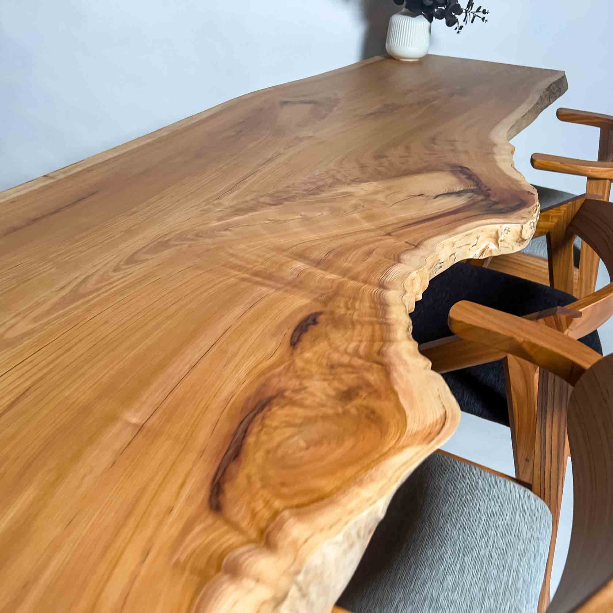 複数の板をつなぎ合わせたものとは異なり、途切れることなく続く杢目は自然の美しさをそのまま映し出します。