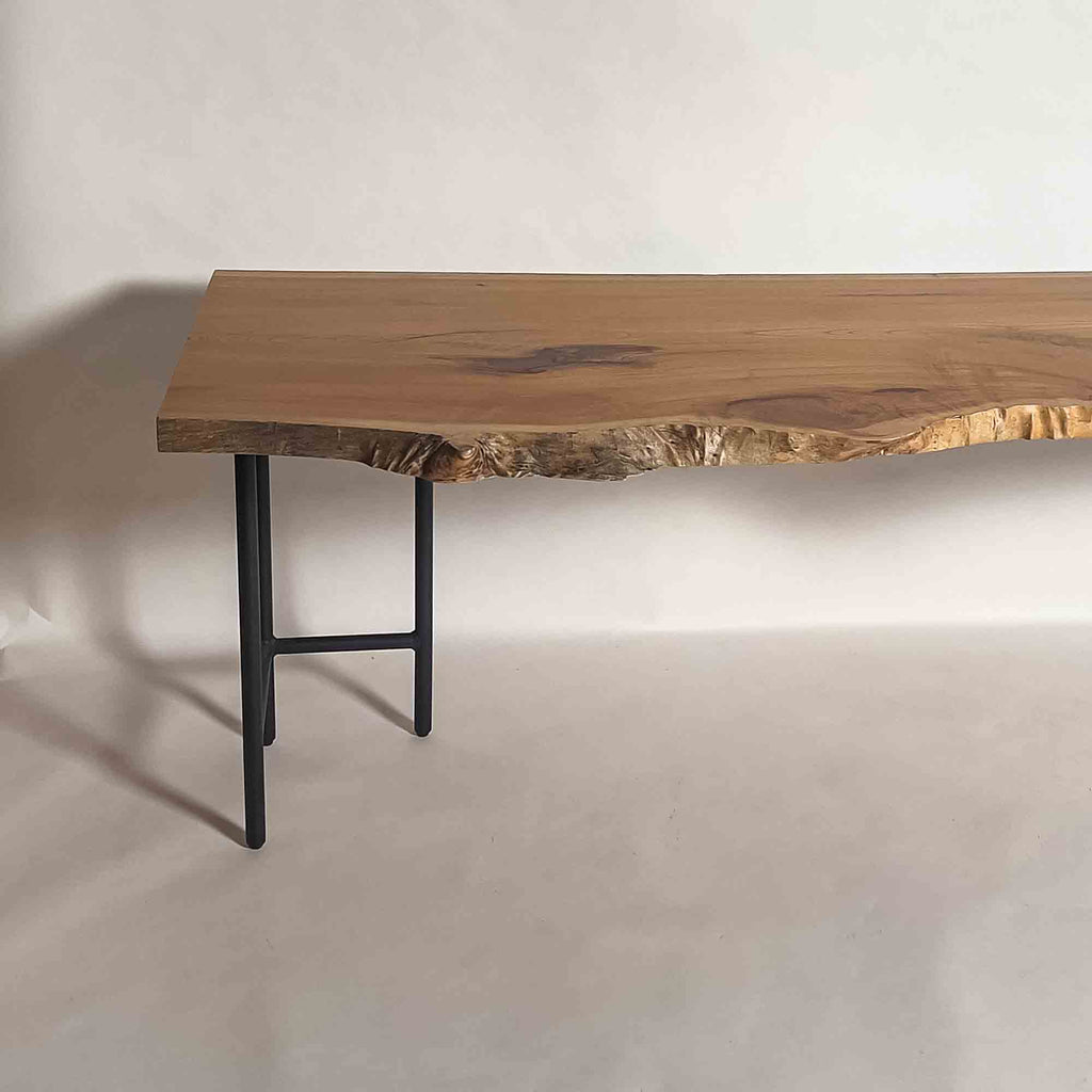| 時代を超えて受け継がれる機能性と、現代の暮らしに寄り添うデザイン性を兼ね備えた一枚板家具の製作を手がける。 | 現代の空間に映えるモダンなデザイン性を取り入れながら、一枚板の持つ素材感と存在感を活かした加工・製作を行う。 | |