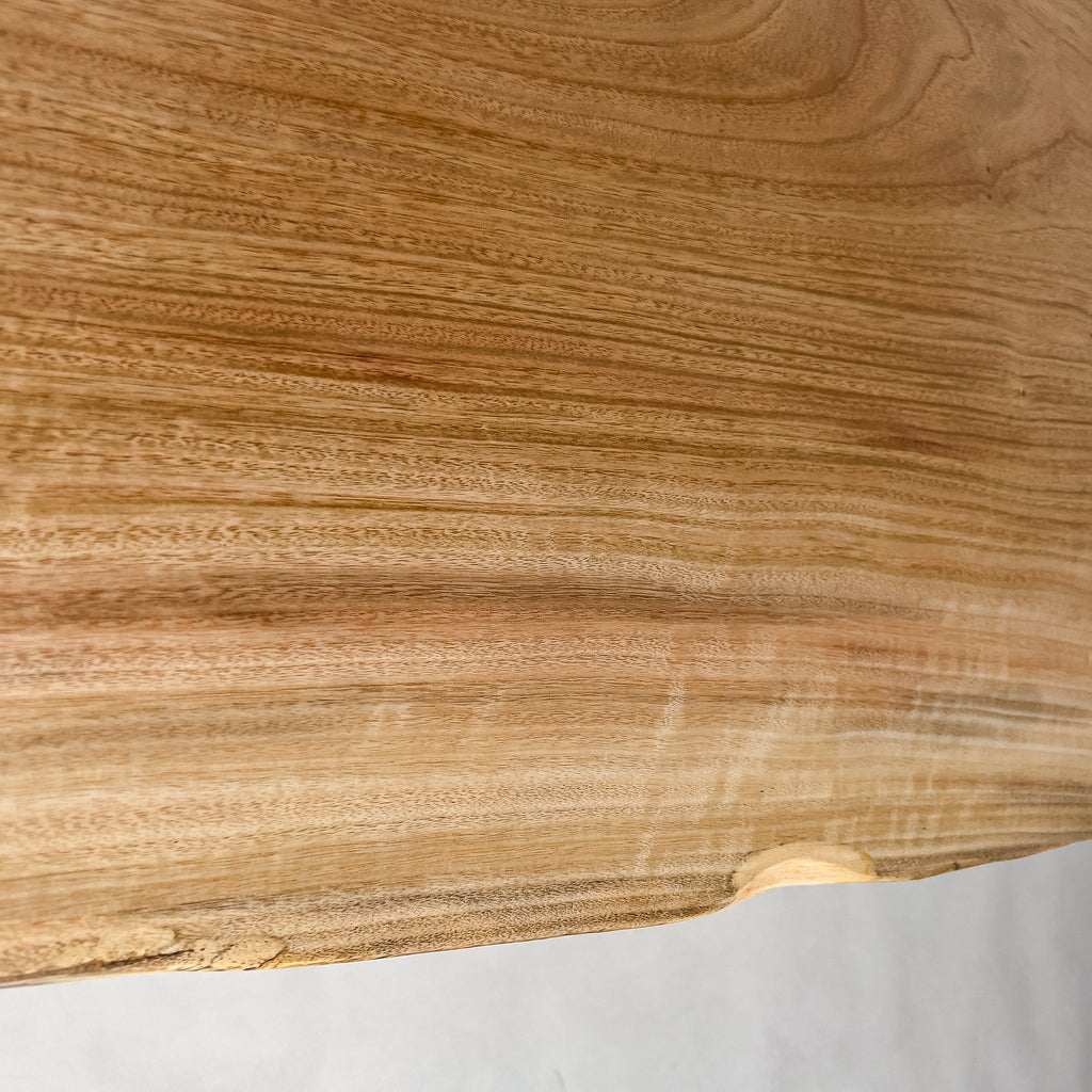 自然が生み出した不均一な表情を 読み解き、素材の持つ品格や奥行きが際立つよう、細部まで配慮した加工で完成度を高める。 一枚板単体の美しさだけでなく、置かれる空間や光の入り方までを思い描き、その場に自然と溶け込む佇まいへと仕上げる。