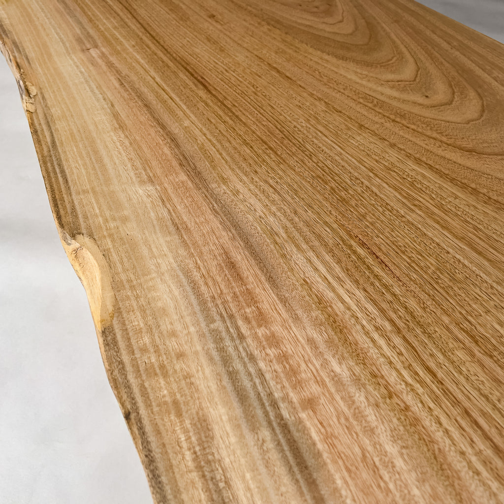 複数の板をつなぎ合わせたものとは異なり、途切れることなく続く杢目は自然の美しさをそのまま映し出します。