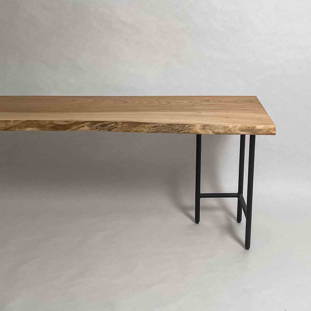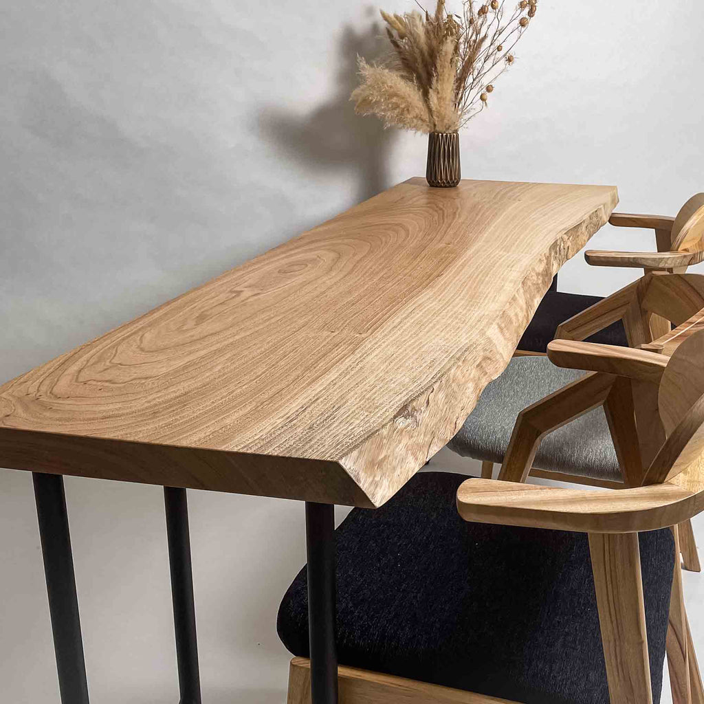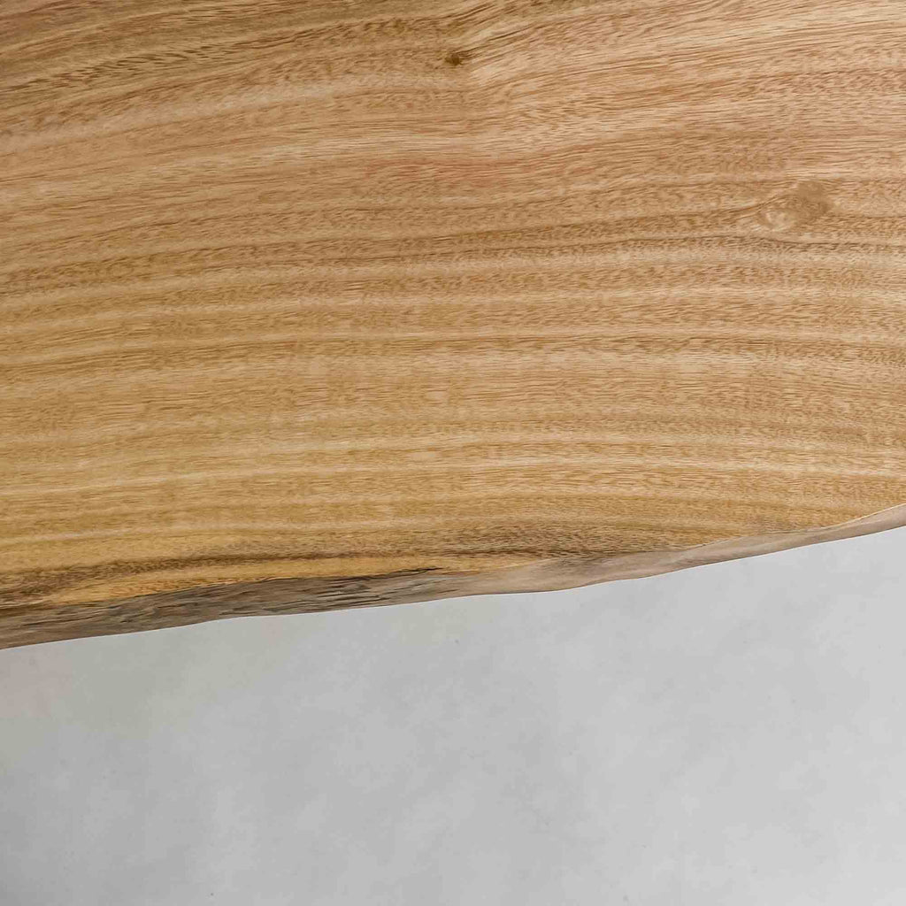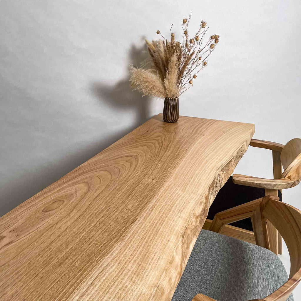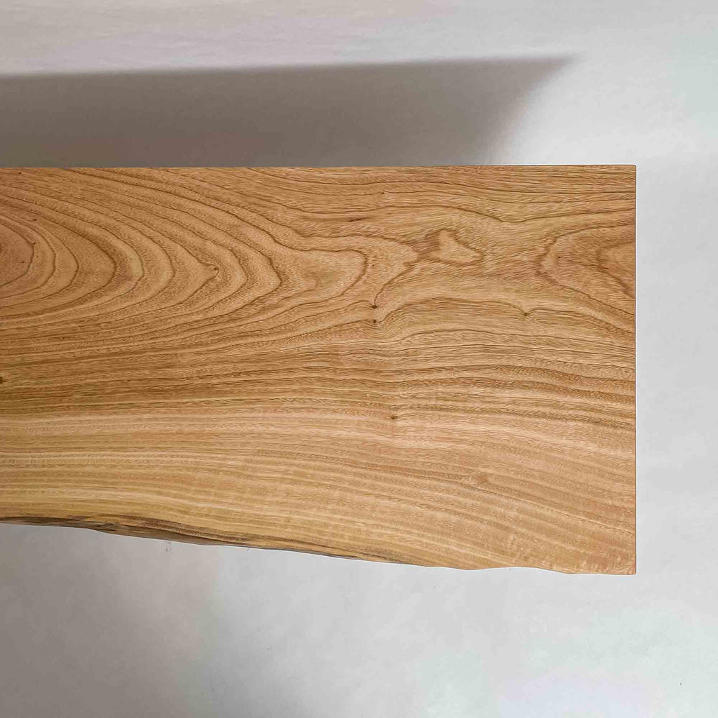 複数の板をつなぎ合わせたものとは異なり、途切れることなく続く杢目は自然の美しさをそのまま映し出します。