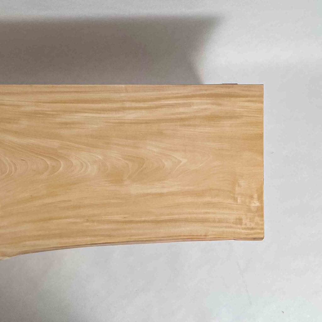 自然が生み出した不均一な表情を 読み解き、素材の持つ品格や奥行きが際立つよう、細部まで配慮した加工で完成度を高める。 一枚板単体の美しさだけでなく、置かれる空間や光の入り方までを思い描き、その場に自然と溶け込む佇まいへと仕上げる。
